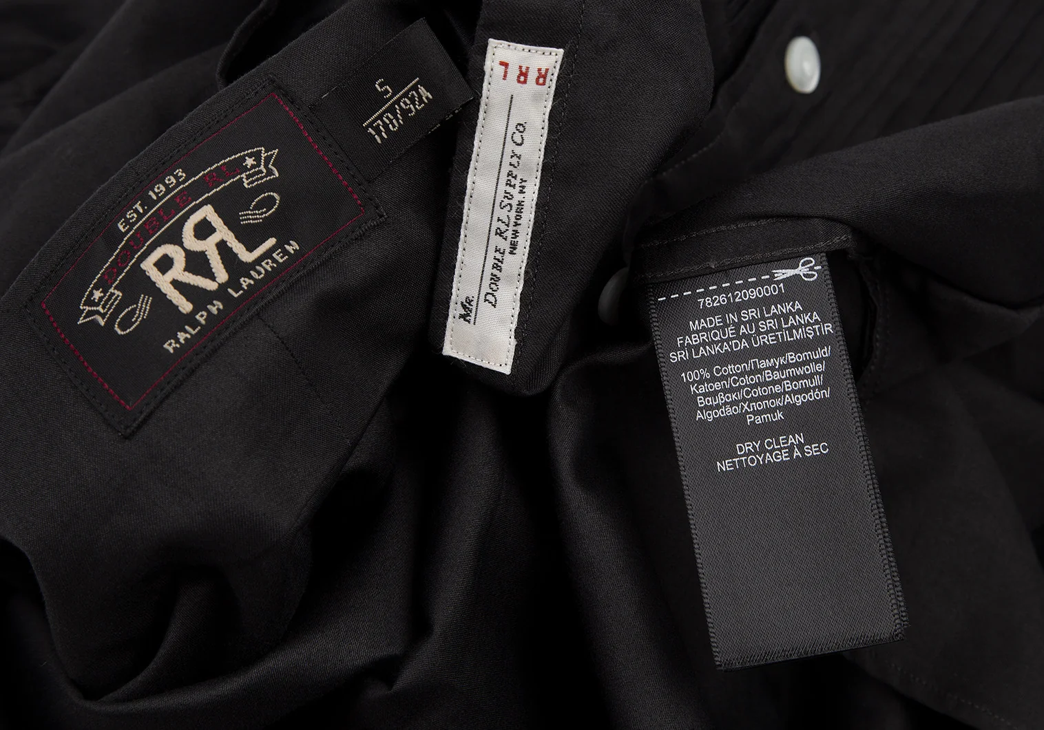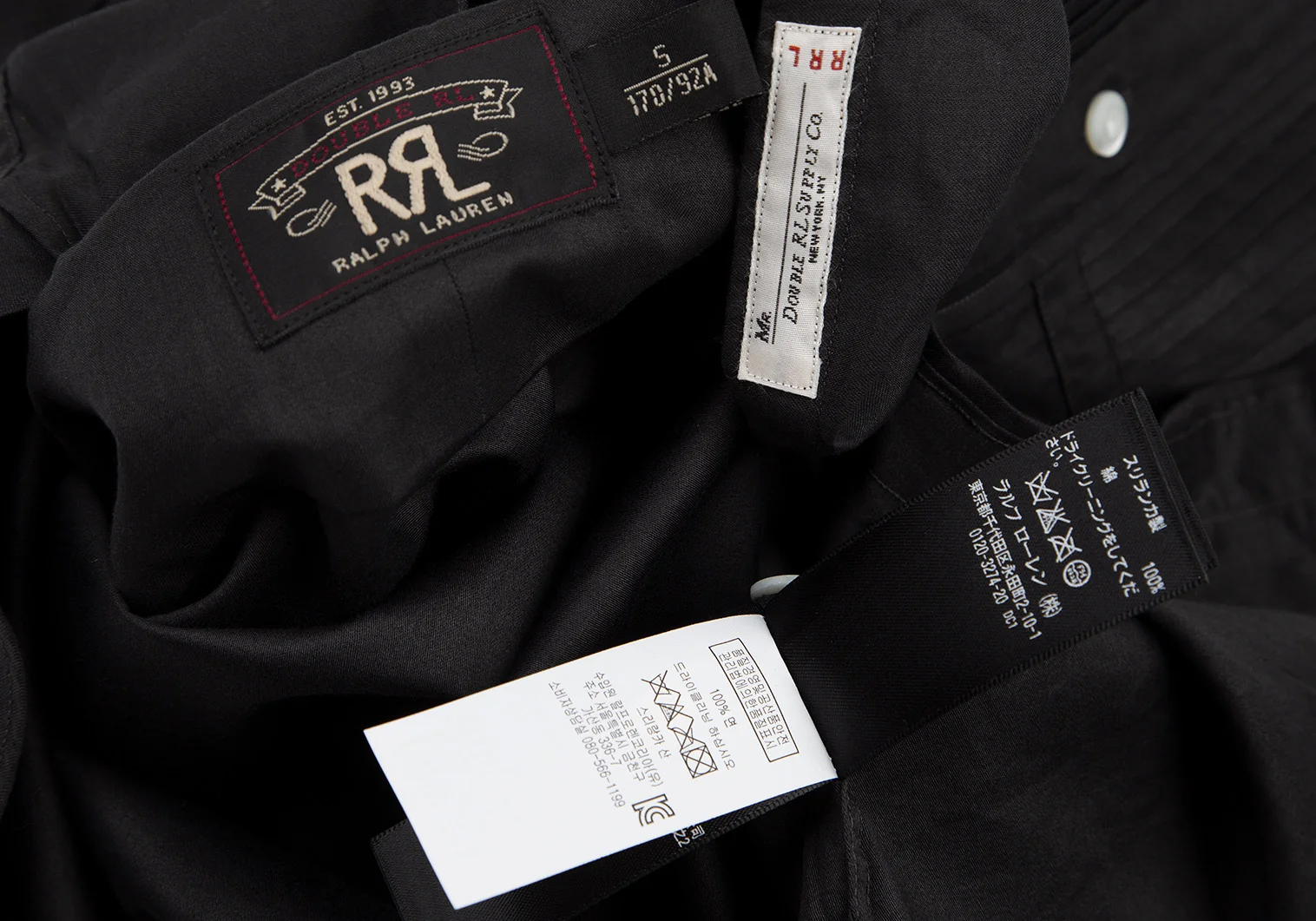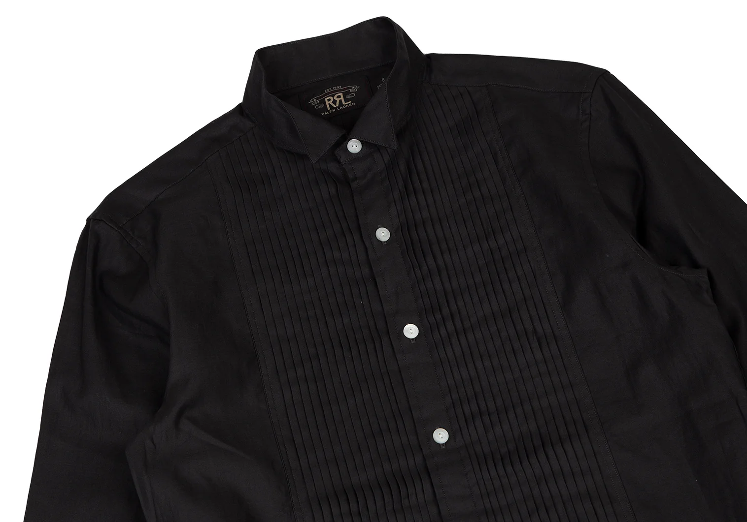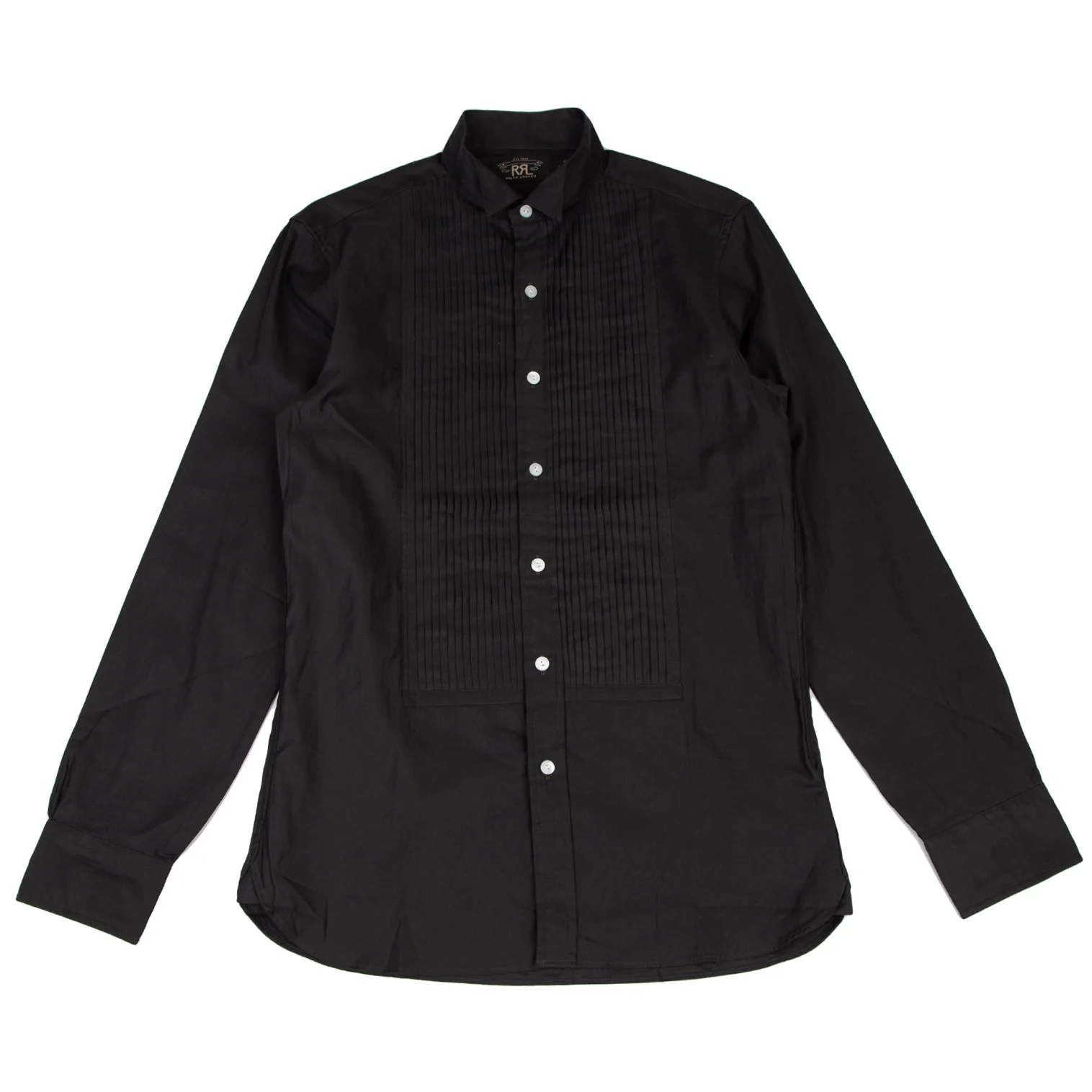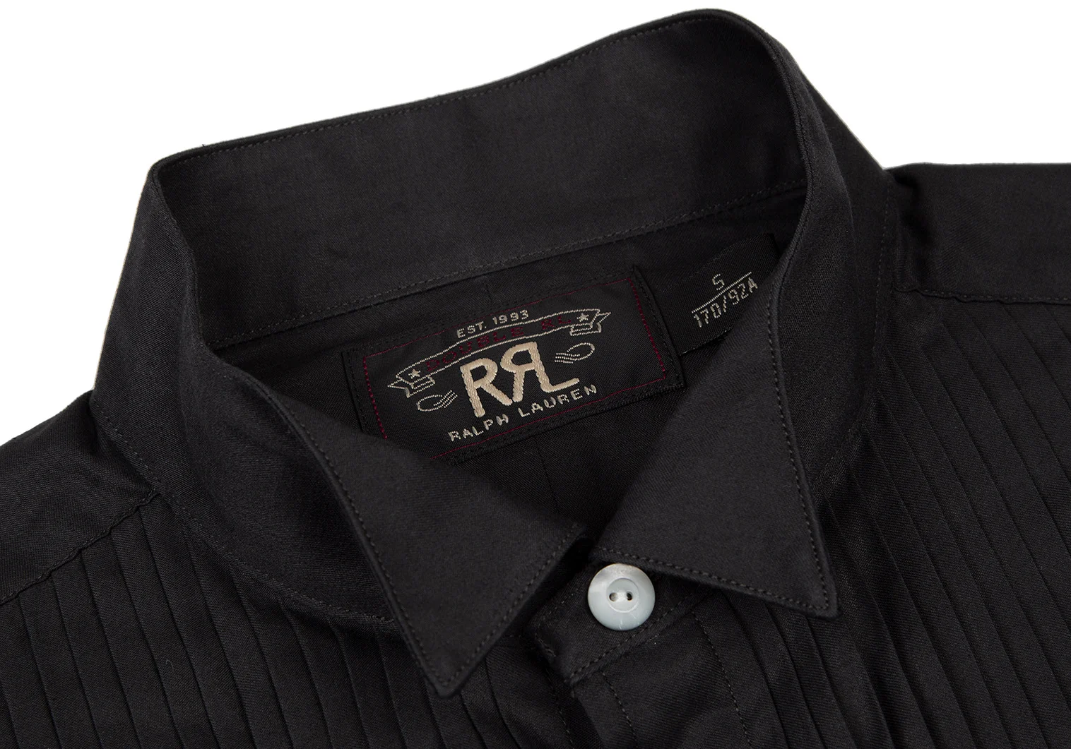 ダブルアールエルRRL フロントプリーツスタンドカラーシャツ チャコールS