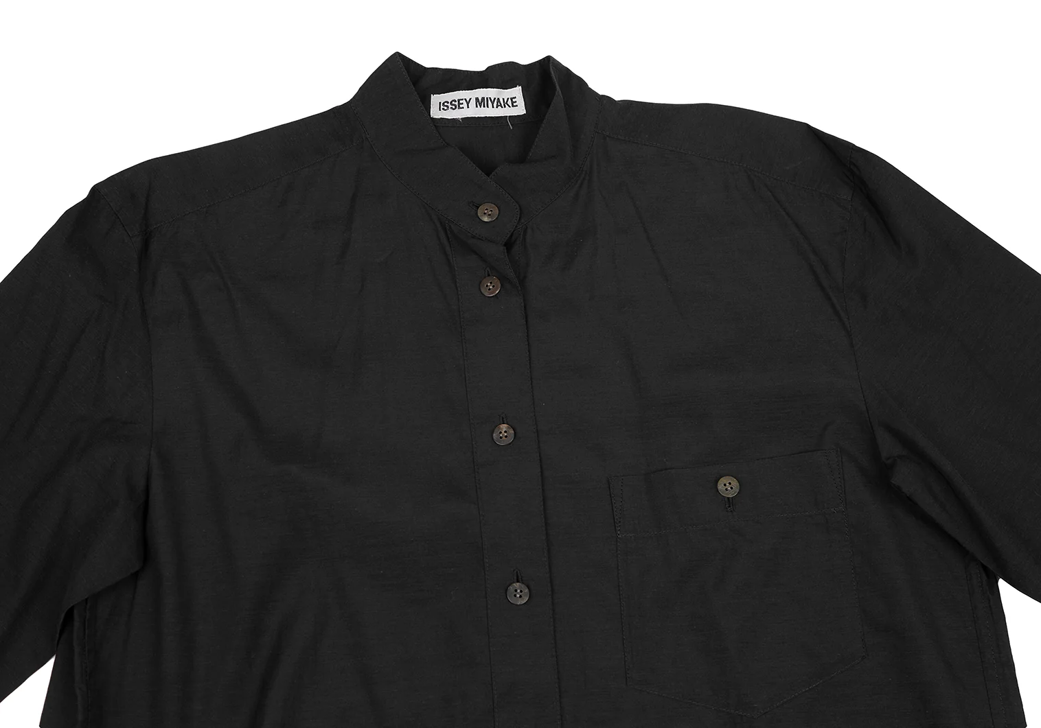 イッセイミヤケISSEY MIYAKEキュプラコットンマオカラーシャツ 黒M