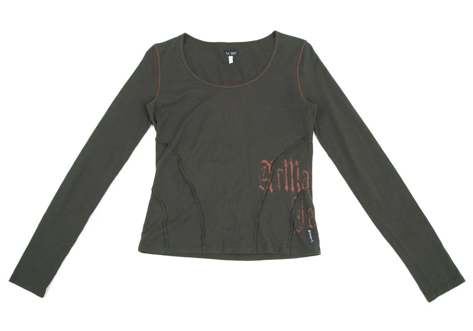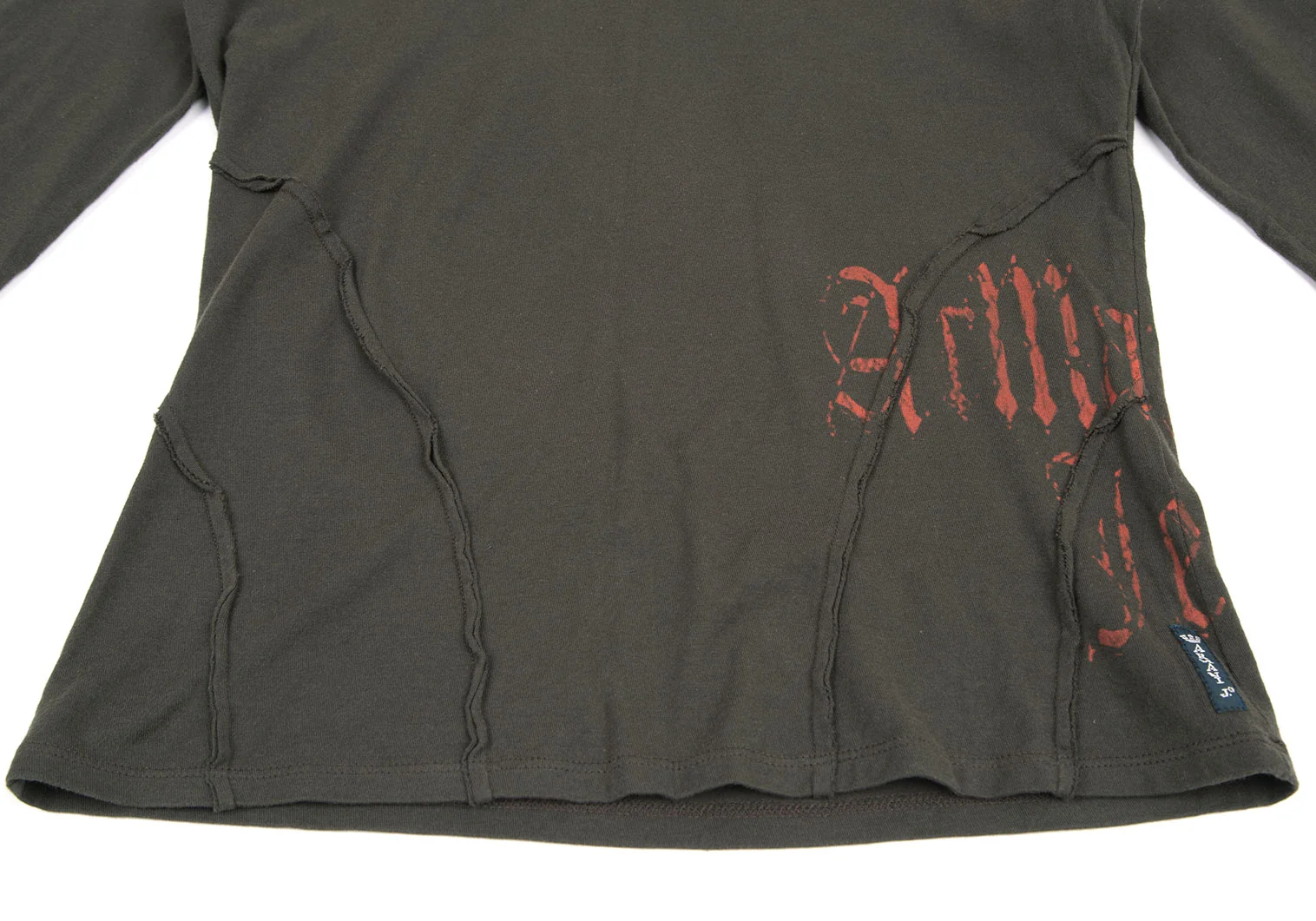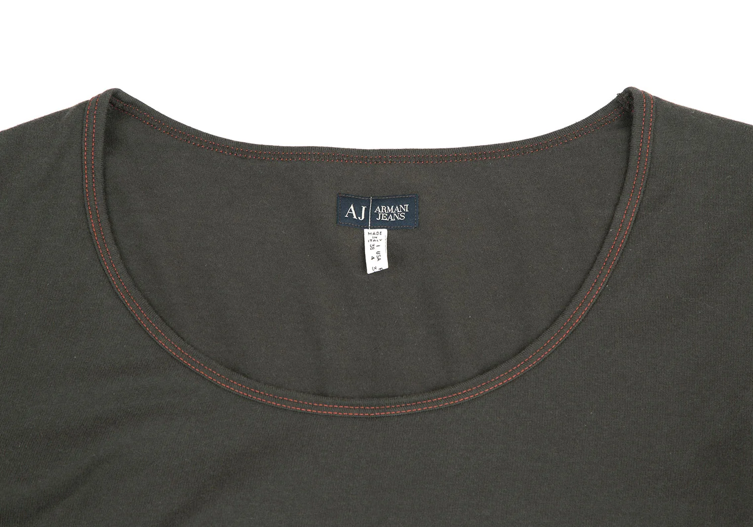 アルマーニジーンズARMANI JEANS サイドロゴプリントステッチデザインカットソー カーキ38