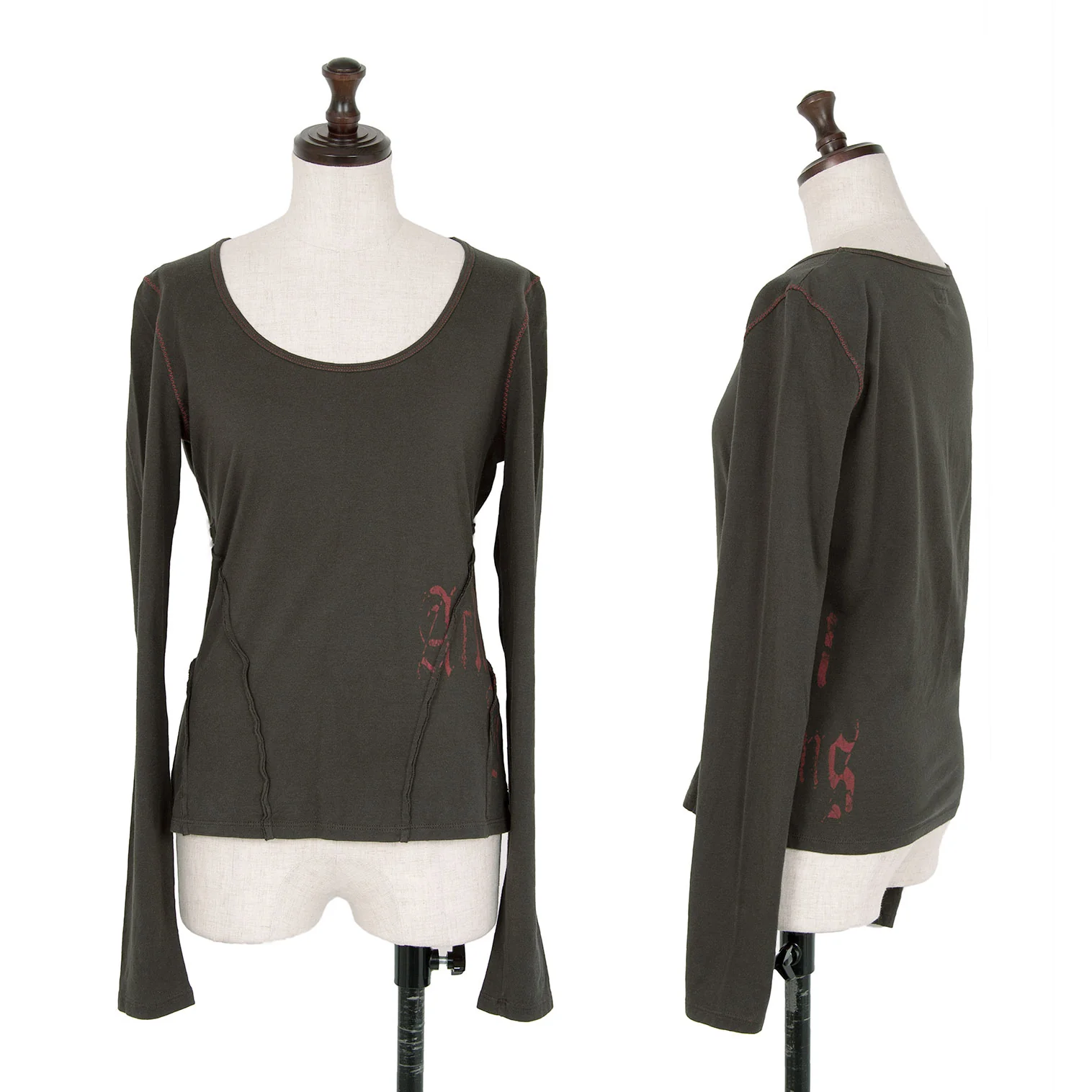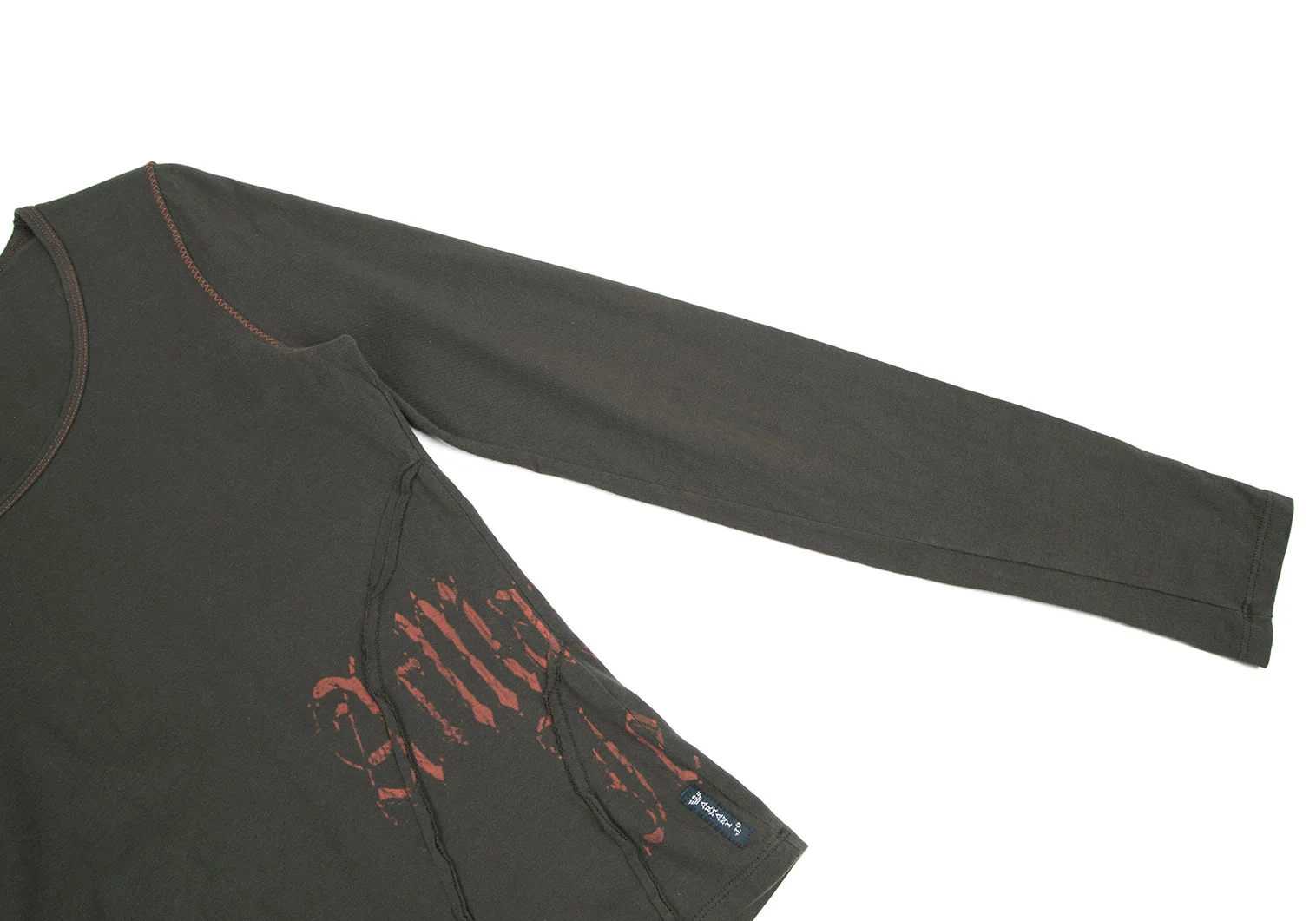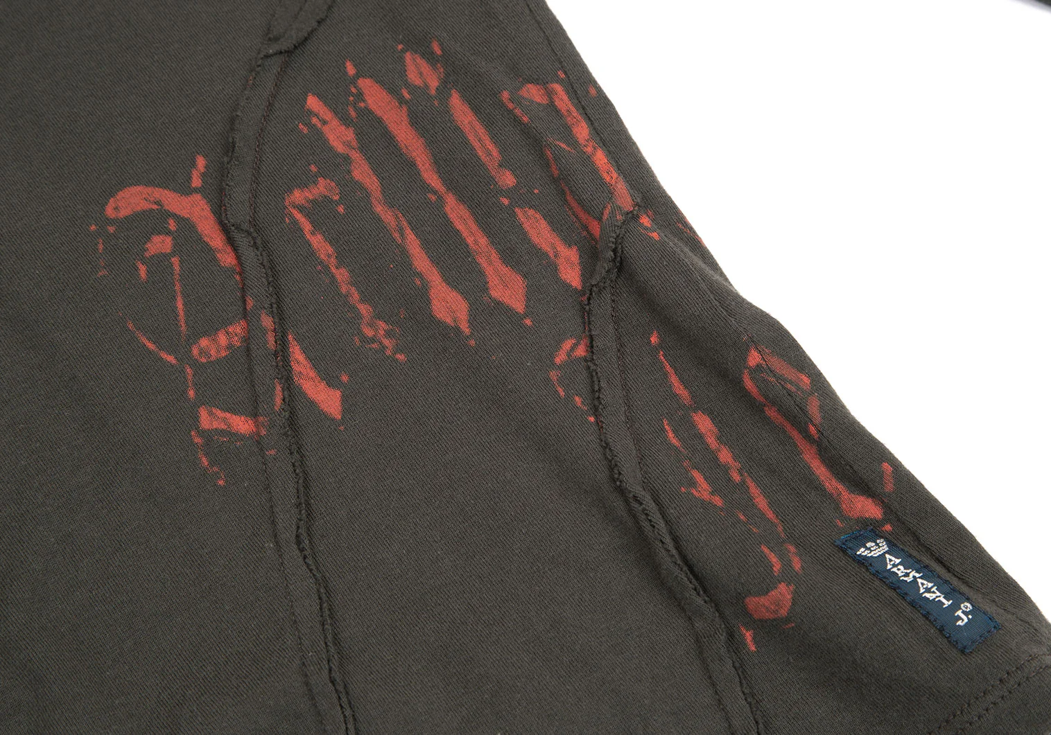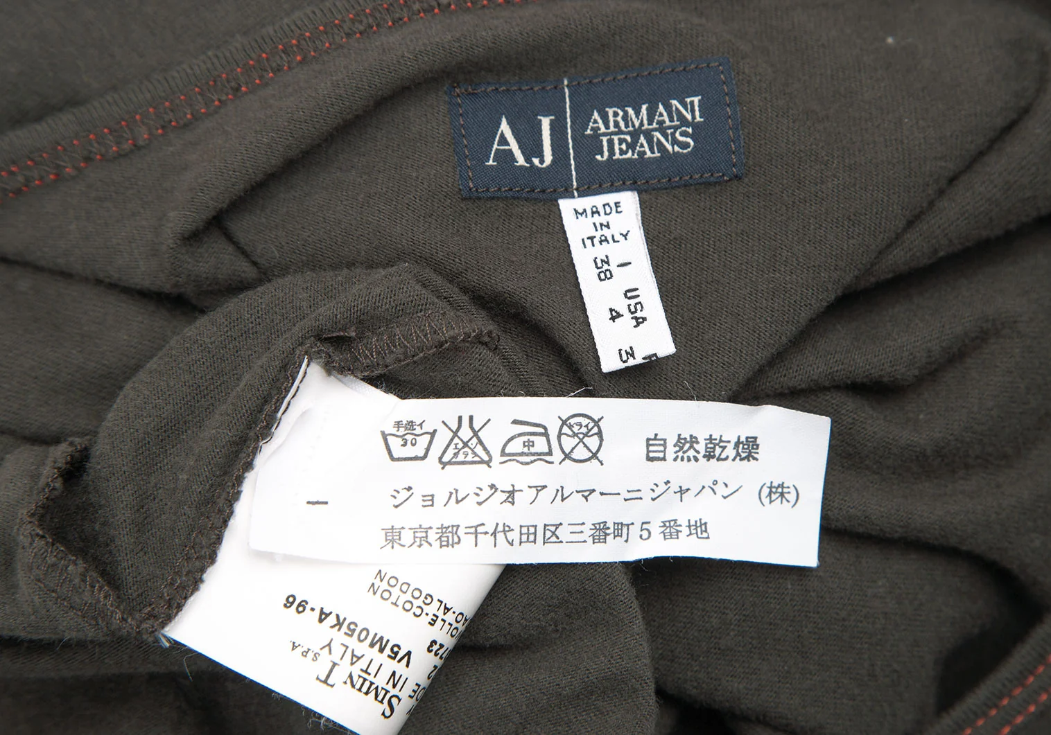 アルマーニジーンズARMANI JEANS サイドロゴプリントステッチデザインカットソー カーキ38