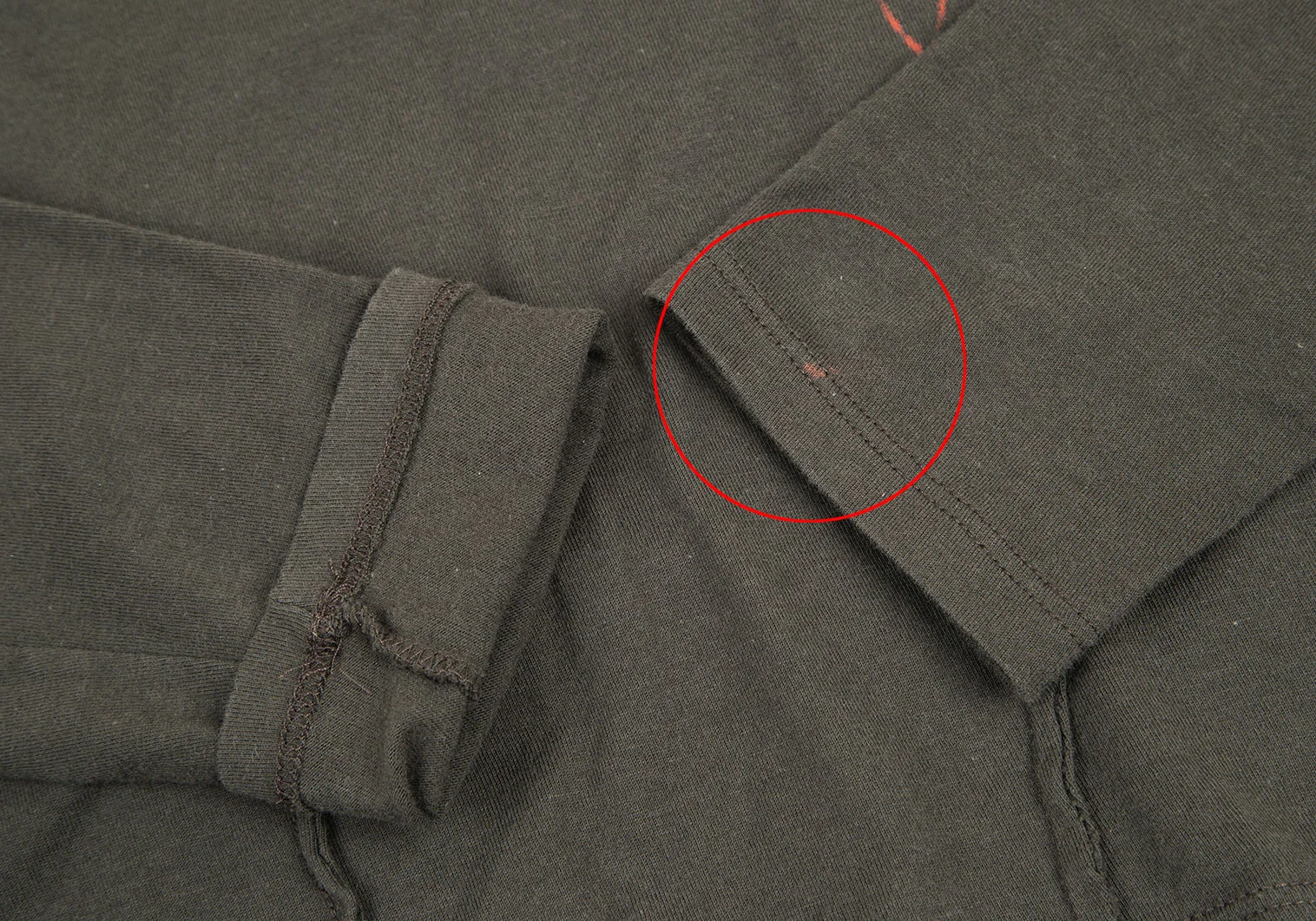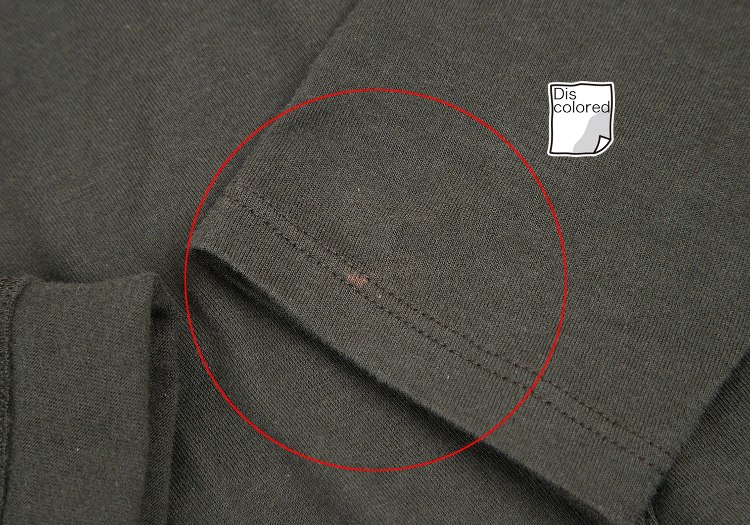 左袖先に変色があります(写真参照)。その他目立ったシミ、汚れ、ほつれ等はありません。クリーニング済み
