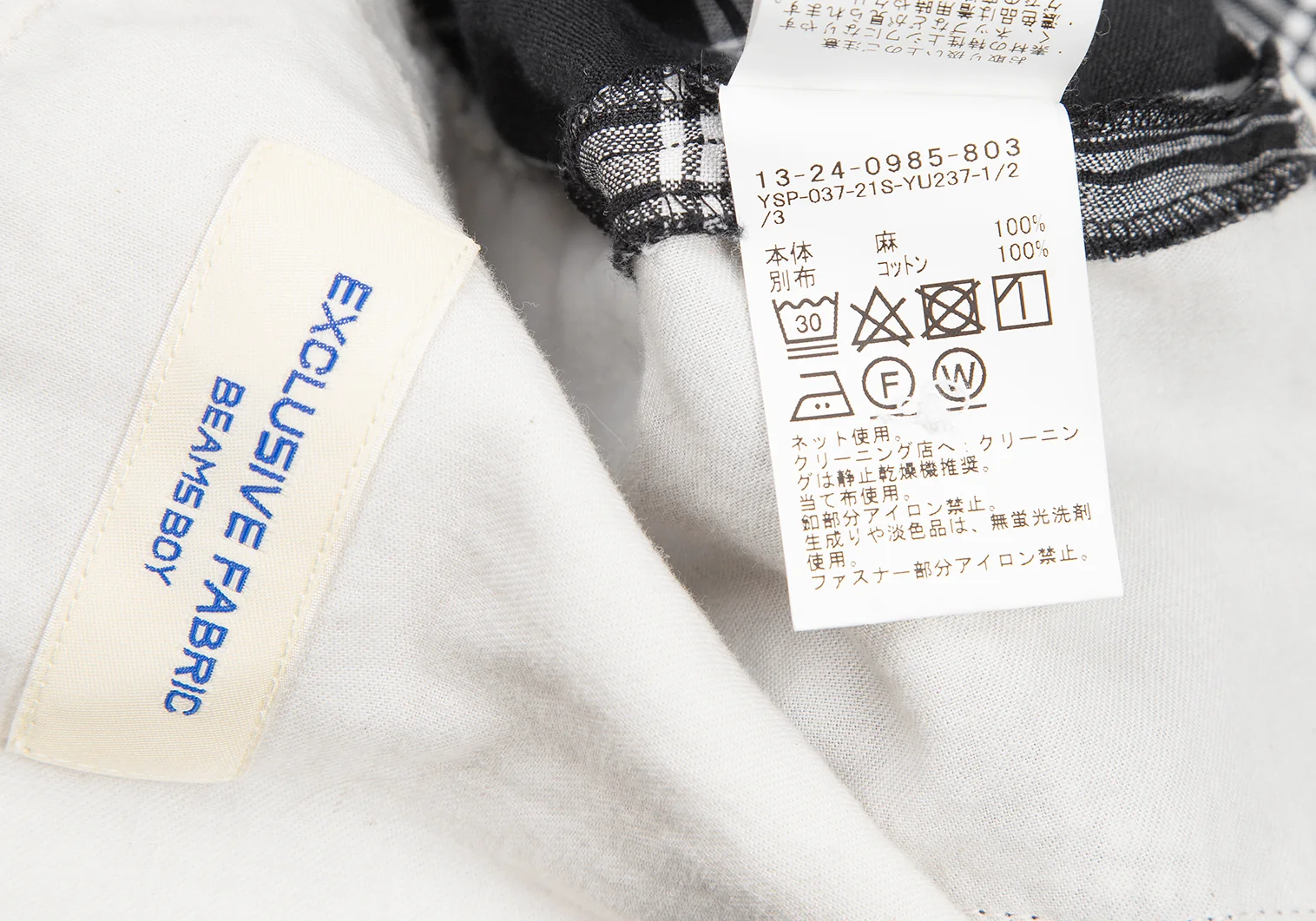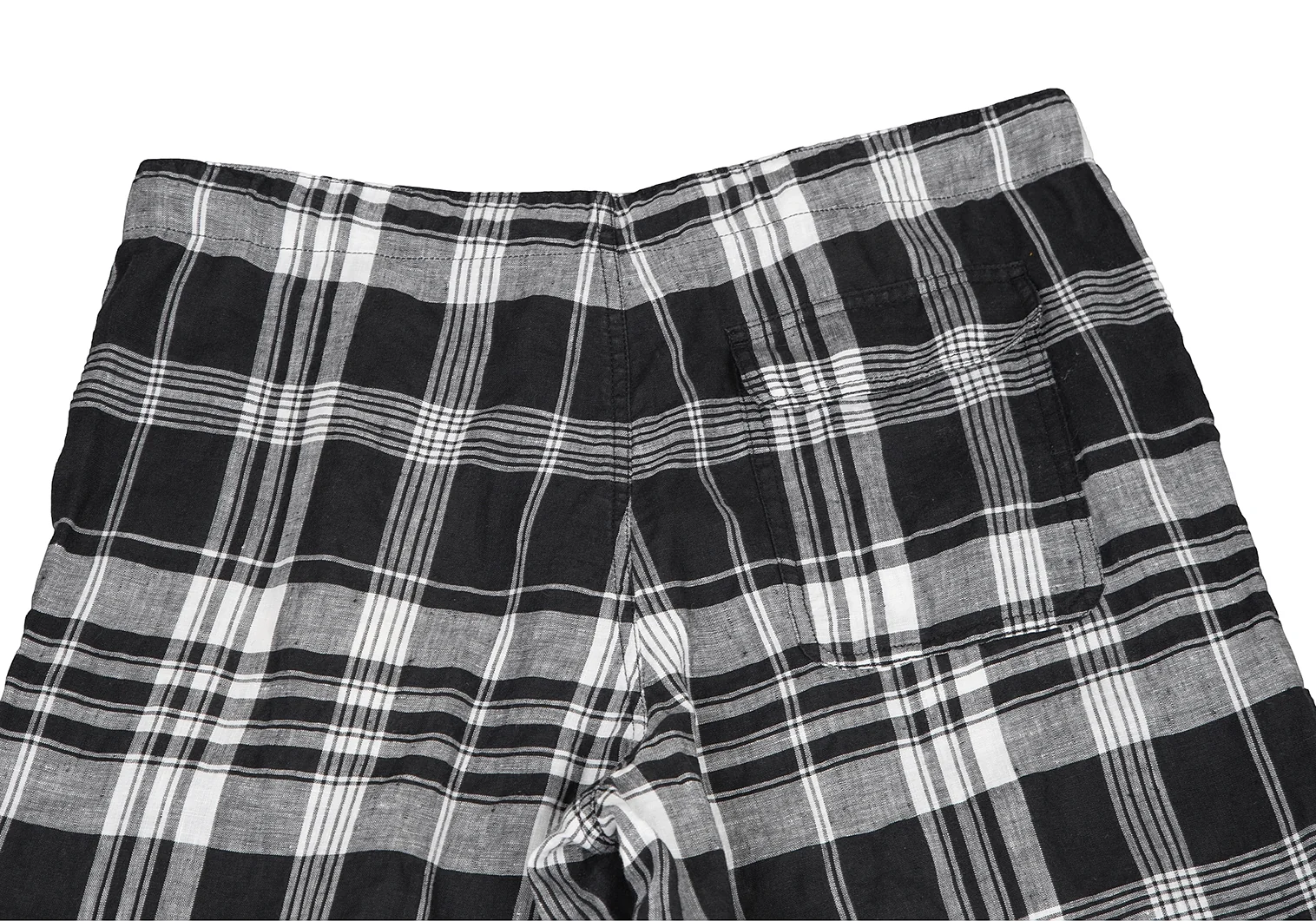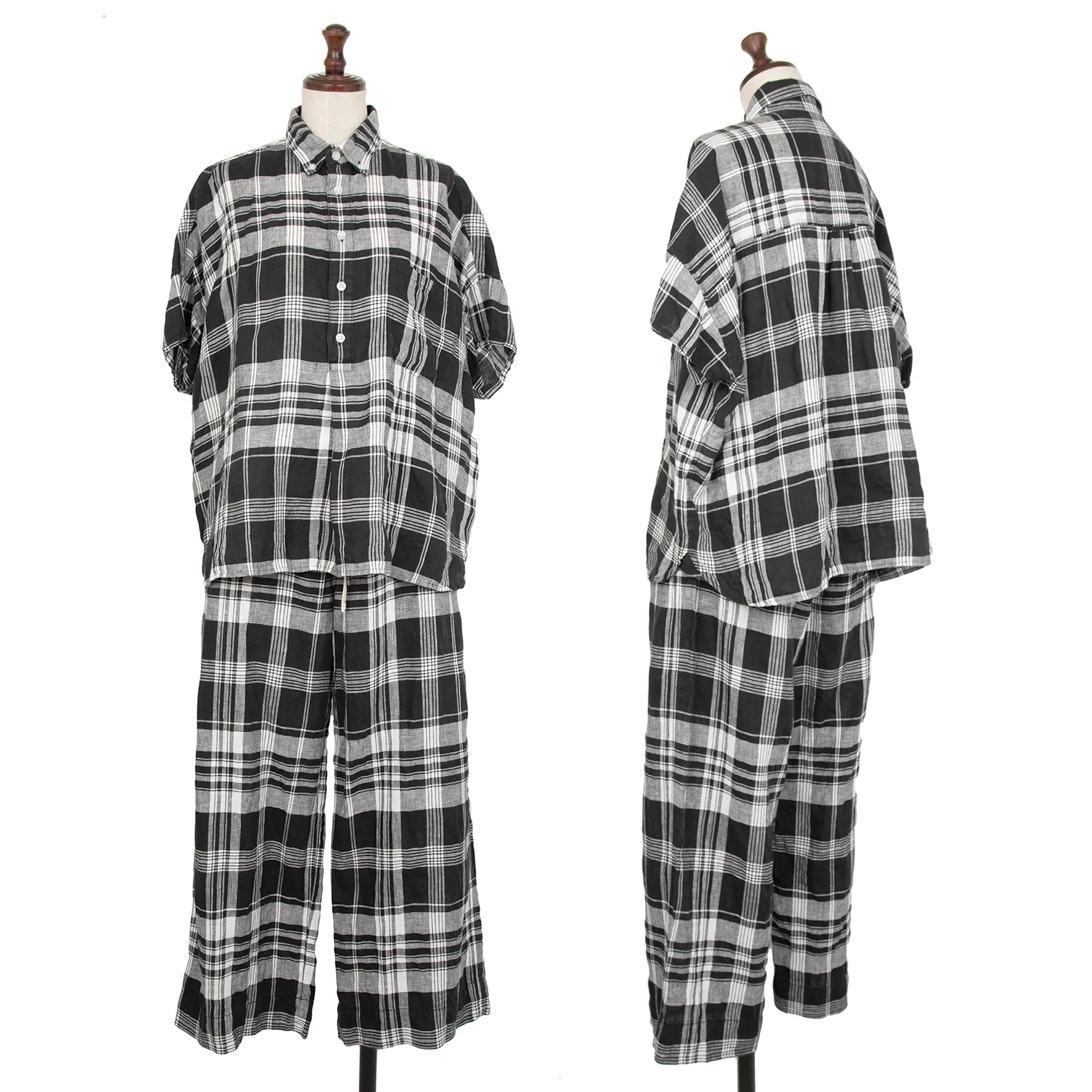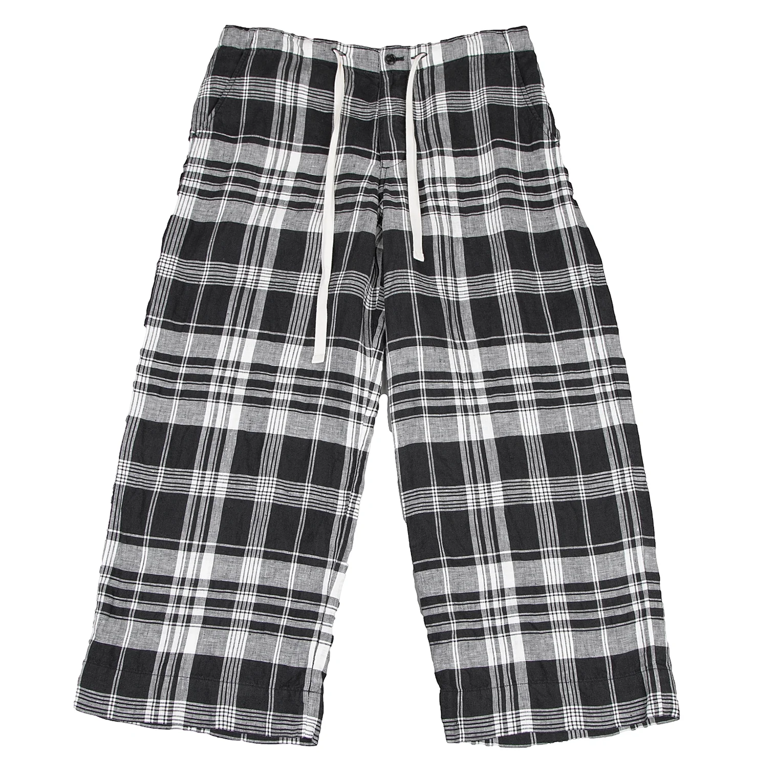 ビームスボーイBEAMS BOY フレンチリネンチェックワイドパンツ 黒白M位