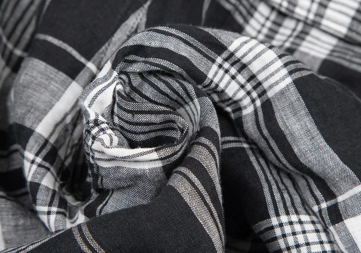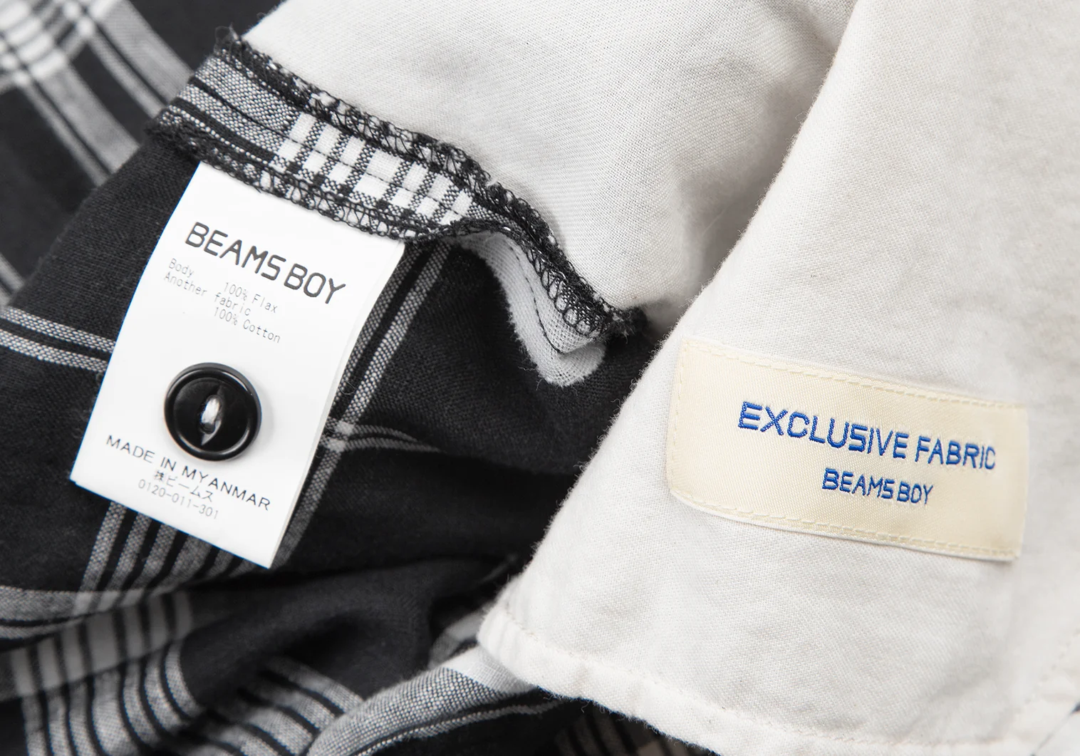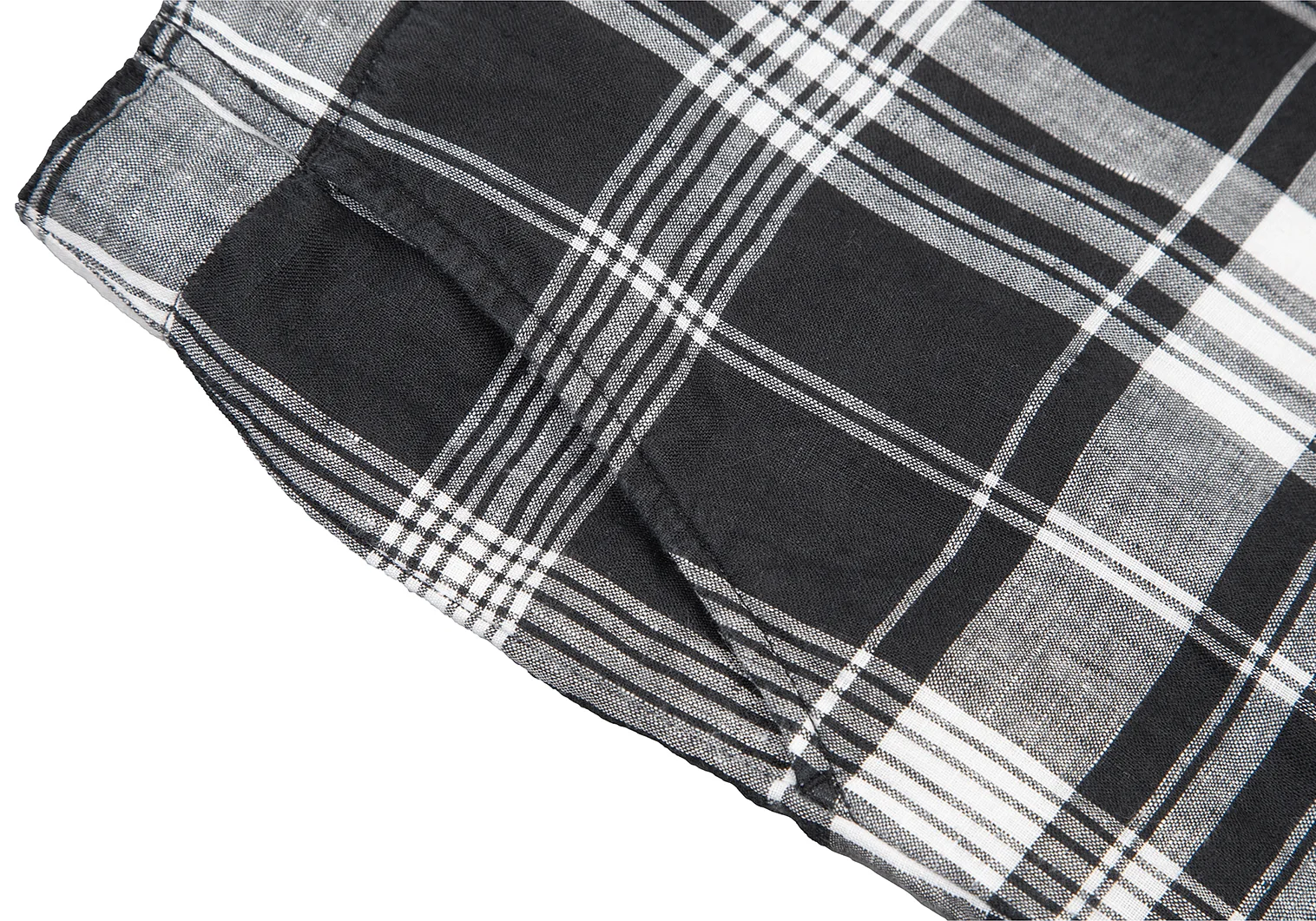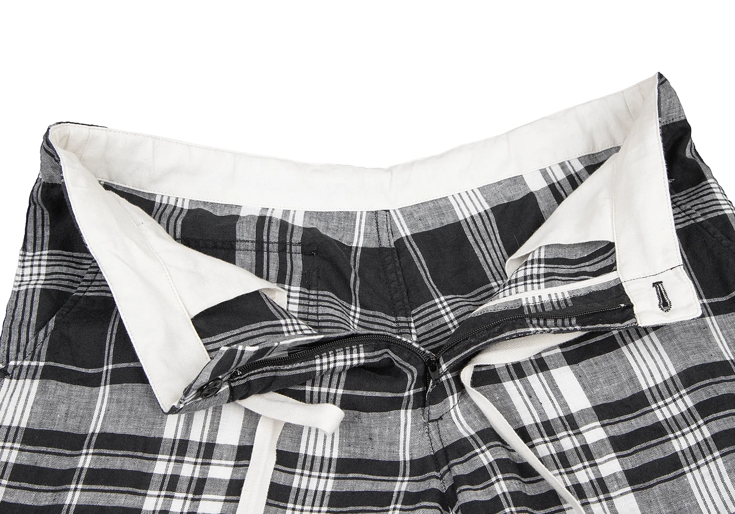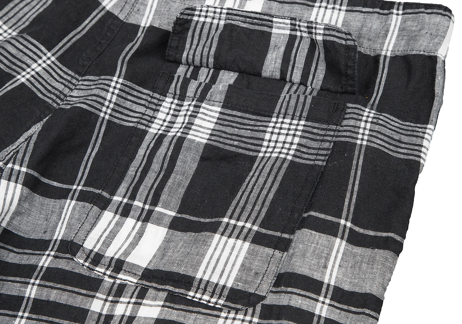 ビームスボーイBEAMS BOY フレンチリネンチェックワイドパンツ 黒白M位