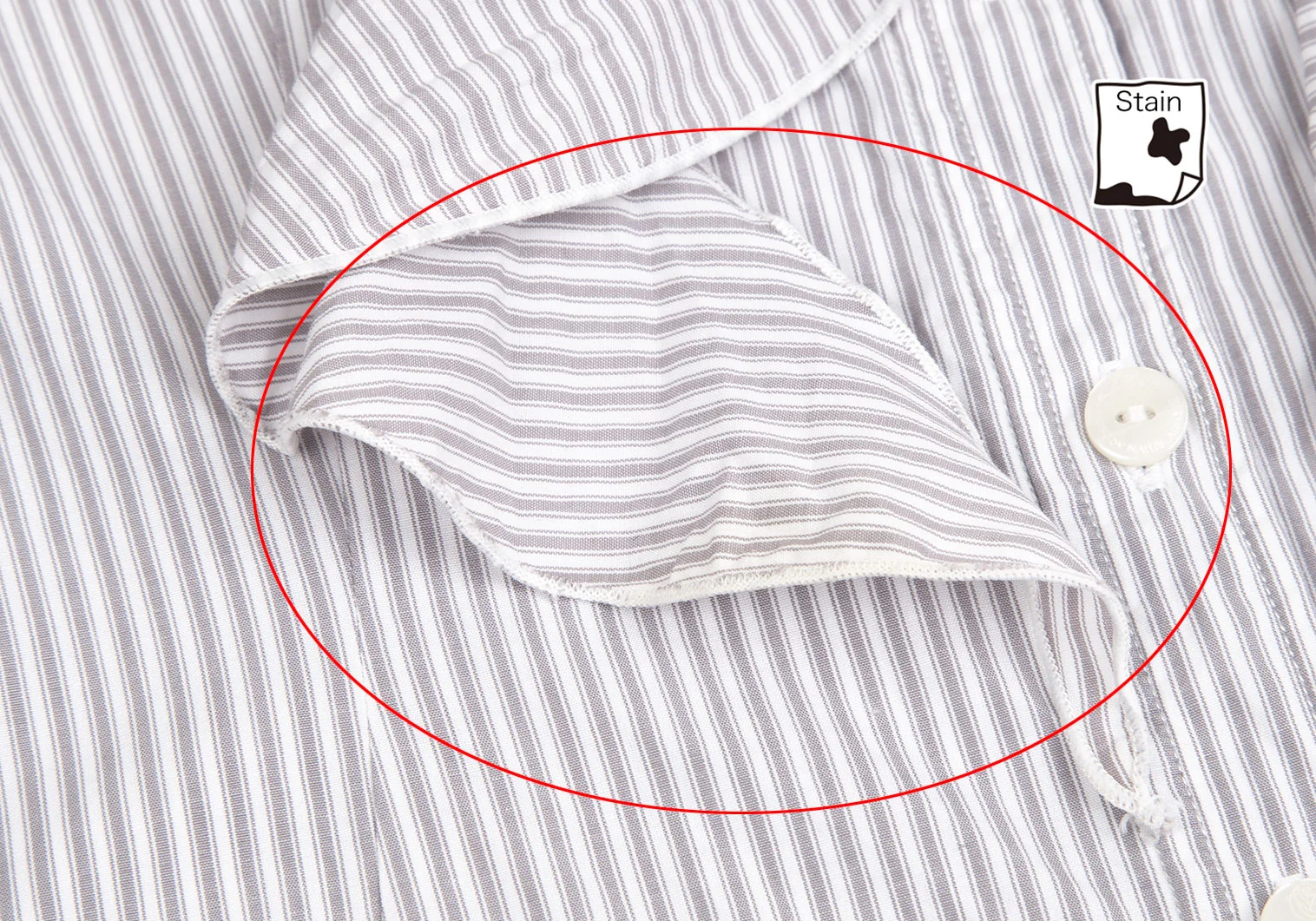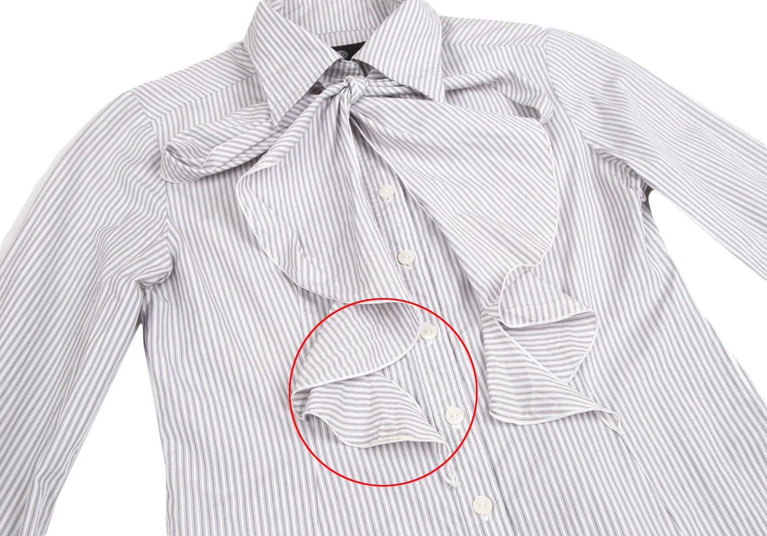 若干透け感があります。襟元に薄汚れ、リボンに薄シミがあります(写真参照)その他目立ったシミ、汚れ、ほつれ等なくいい状態です。クリーニング済み