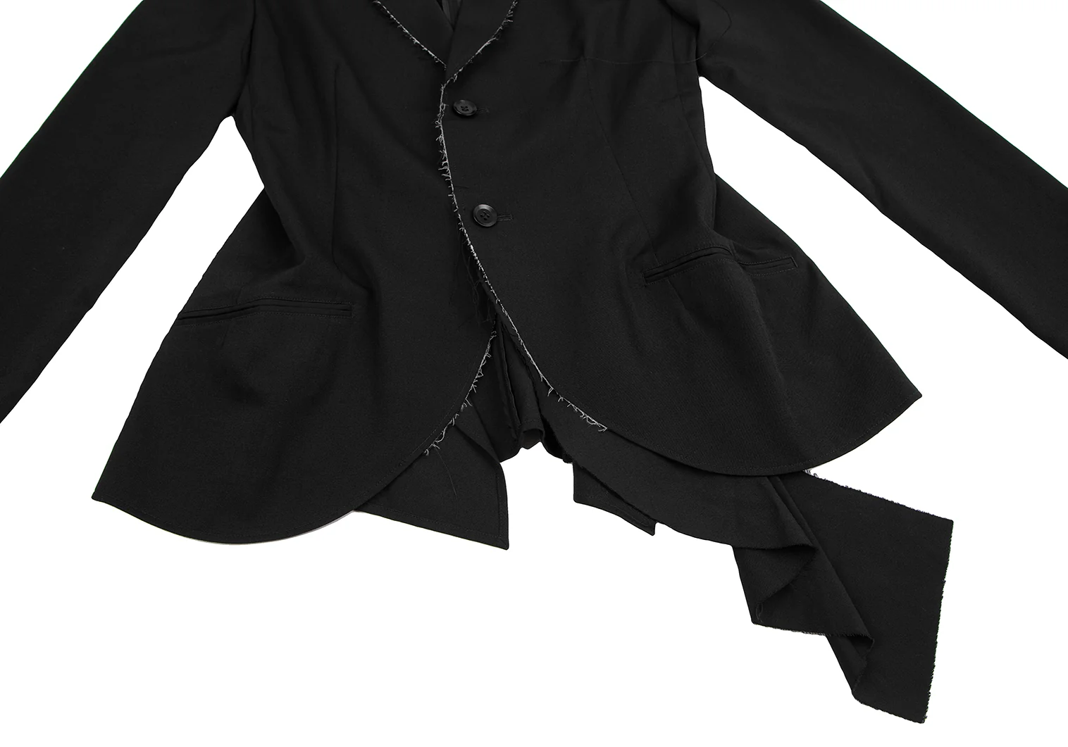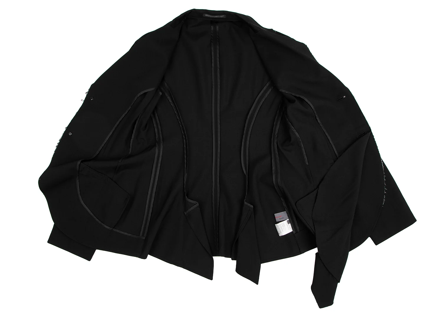 ヨウジヤマモト ノアールYohji Yamamoto NOIR ウールギャバフロント裁ち切りBジャケット 黒2