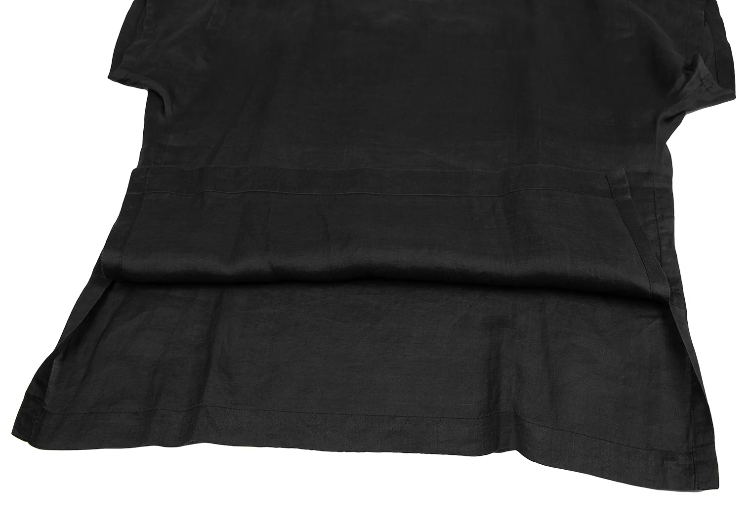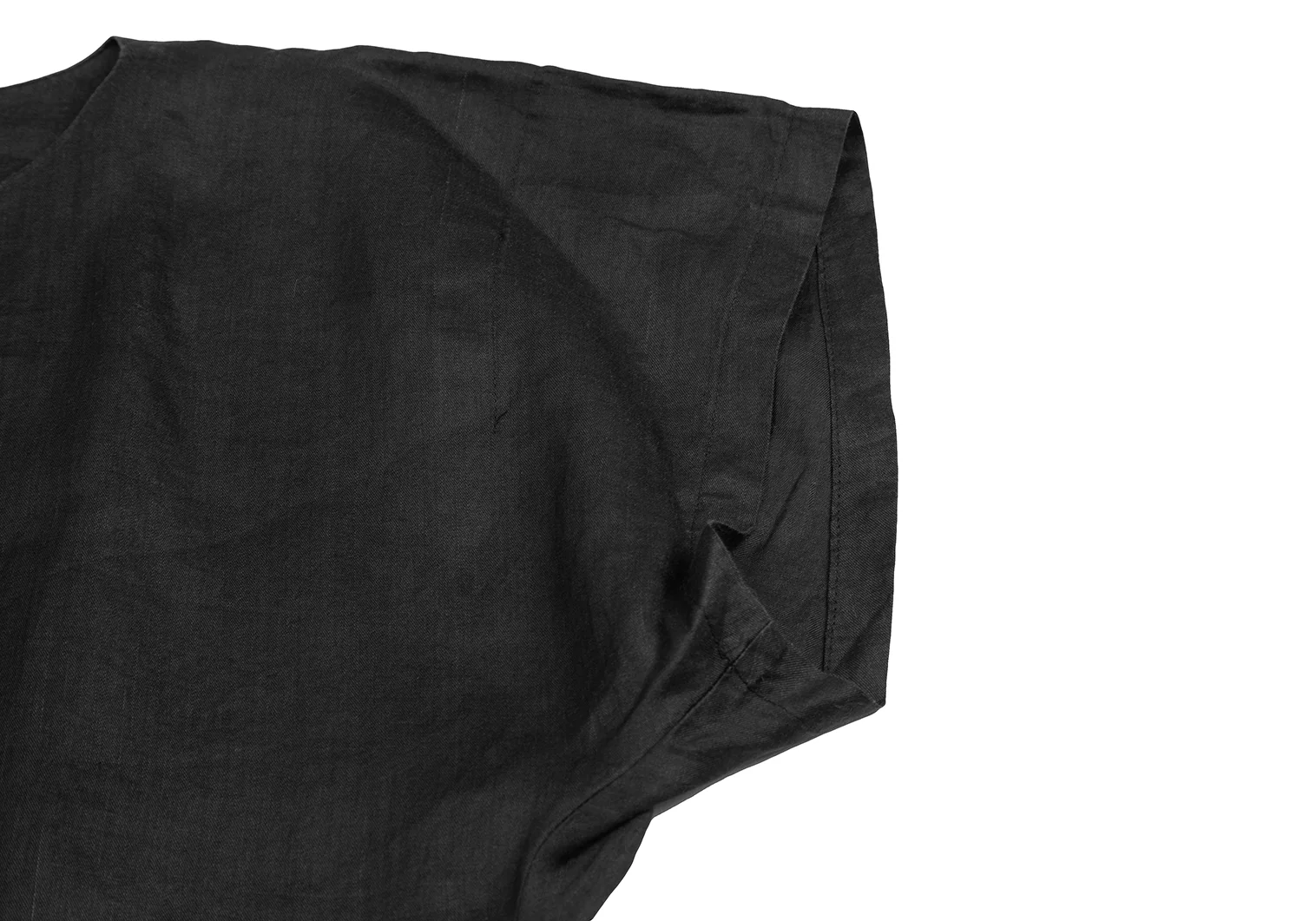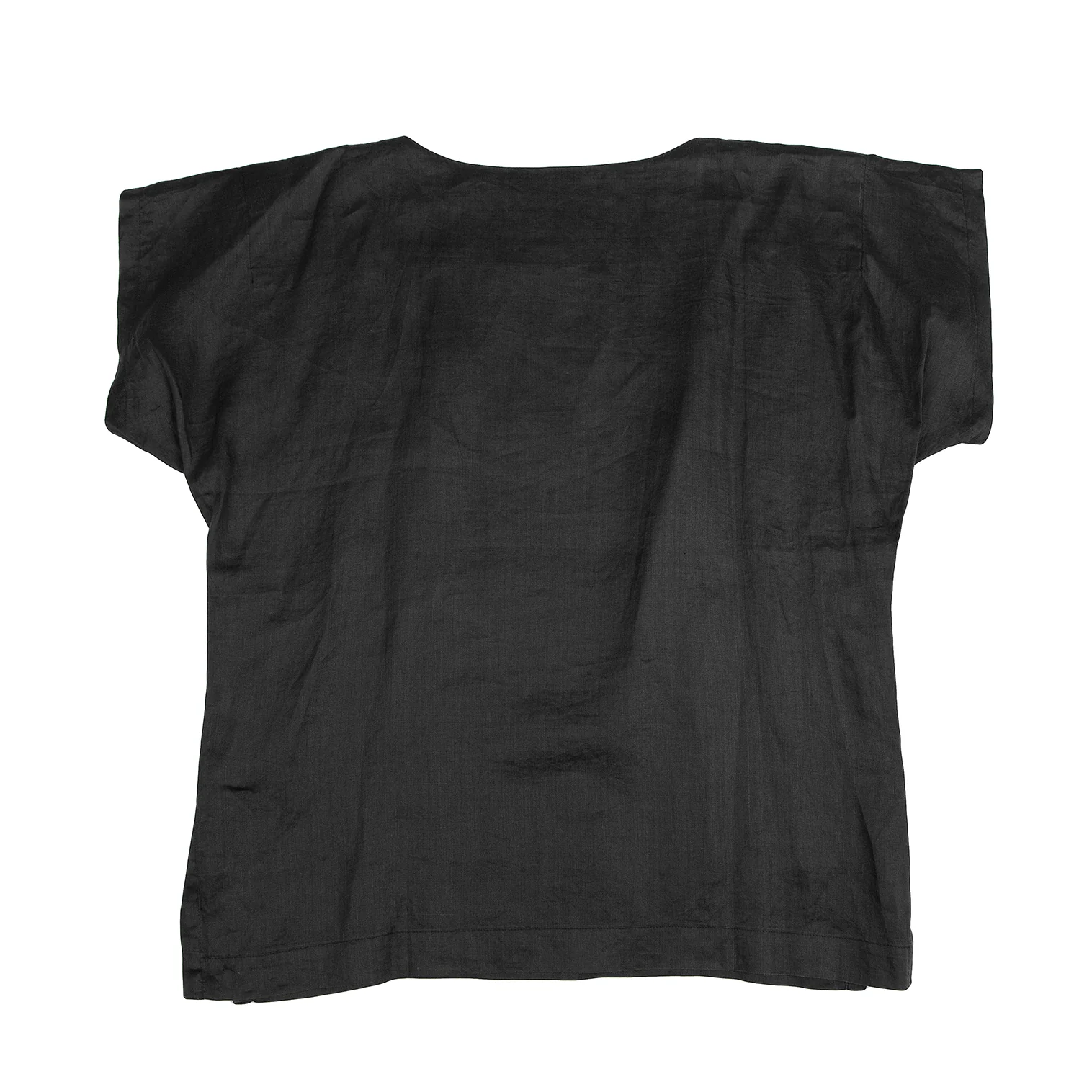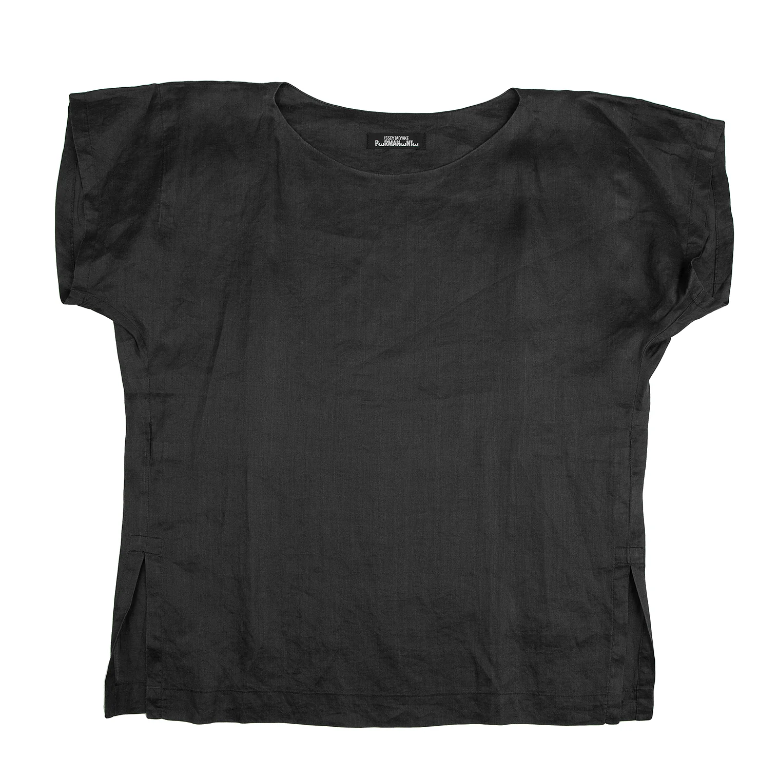 イッセイミヤケペルマネンテISSEY MIYAKEPERMANENTE リネンボックスシルエット半袖トップス 墨黒M