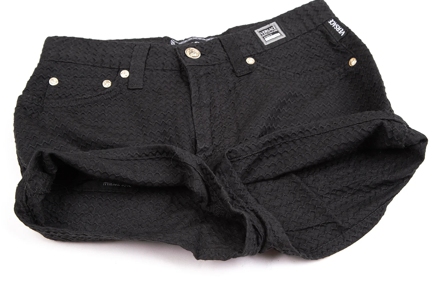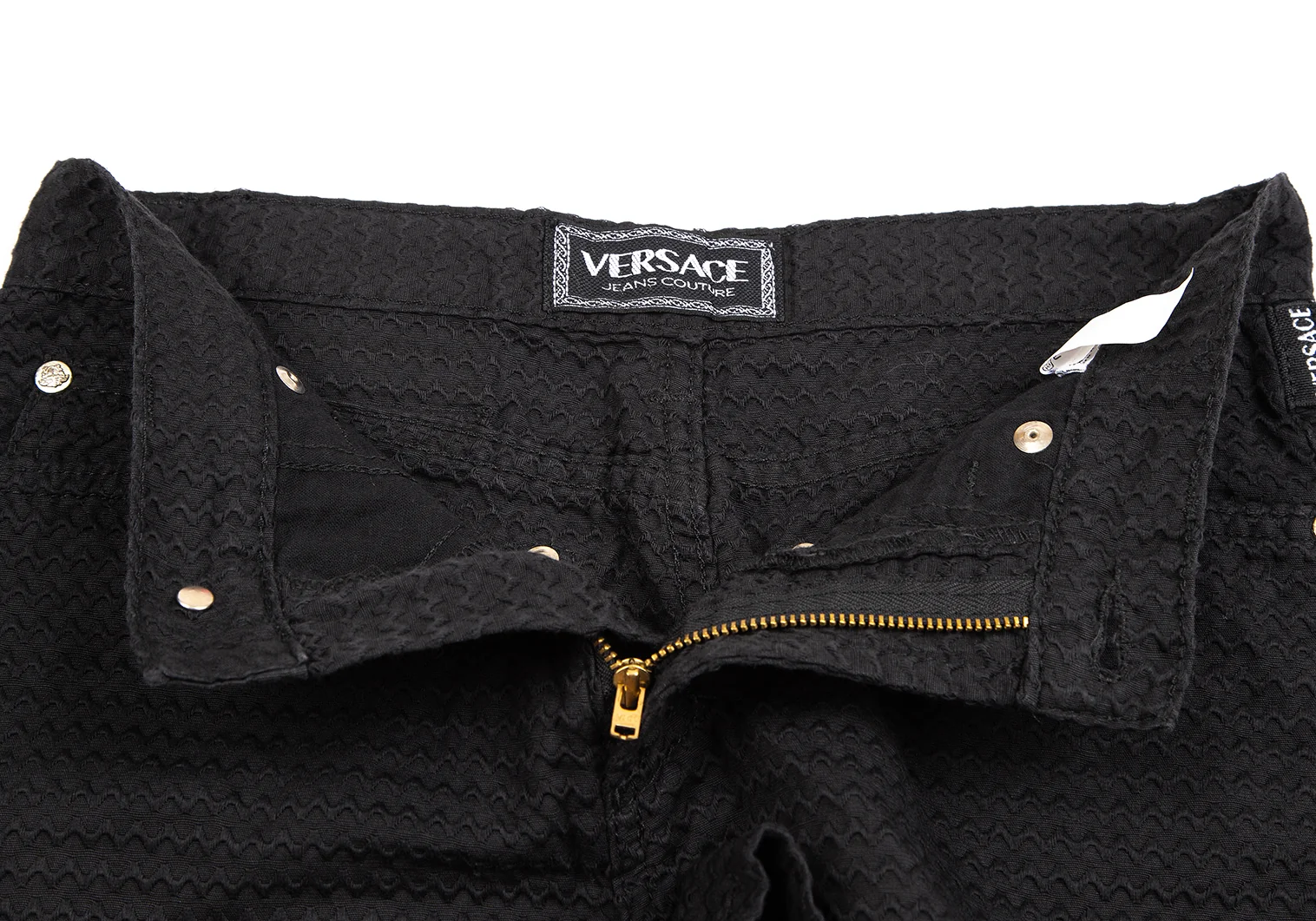 ヴェルサーチ ジーンズクチュールVERSACE JEANS COUTURE ジャガードメデューサボタンショートパンツ 黒38