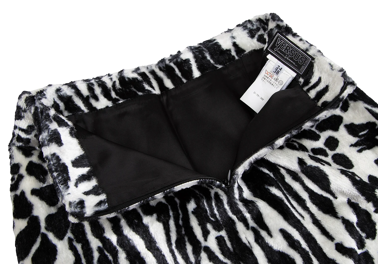 ヴェルサスVERSUS ゼブラプリントフェイクファースカート 黒白38