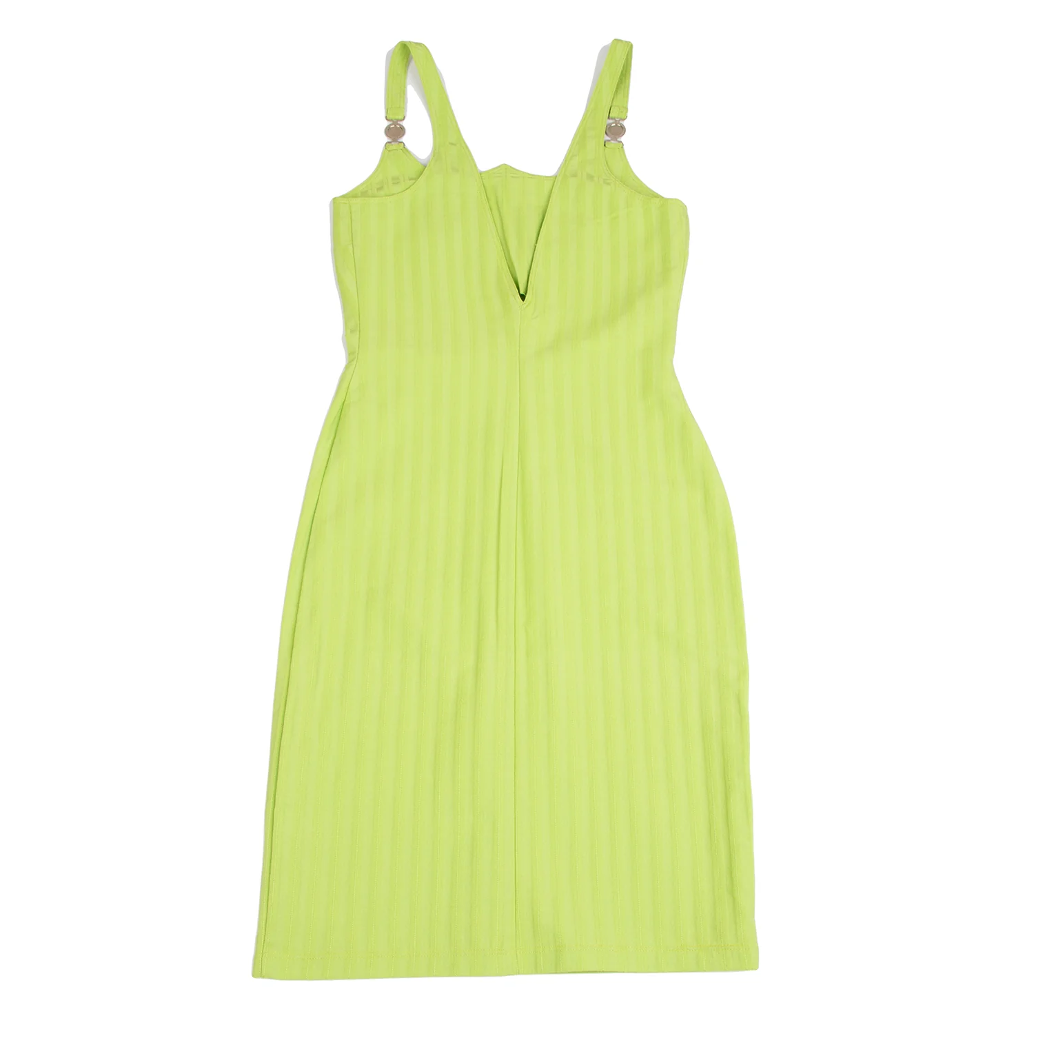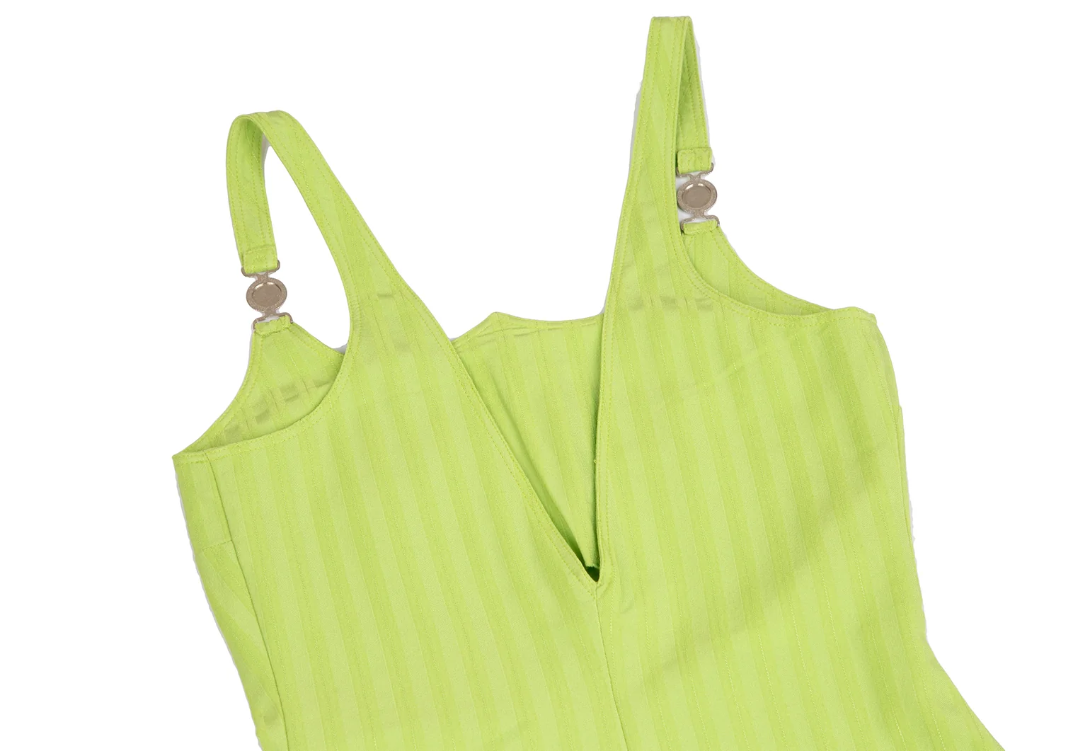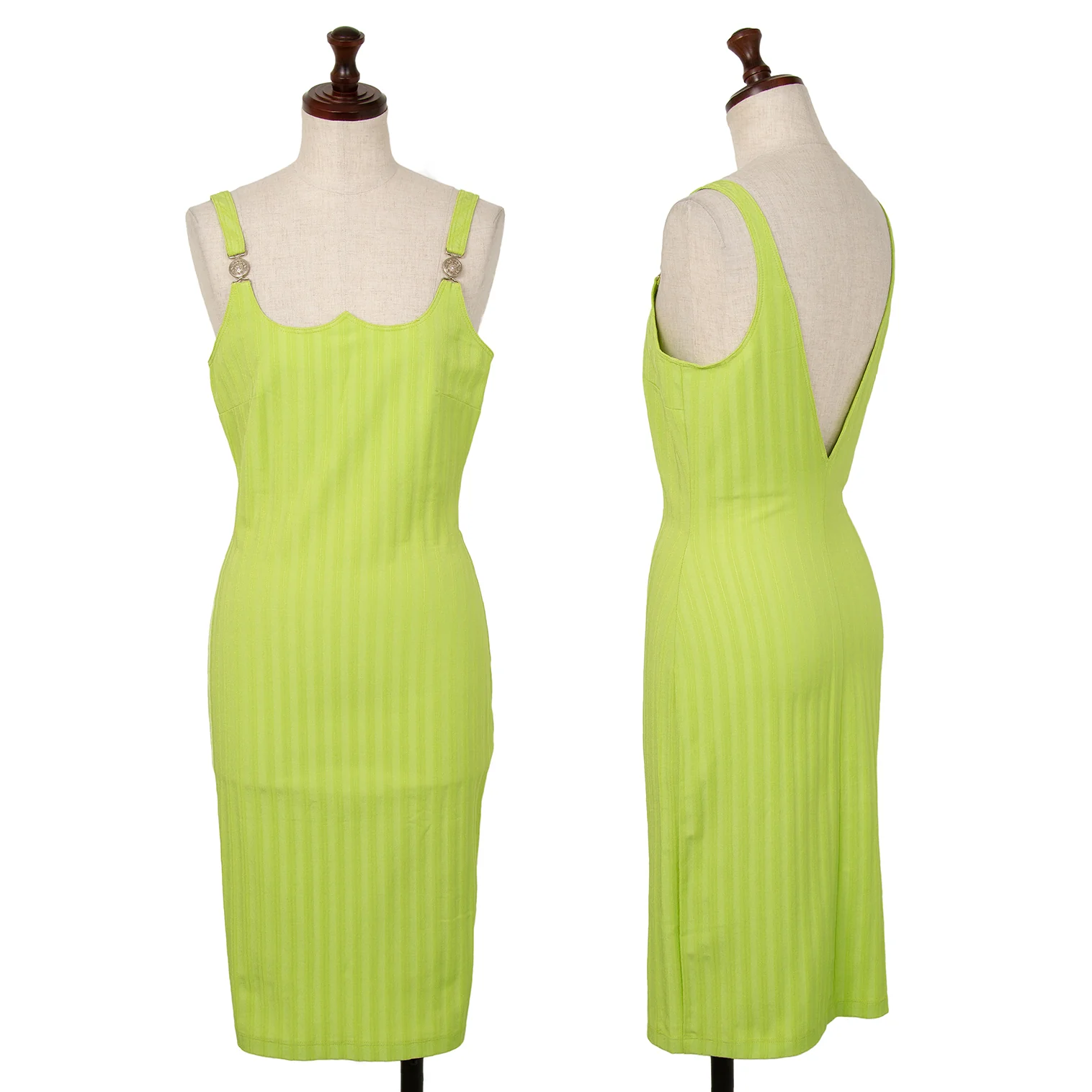 ヴェルサーチ ジーンズクチュールVERSACE JEANS COUTURE ナイロンストレッチストライプノースリーブワンピース 黄緑40