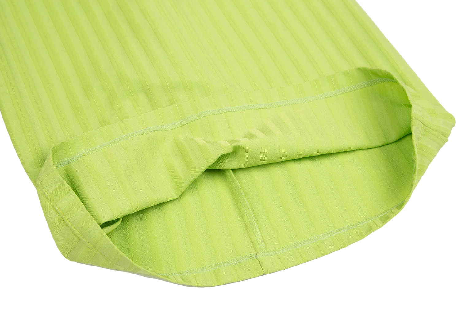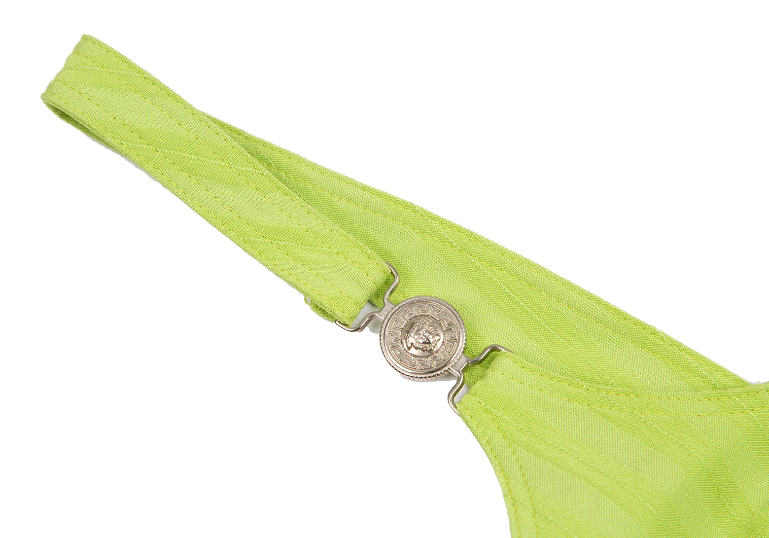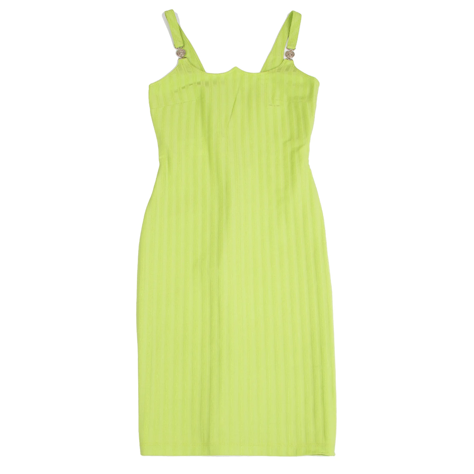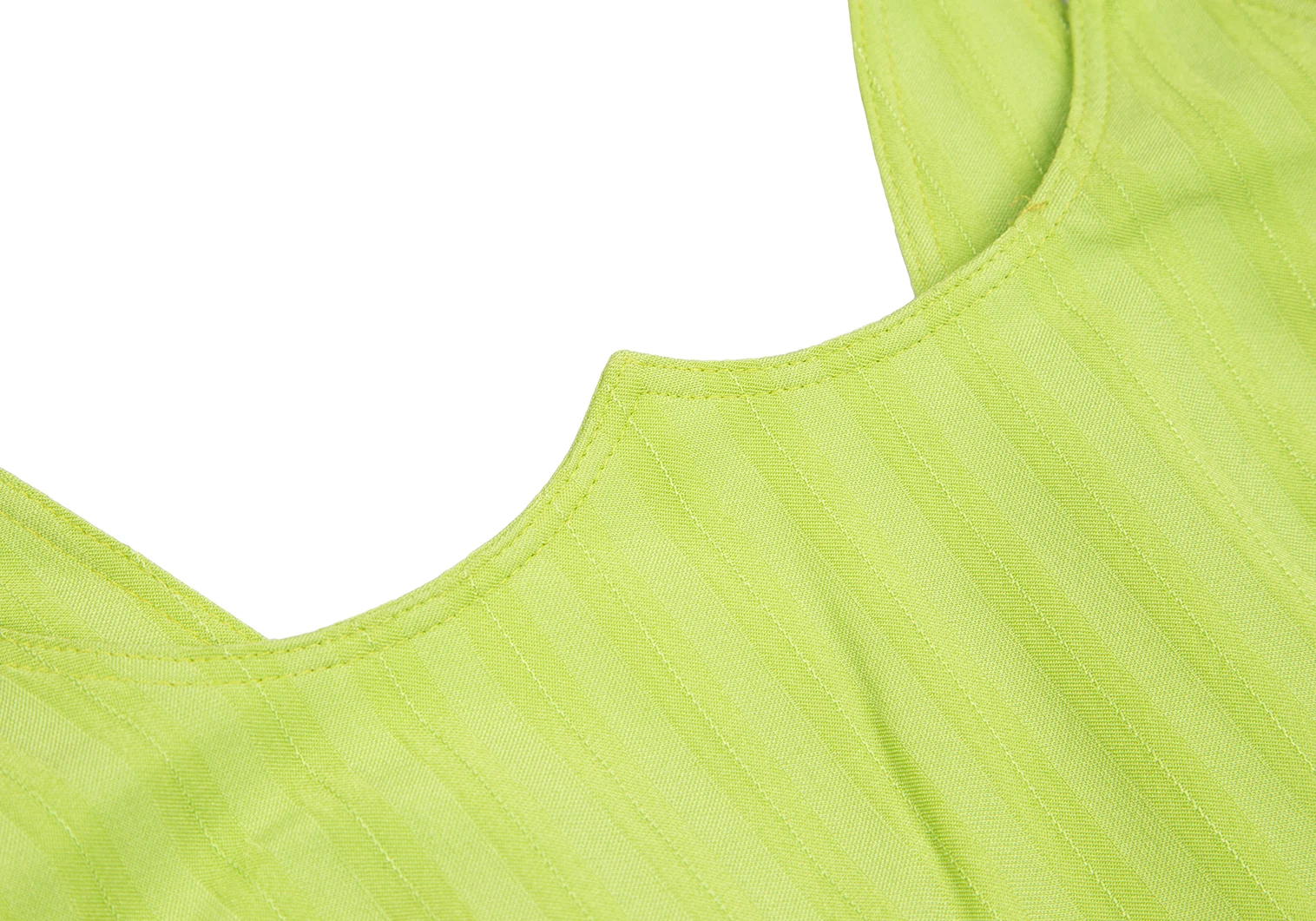 ヴェルサーチ ジーンズクチュールVERSACE JEANS COUTURE ナイロンストレッチストライプノースリーブワンピース 黄緑40
