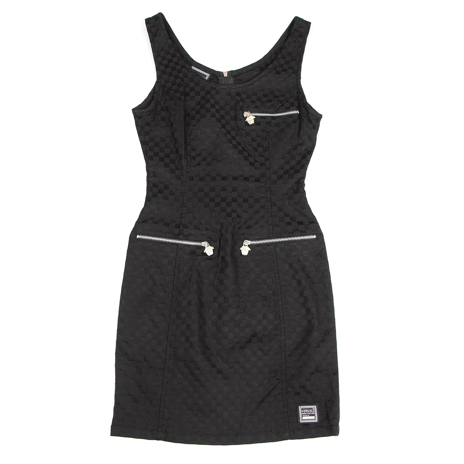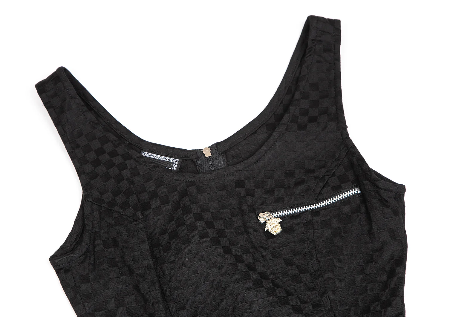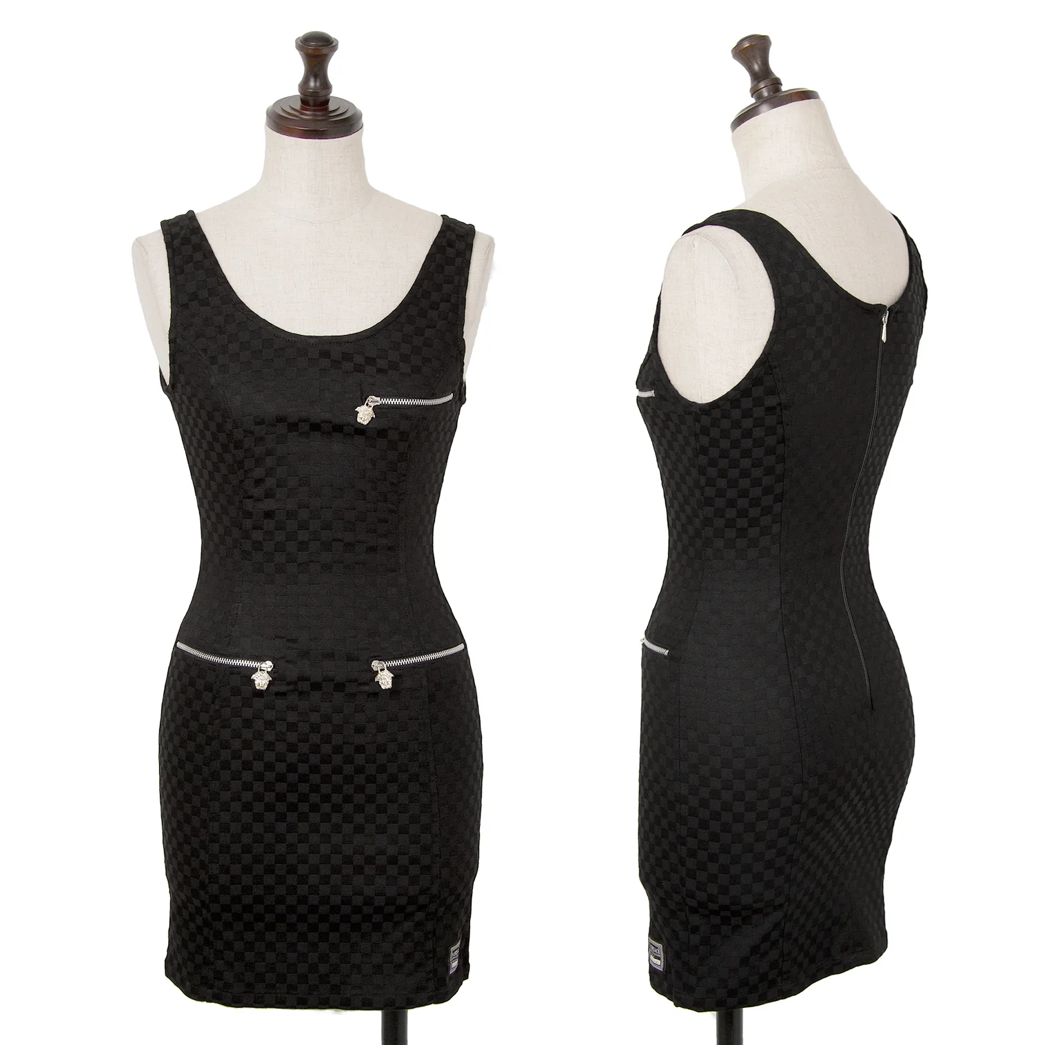 ヴェルサーチ ジーンズクチュールVERSACE JEANS COUTURE フロントジップチェッカーフラッグノースリーブミニワンピース 黒38