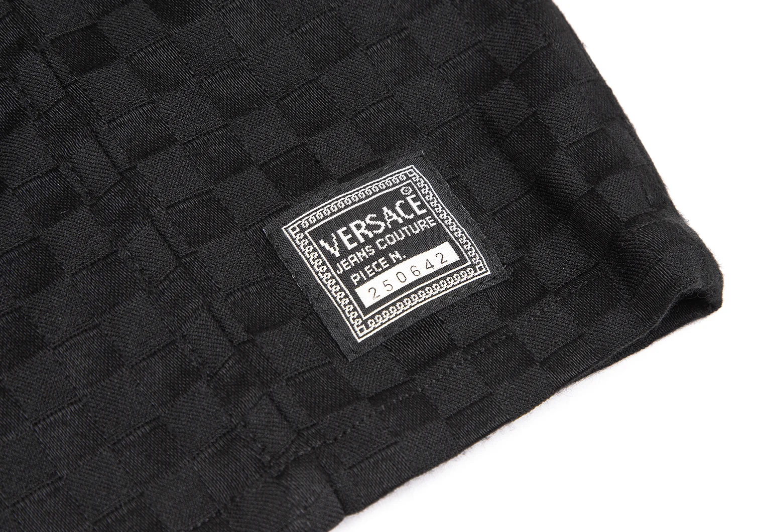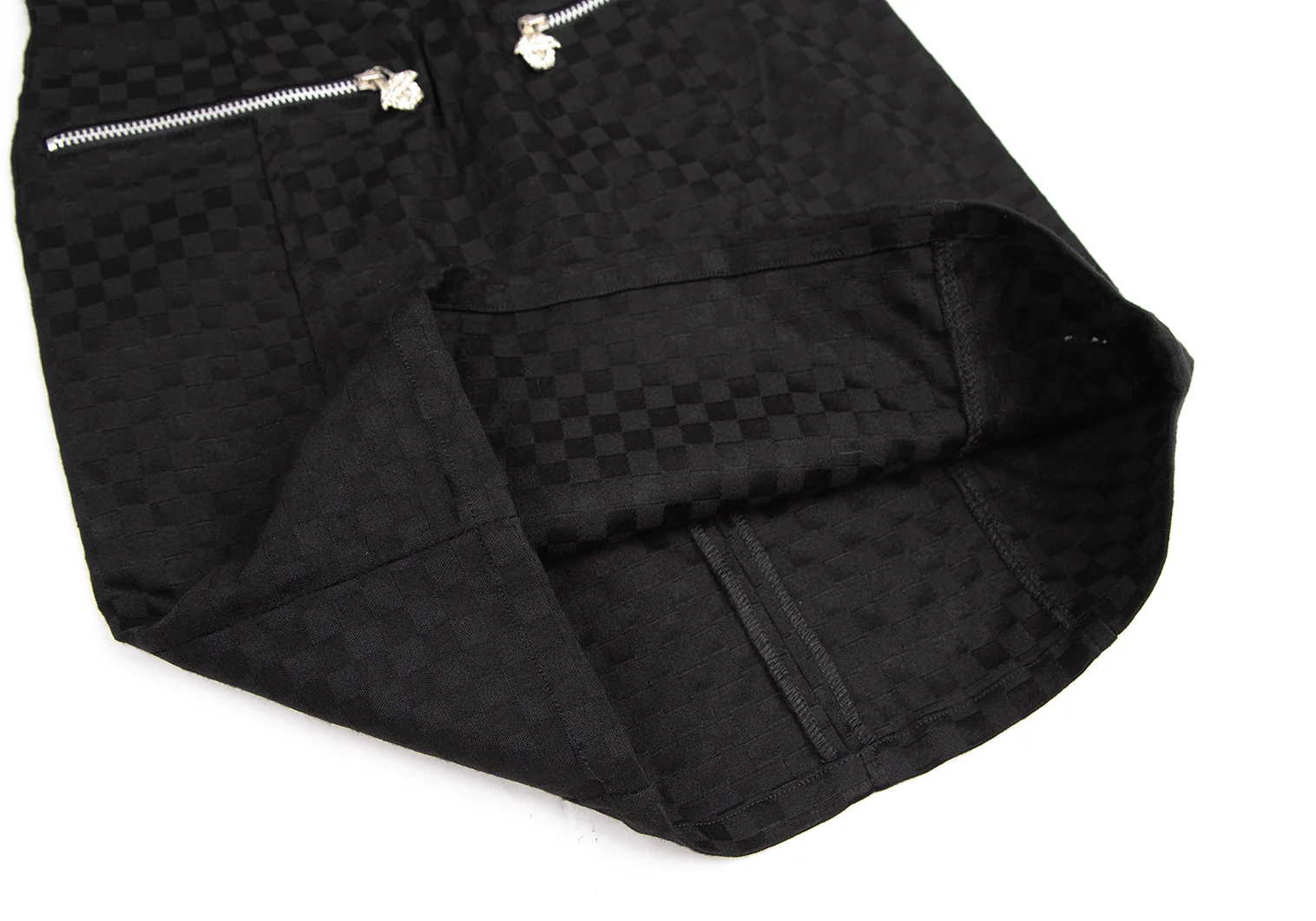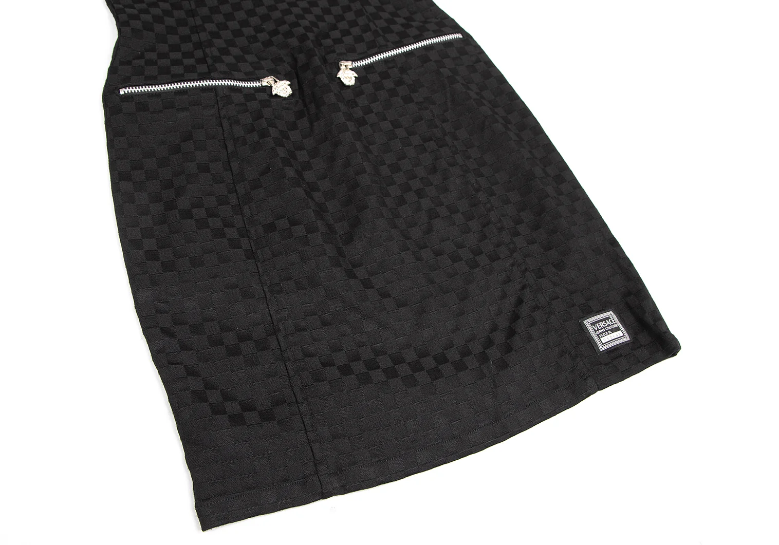 ヴェルサーチ ジーンズクチュールVERSACE JEANS COUTURE フロントジップチェッカーフラッグノースリーブミニワンピース 黒38