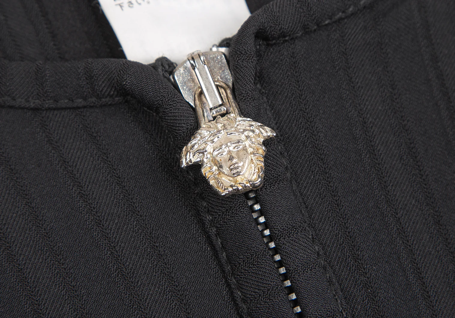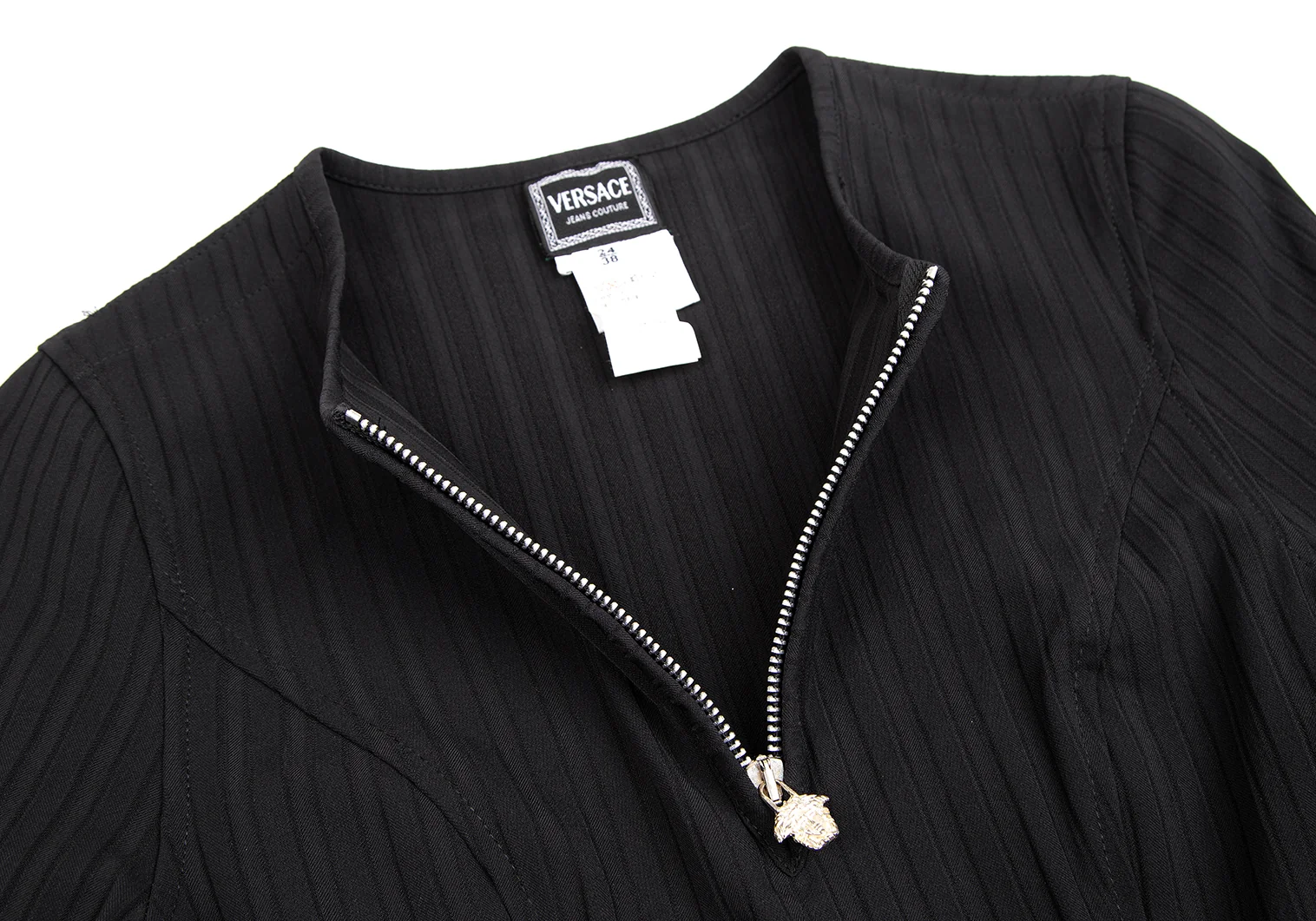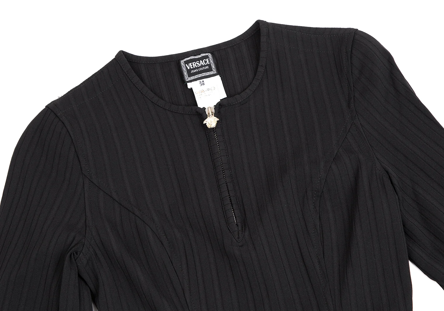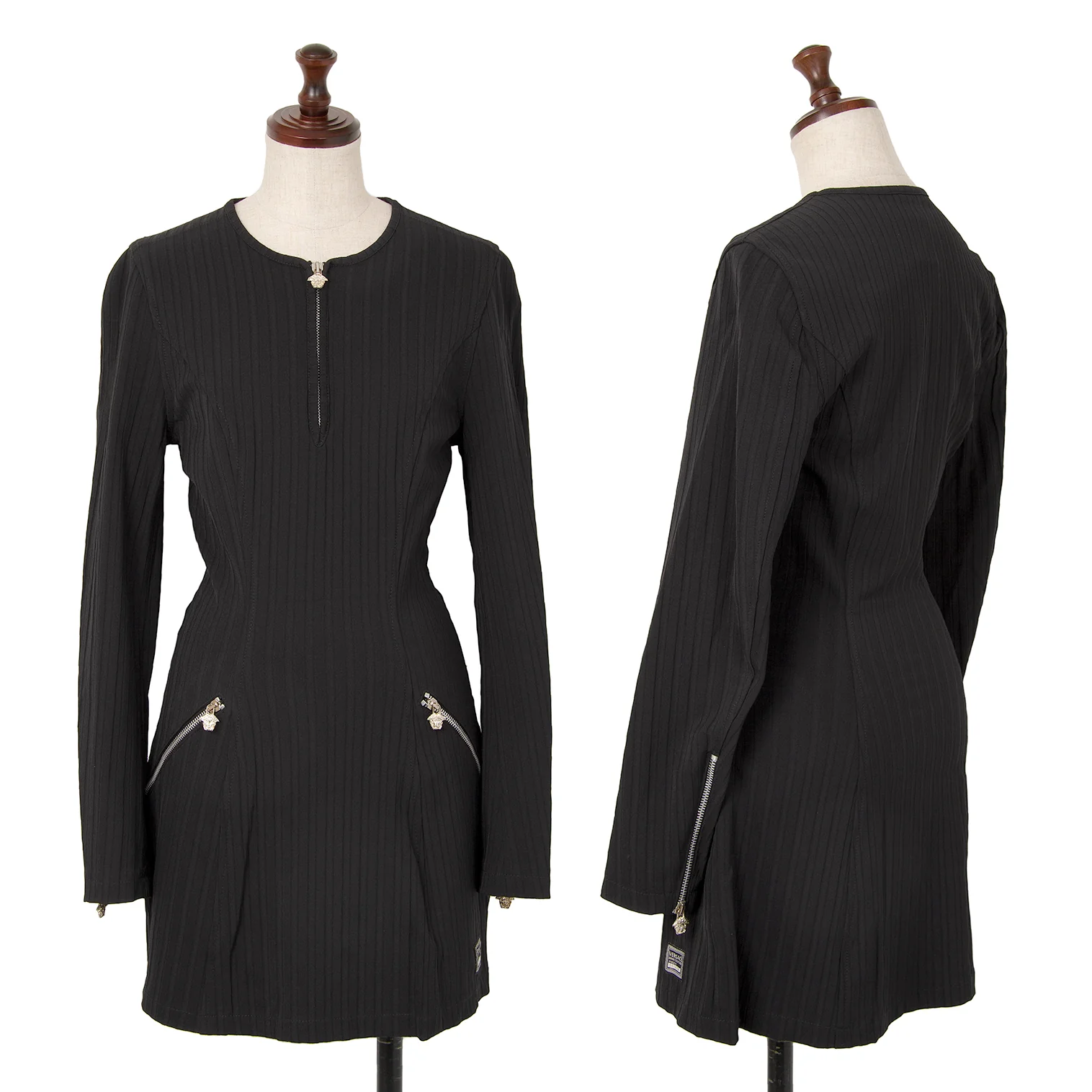 ヴェルサーチ ジーンズクチュールVERSACE JEANS COUTURE ストライプ織りハーフジップワンピース 黒38