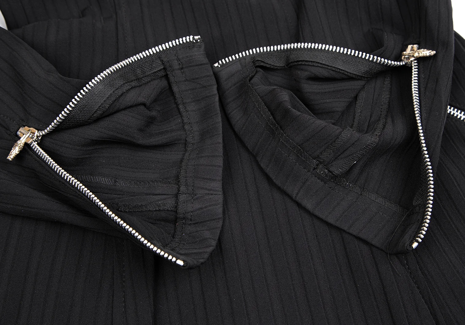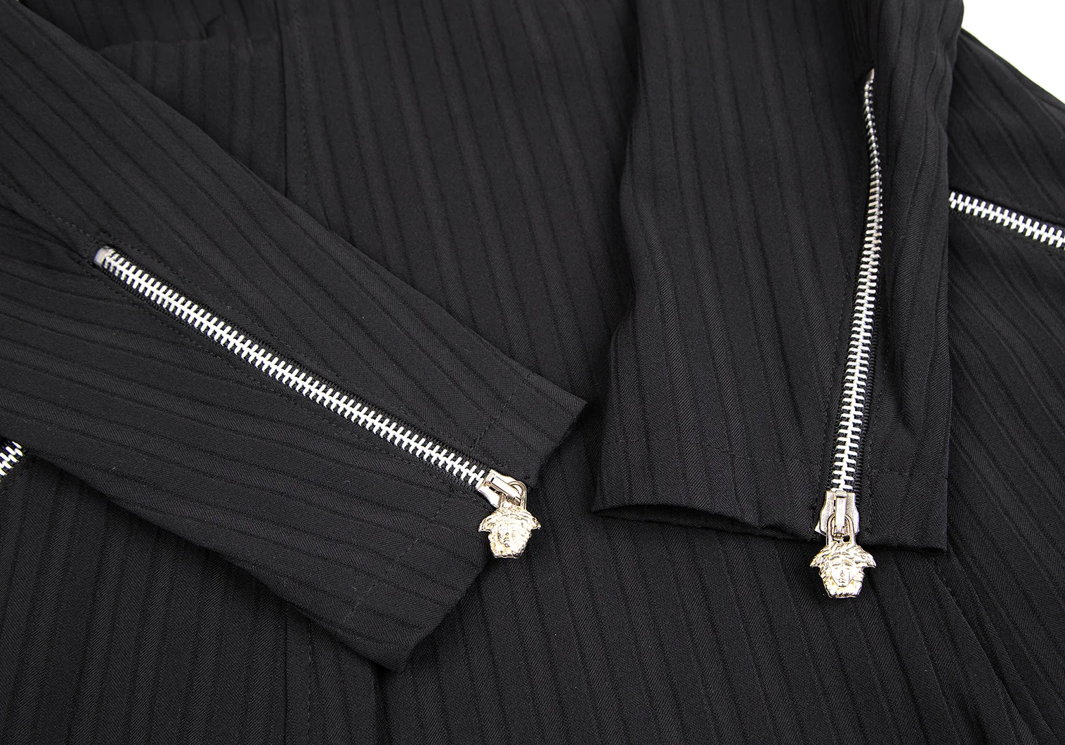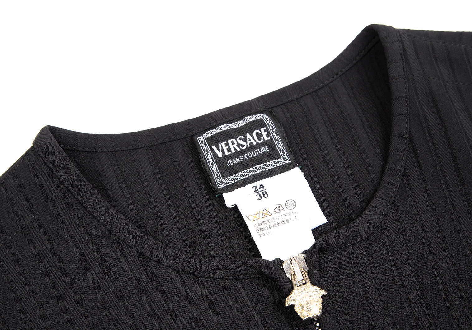 ヴェルサーチ ジーンズクチュールVERSACE JEANS COUTURE ストライプ織りハーフジップワンピース 黒38