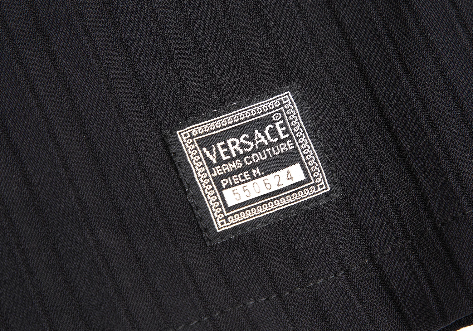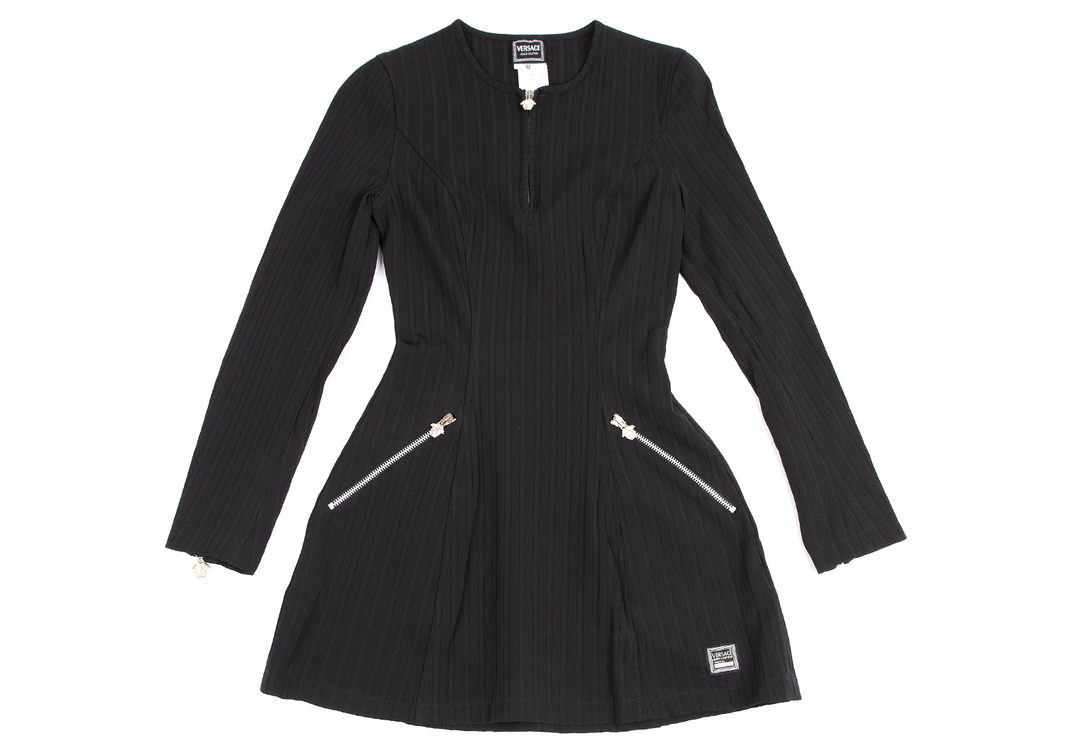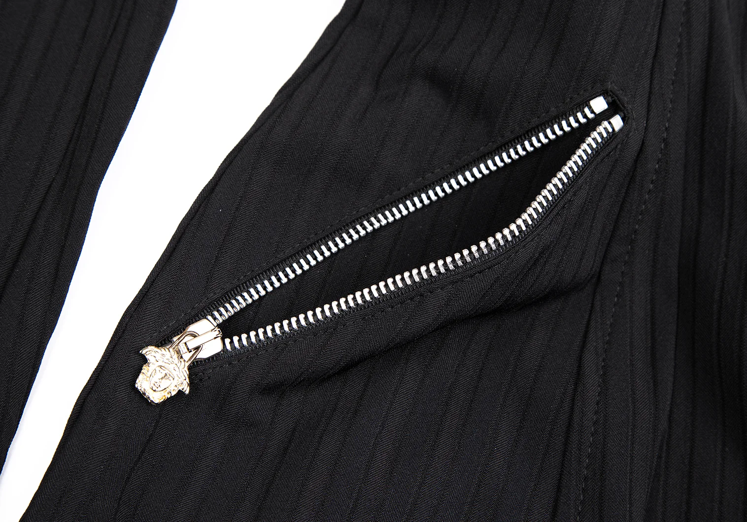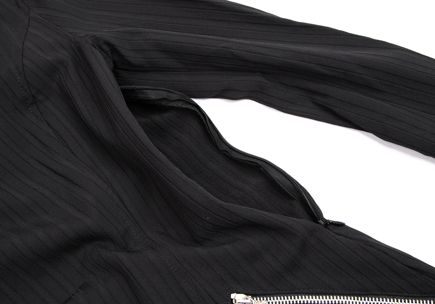 ヴェルサーチ ジーンズクチュールVERSACE JEANS COUTURE ストライプ織りハーフジップワンピース 黒38