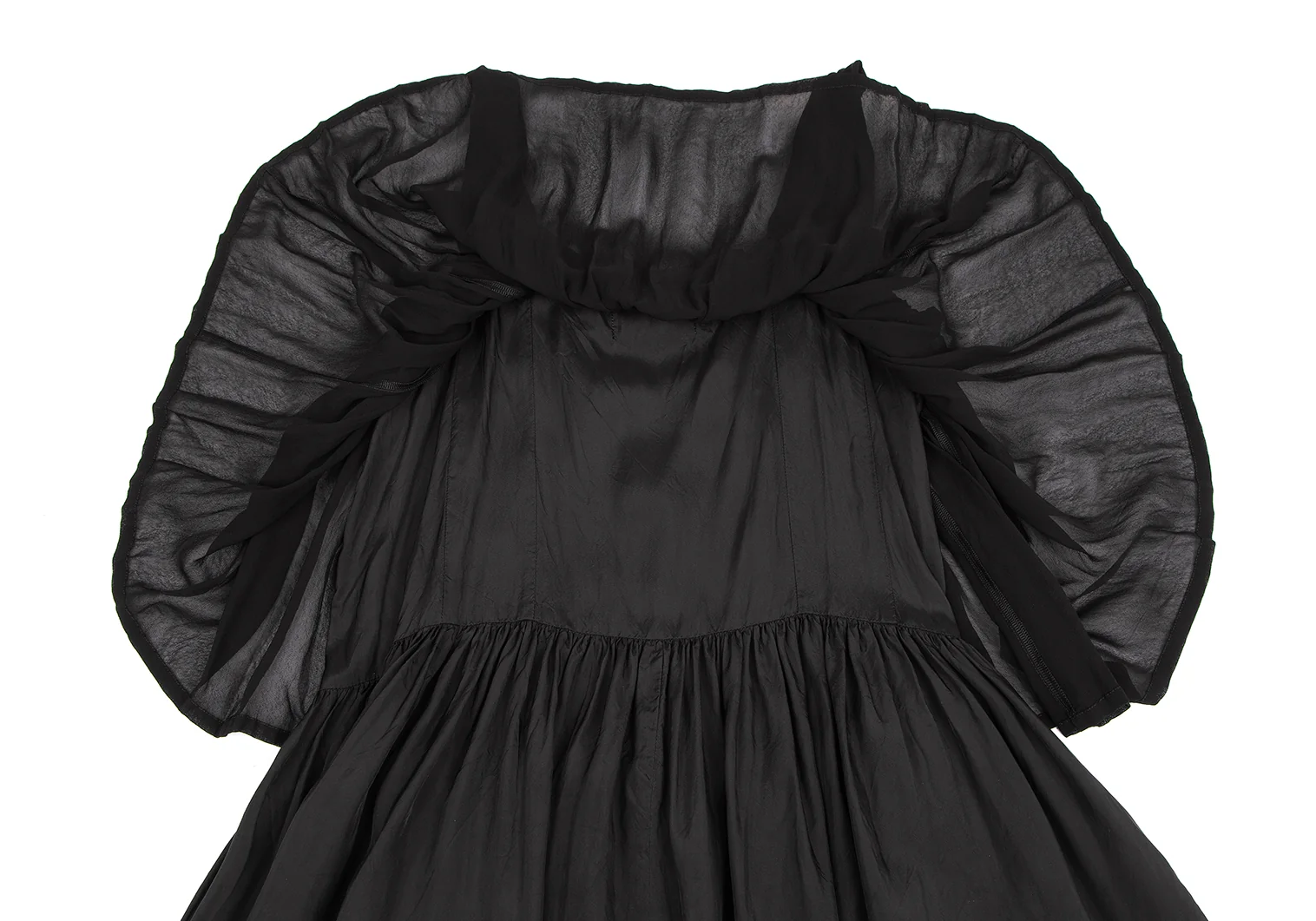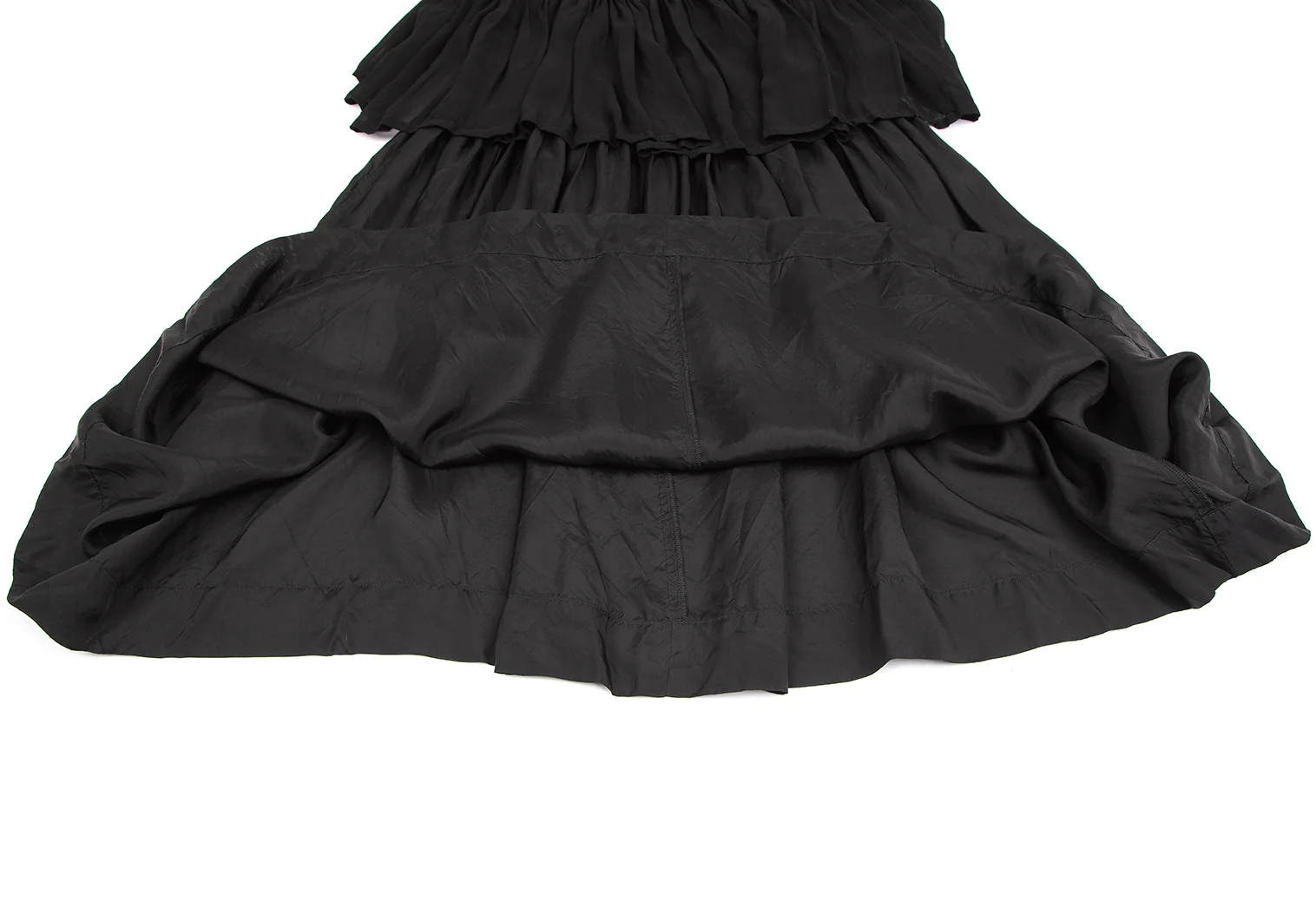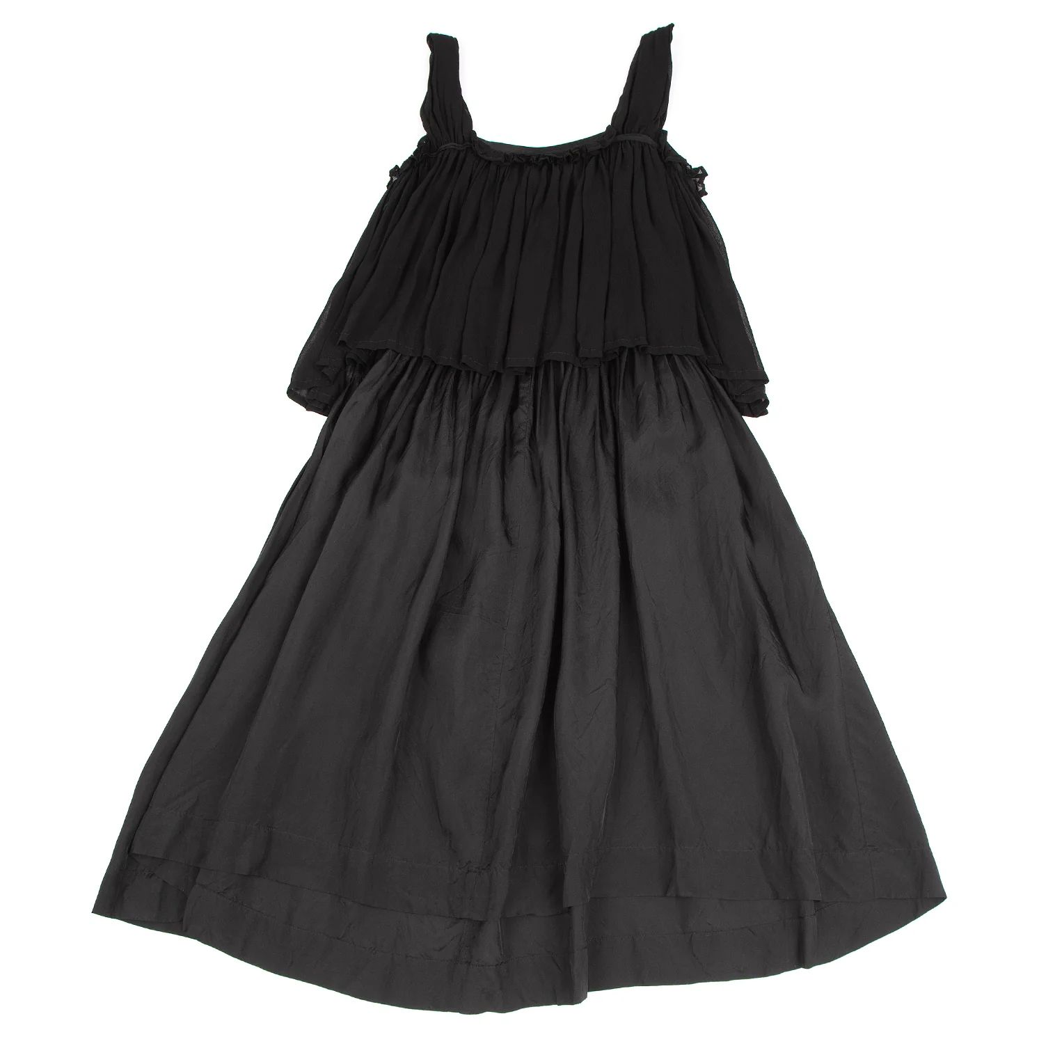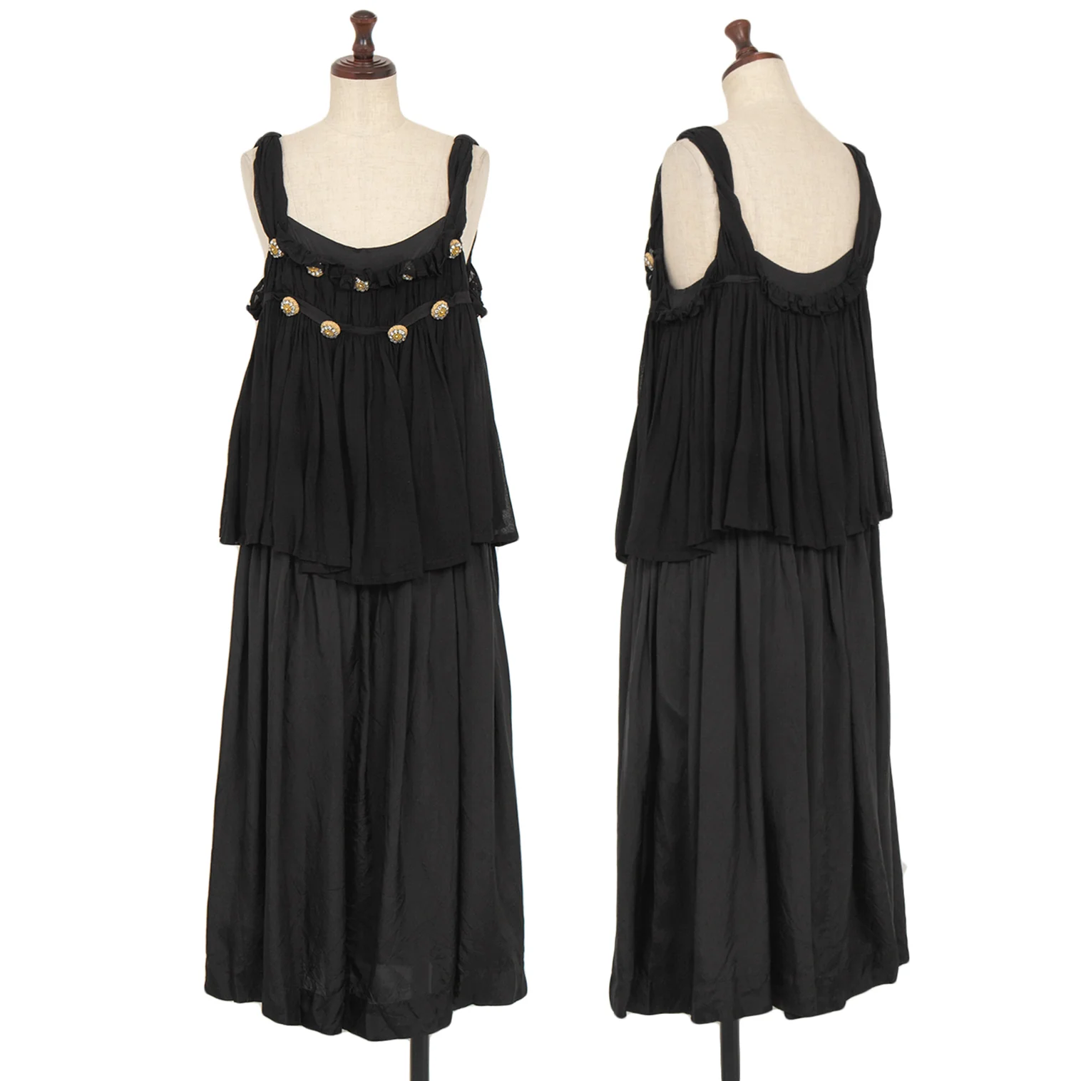 トリココムデギャルソンtricot COMME des GARCONS染めボタン装飾レイヤードシワプリーツキュプラワンピース 黒M