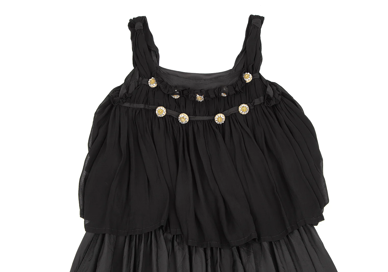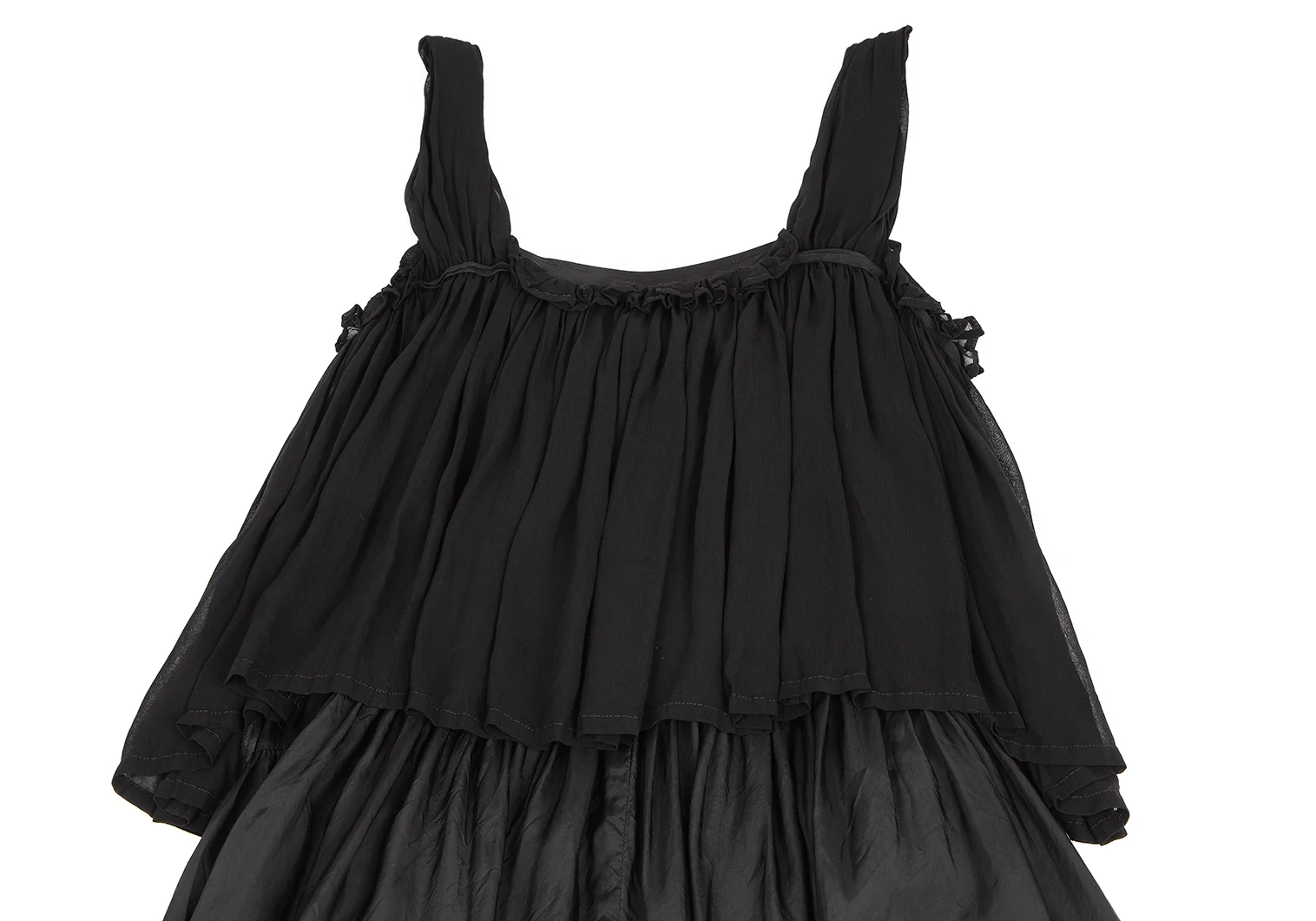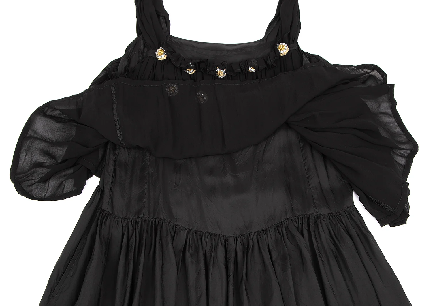 トリココムデギャルソンtricot COMME des GARCONS染めボタン装飾レイヤードシワプリーツキュプラワンピース 黒M