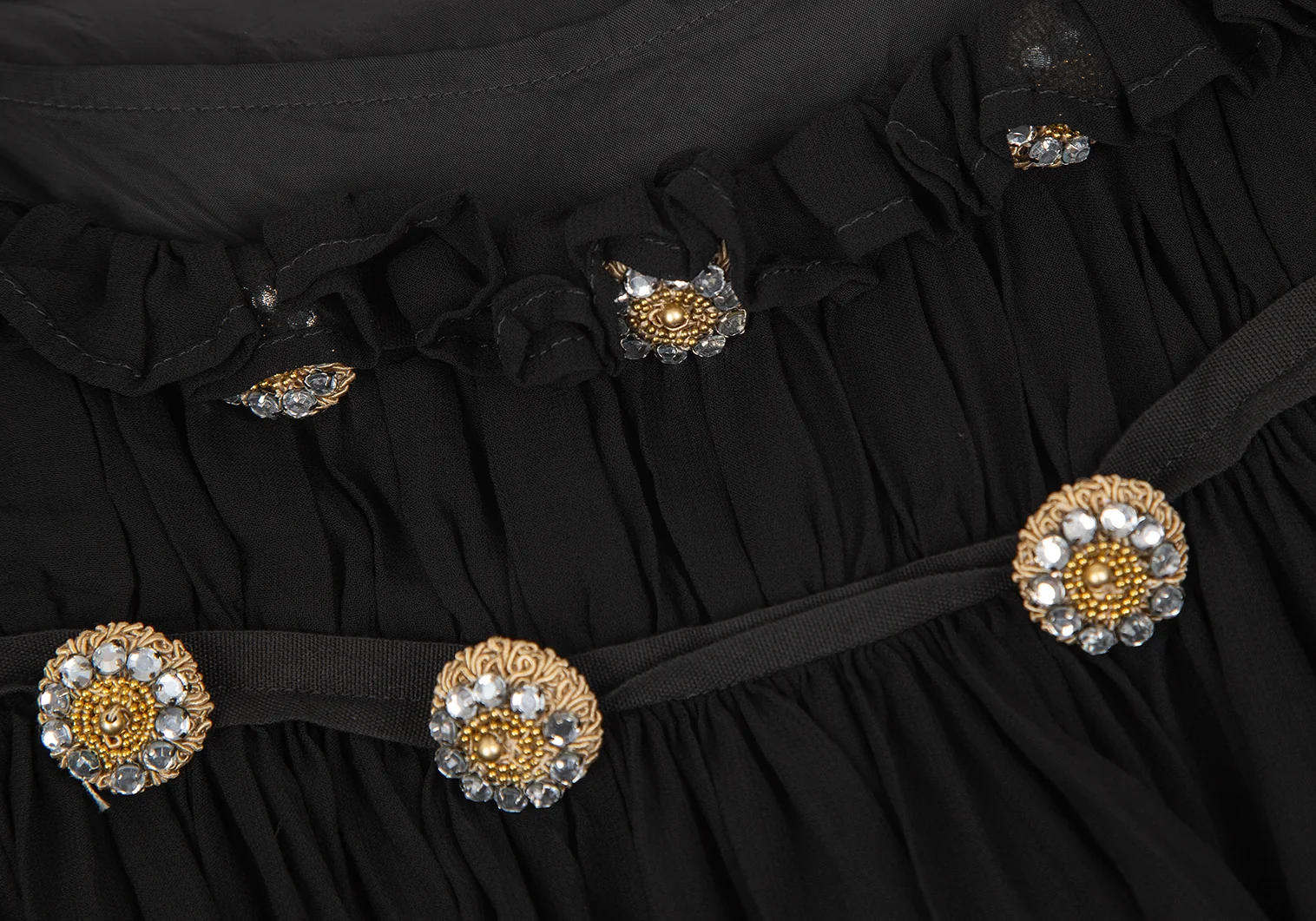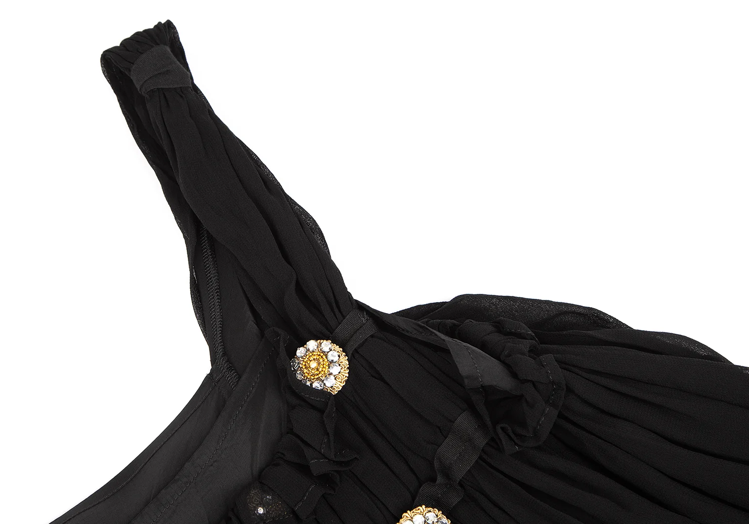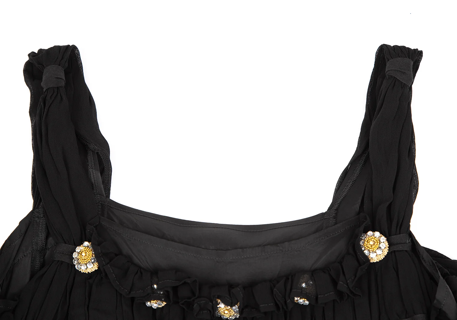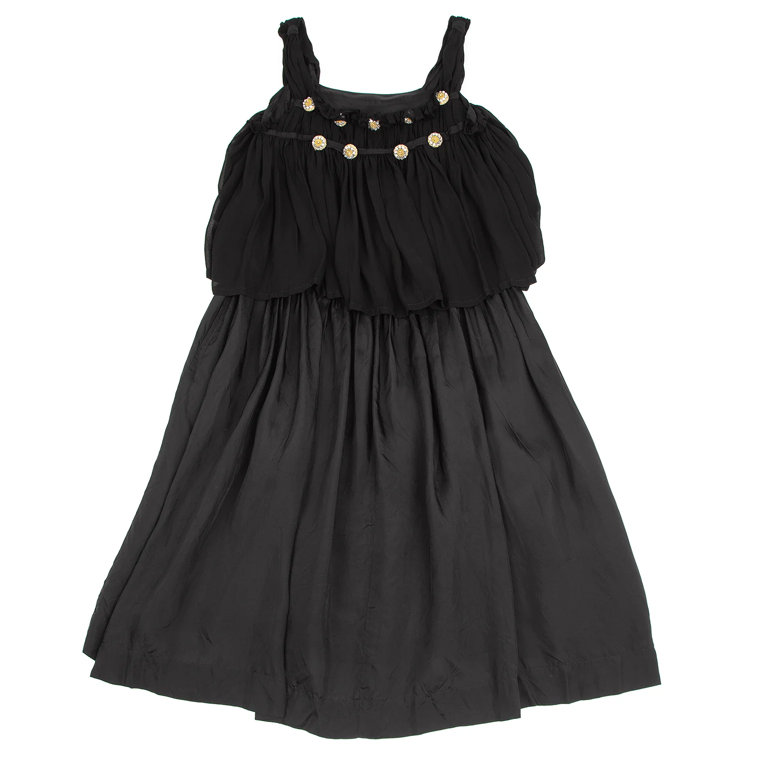 トリココムデギャルソンtricot COMME des GARCONS染めボタン装飾レイヤードシワプリーツキュプラワンピース 黒M