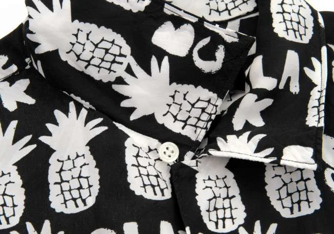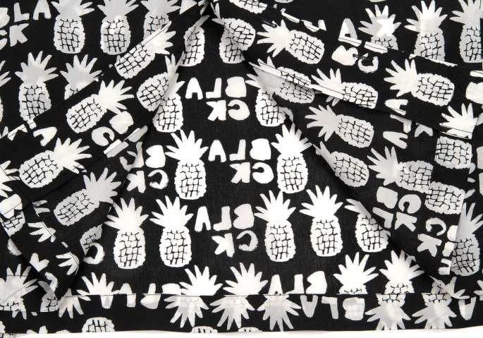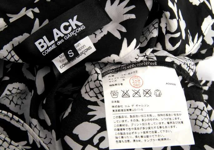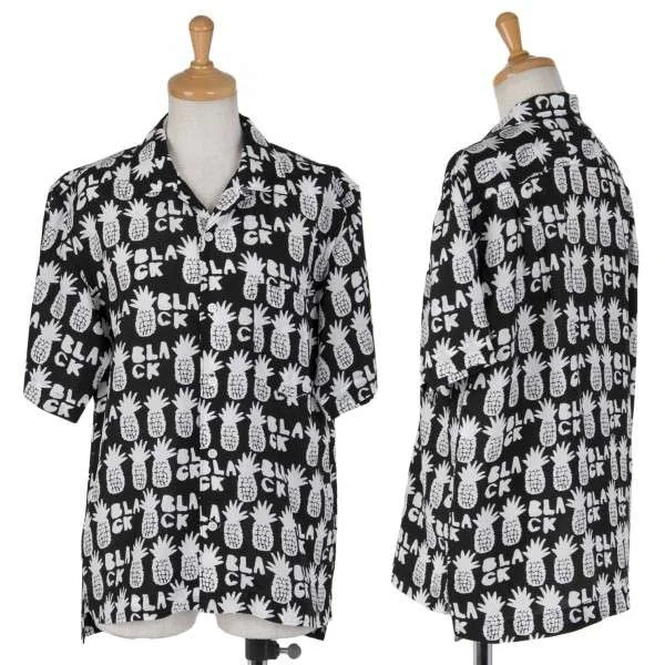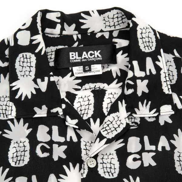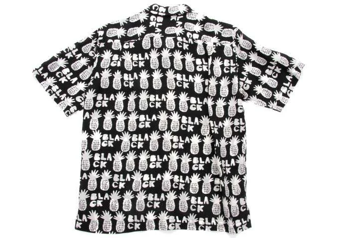 ブラックコムデギャルソンBLACK COMME des GARCONS パイナップル柄アロハキュプラシャツ 白黒S