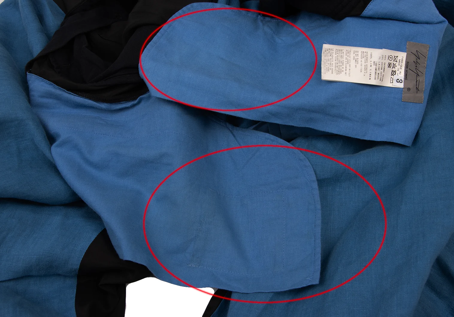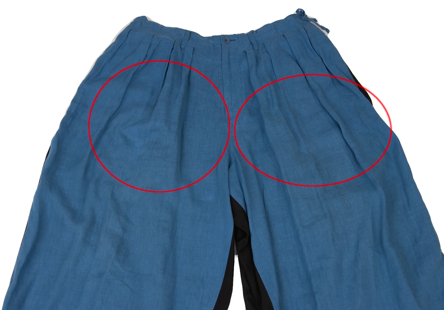 ヨウジヤマモト プールオムYohji Yamamoto POUR HOMME リネンレーヨンバイカラーバルーンカラスパンツ 青黒3
