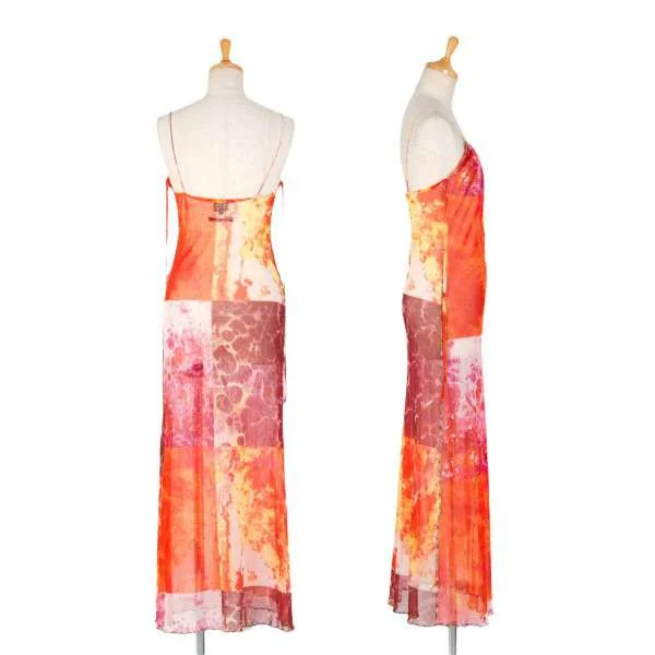 ジャンポールゴルチエファムJean Paul GAULTIER FEMME パワーネットプリントキャミワンピース オレンジ40