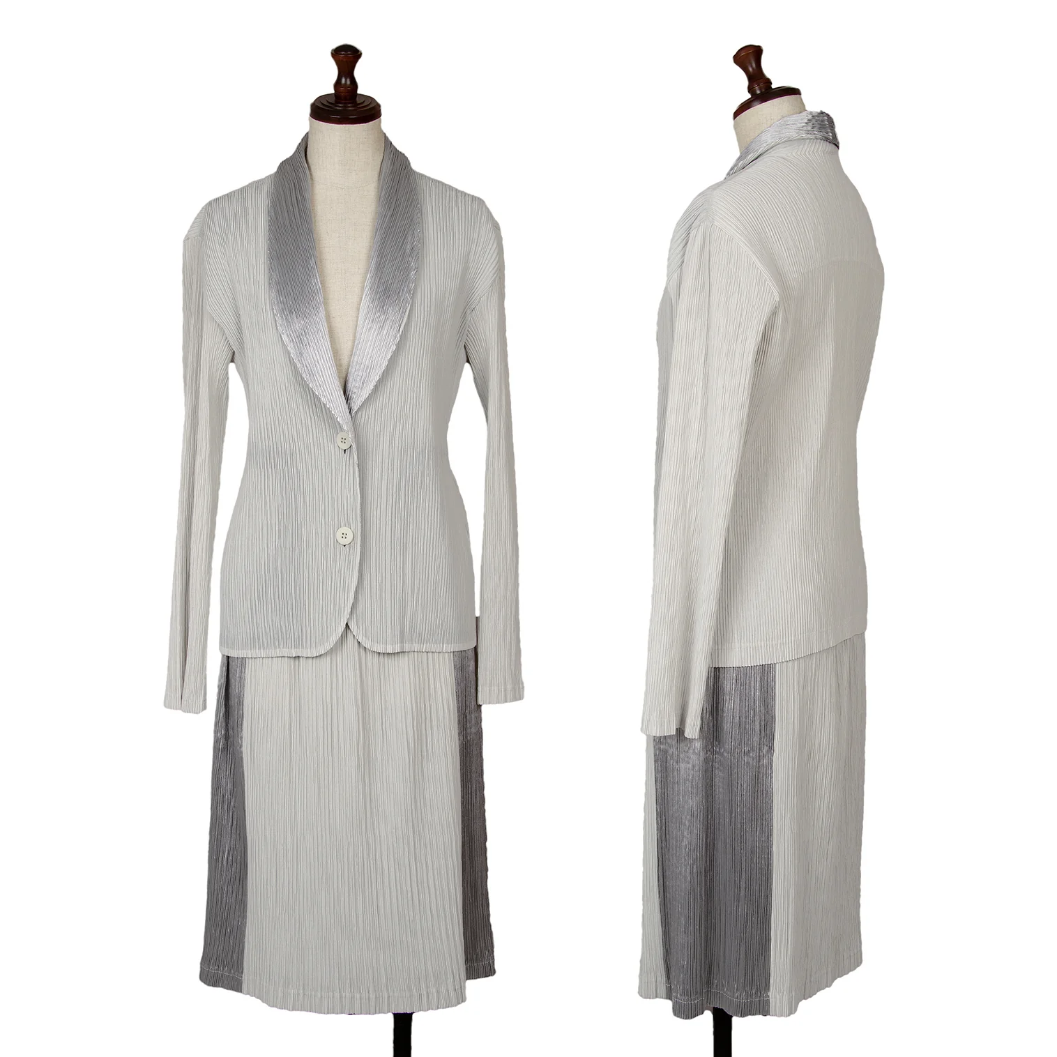 イッセイミヤケISSEY MIYAKE メタリック切替セットアップスーツ シルバーグレー2