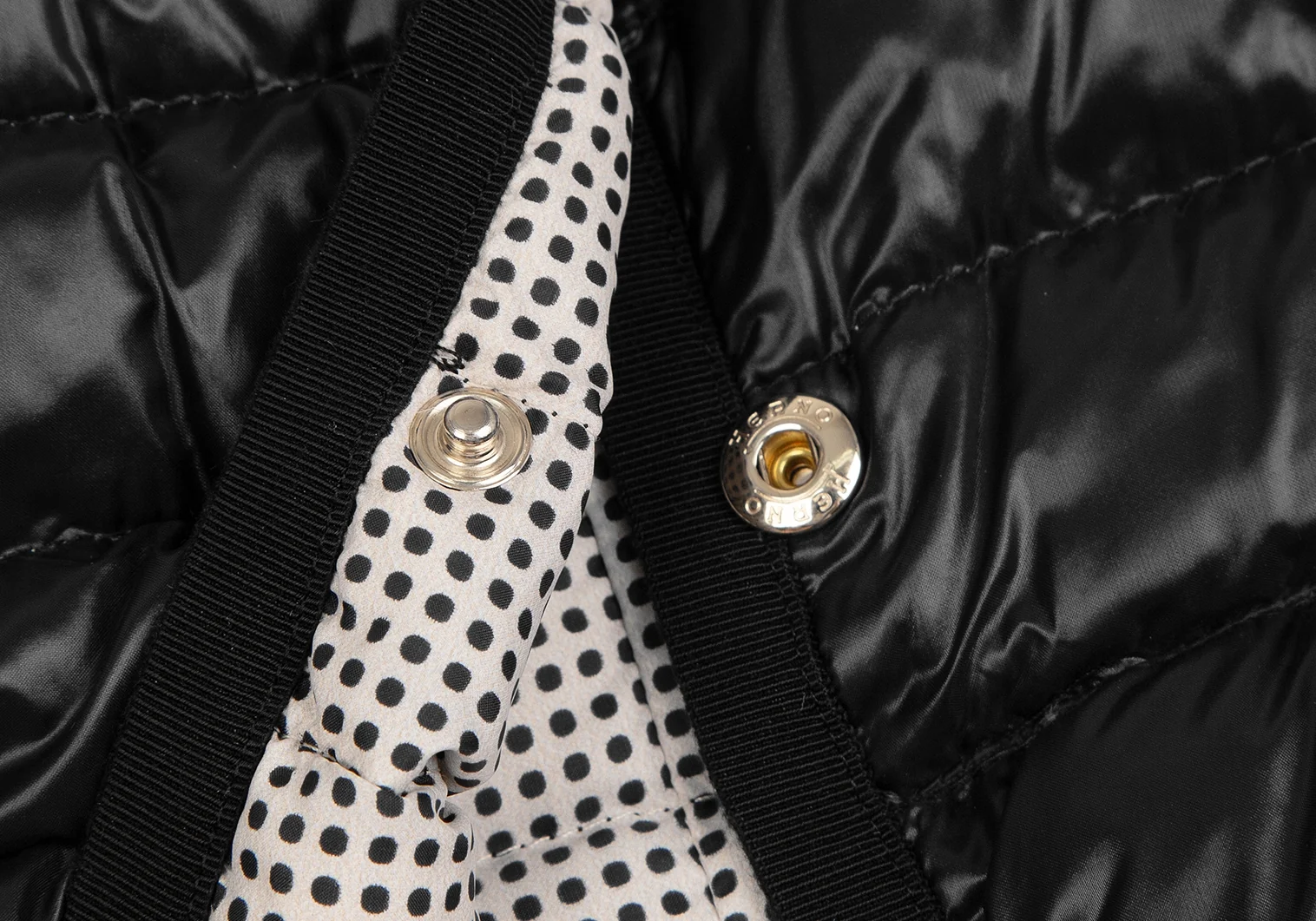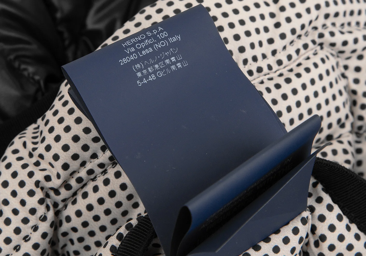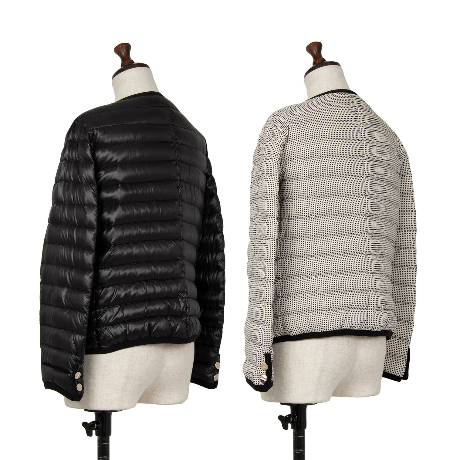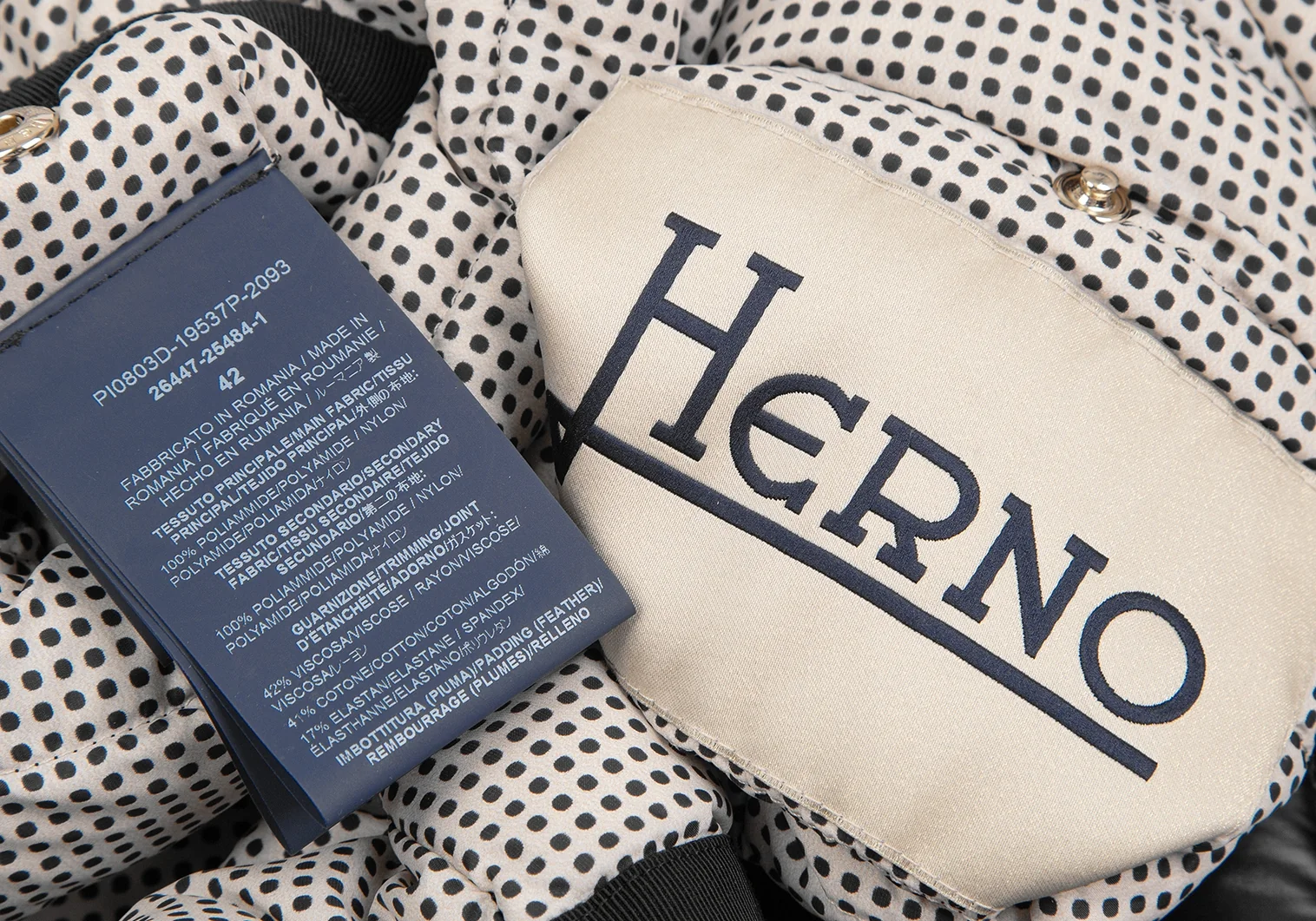 ヘルノHERNO ピンドットリバーシブルノーカラーダウンジャケット 黒42
