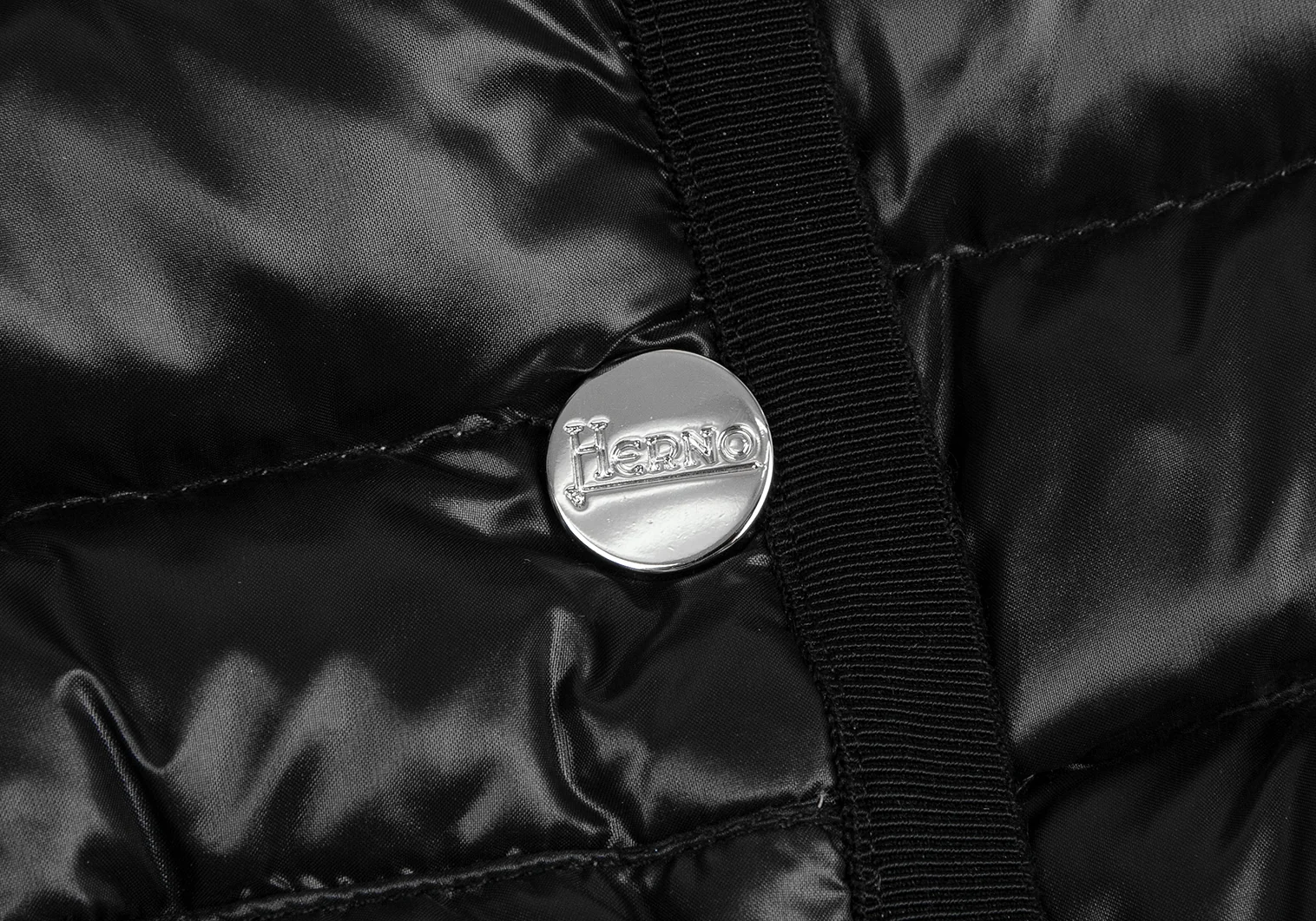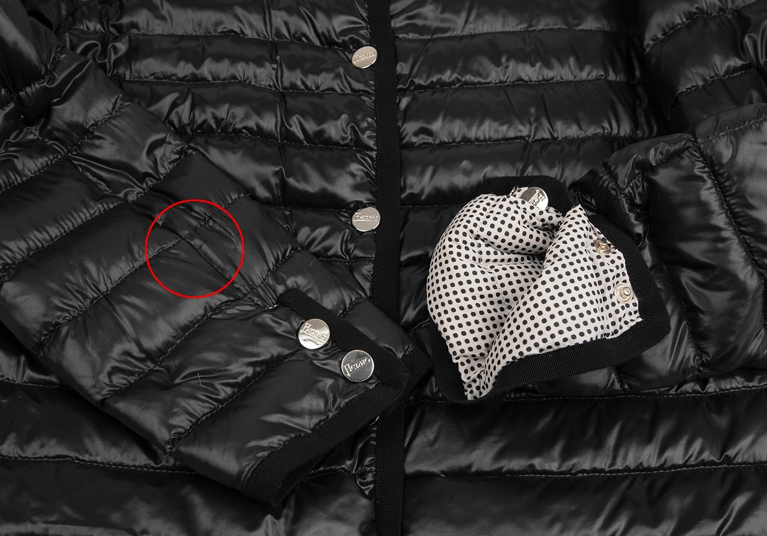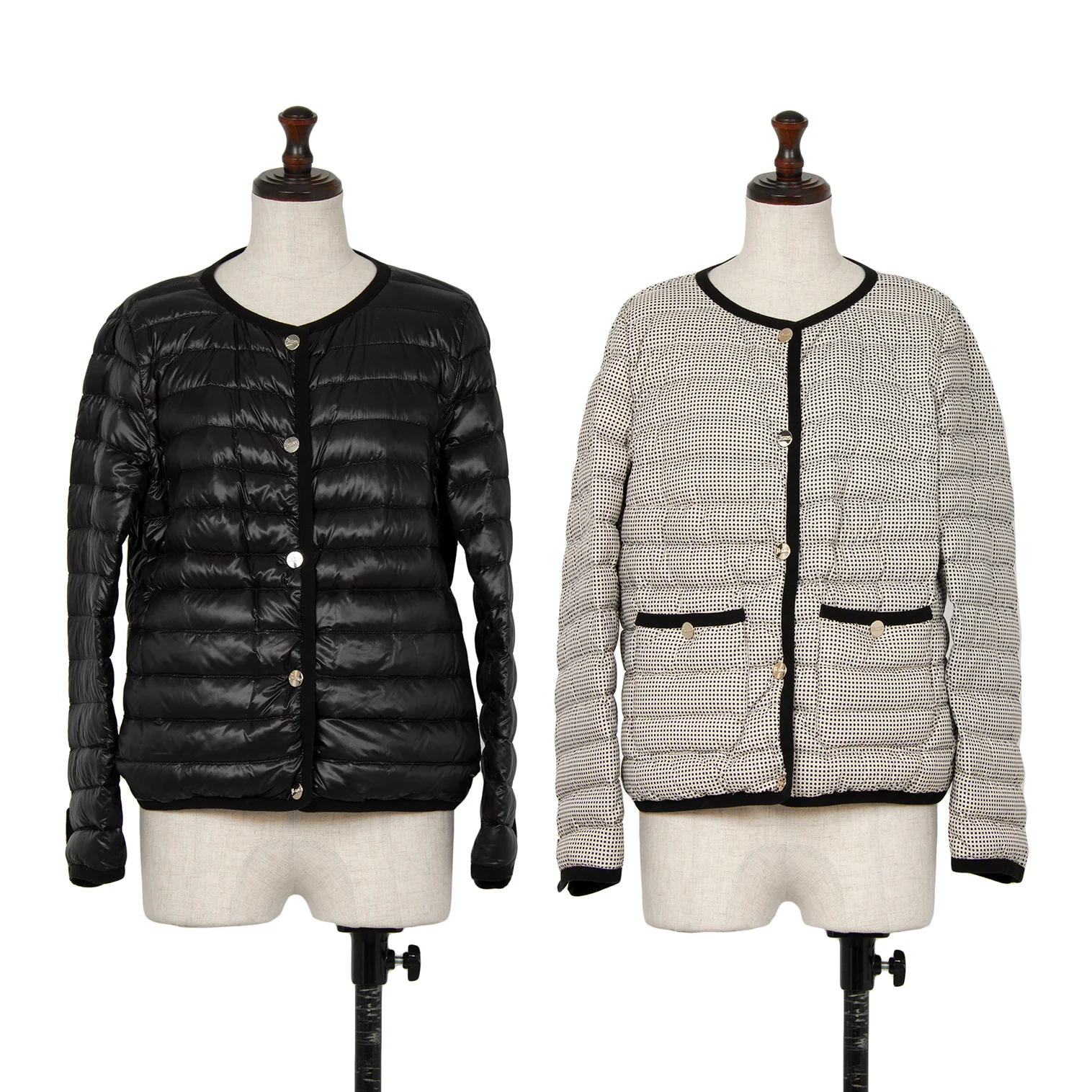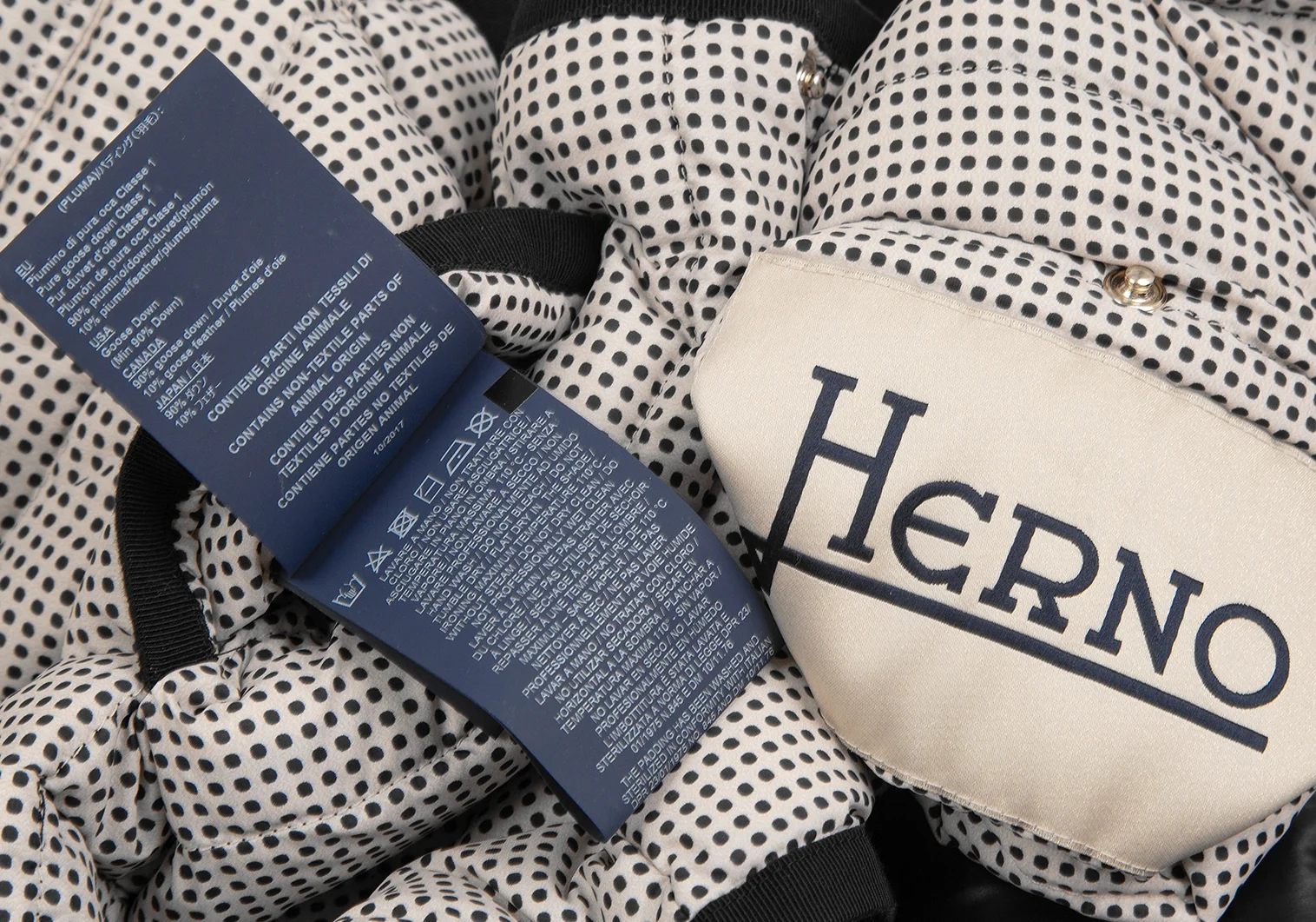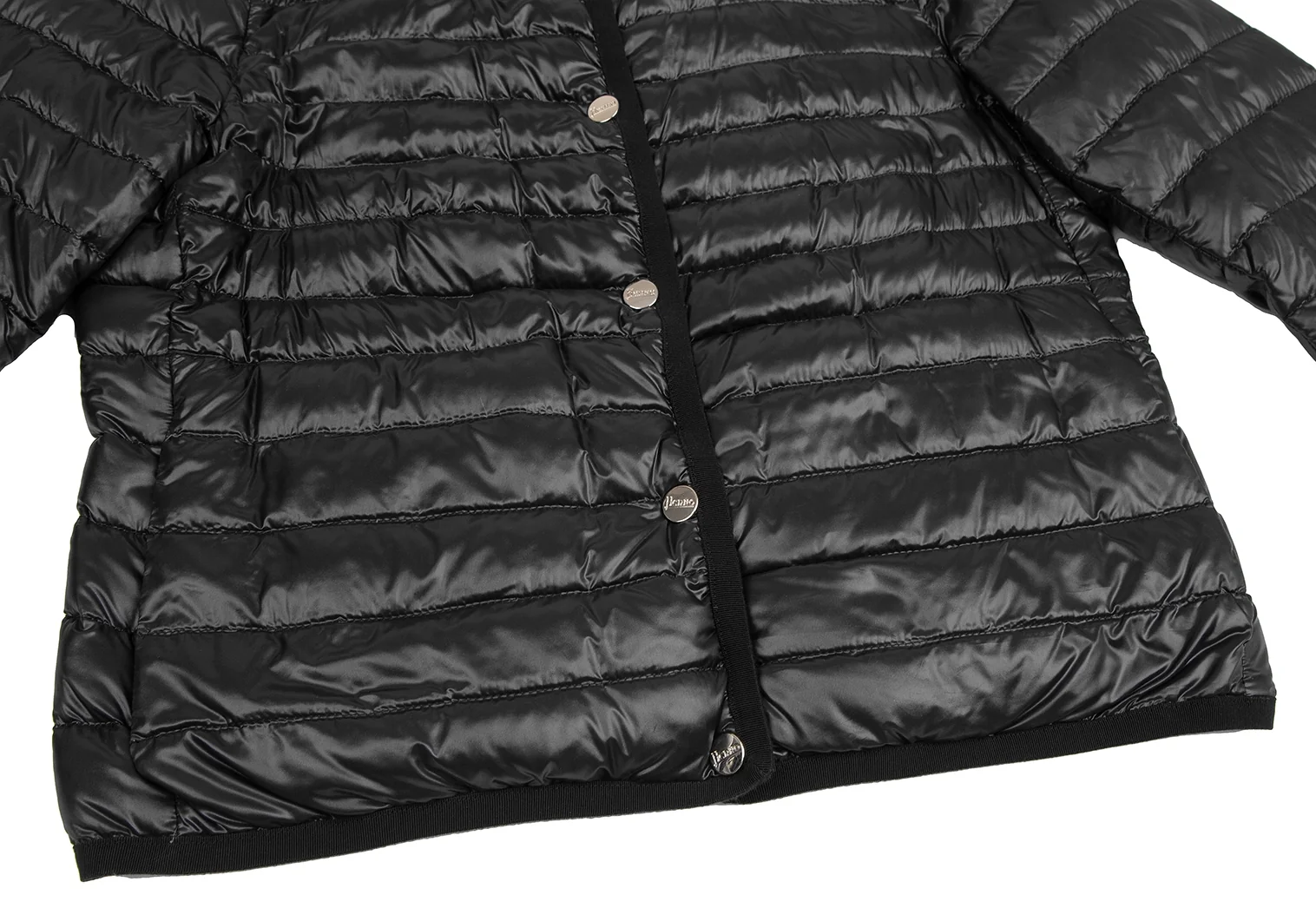 ヘルノHERNO ピンドットリバーシブルノーカラーダウンジャケット 黒42