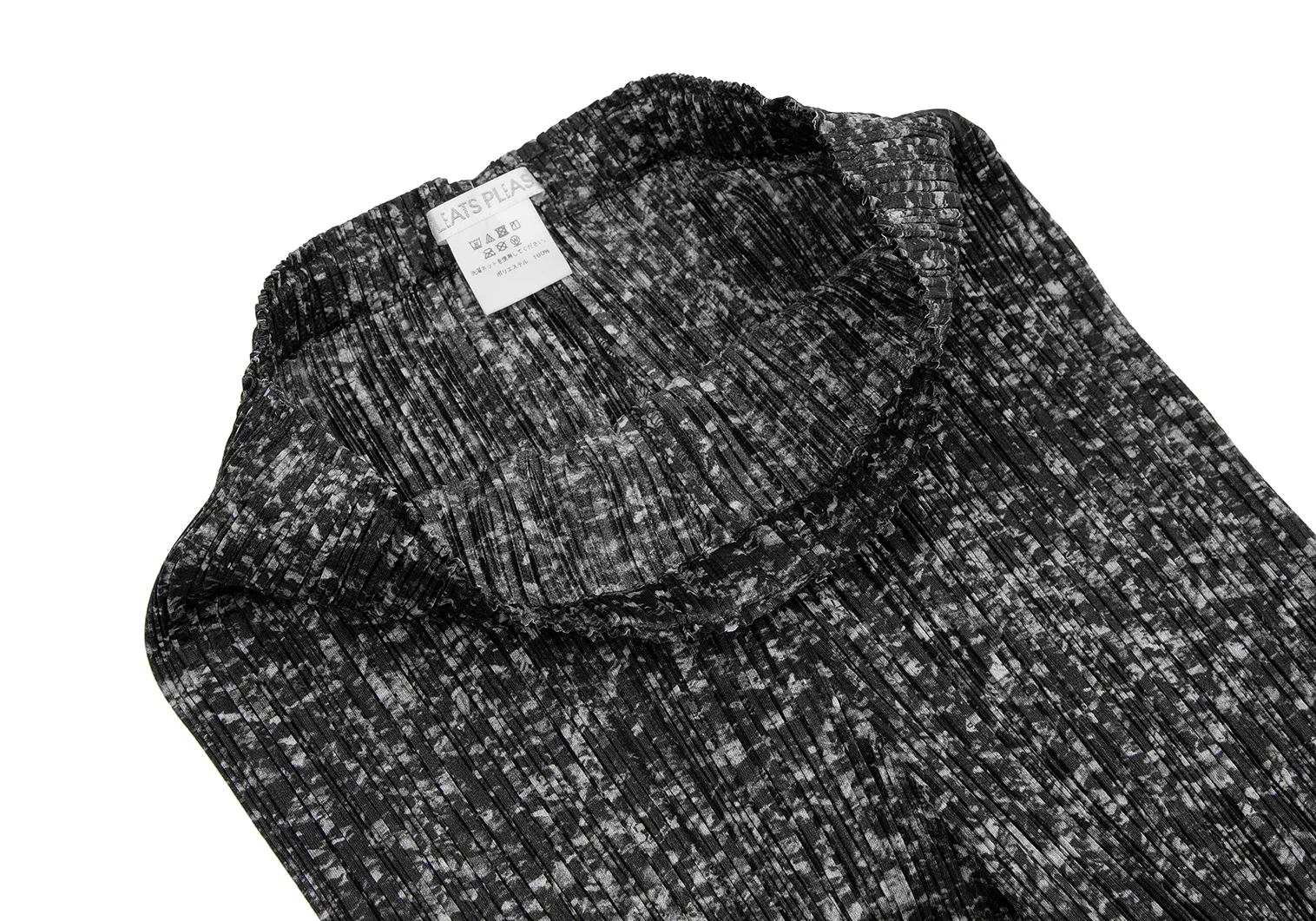 プリーツプリーズPLEATS PLEASE まだらプリントプリーツセットアップスーツ 黒グレー2