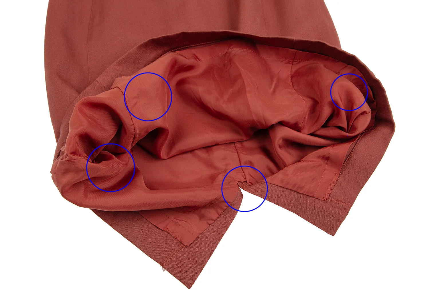 裏地に変色・擦れ、ベント裏にほつれがあります。(写真参照)その他目立ったシミ、汚れ、ほつれ等なくいい状態です。クリーニング済み