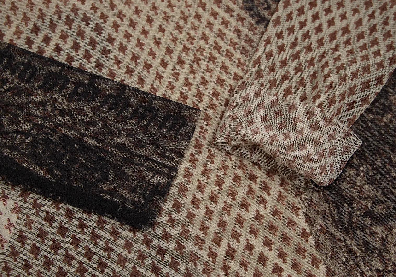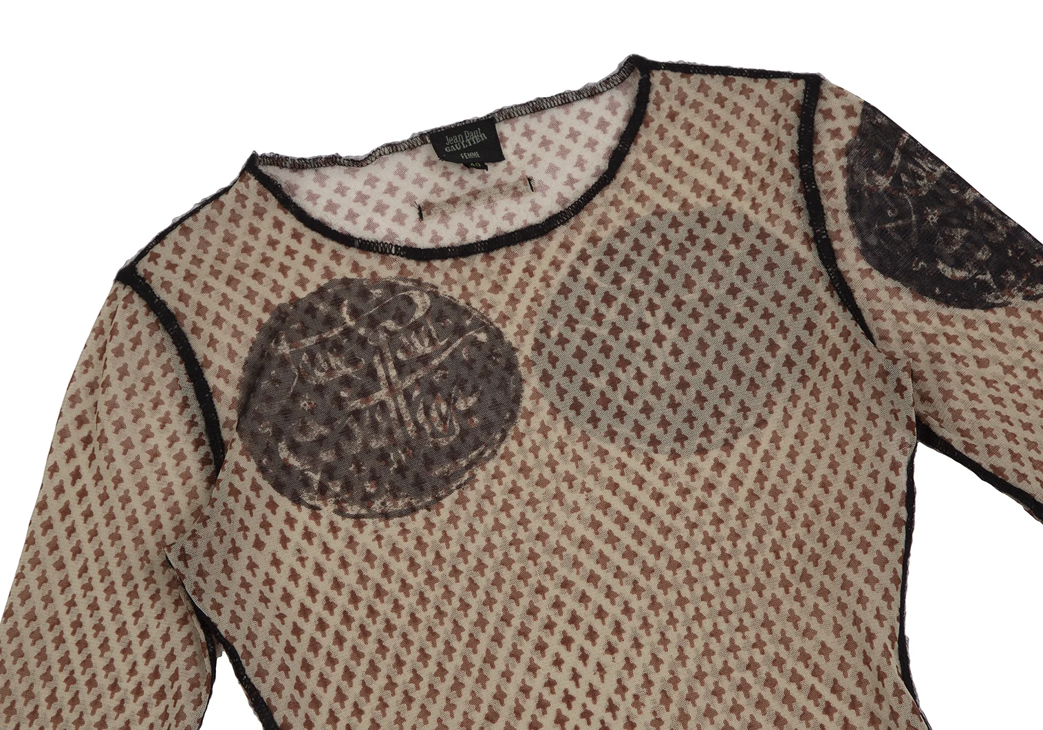 ジャンポールゴルチエ ファムJean Paul GAULTIER FEMME 総柄プリントパワーネットカットソー ベージュ黒40