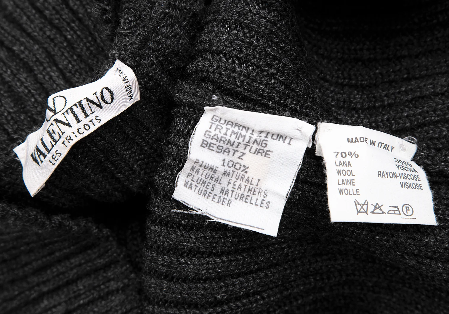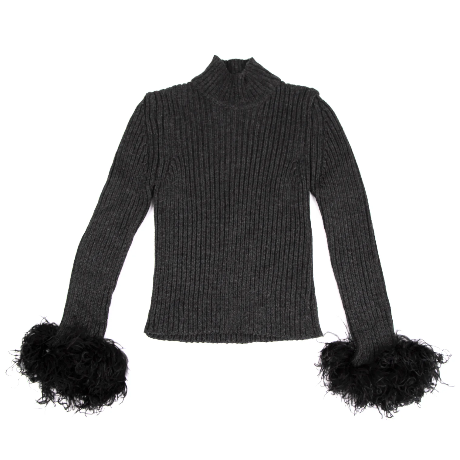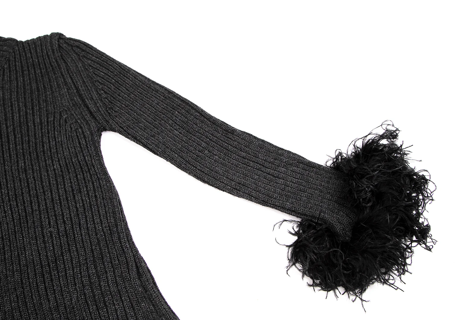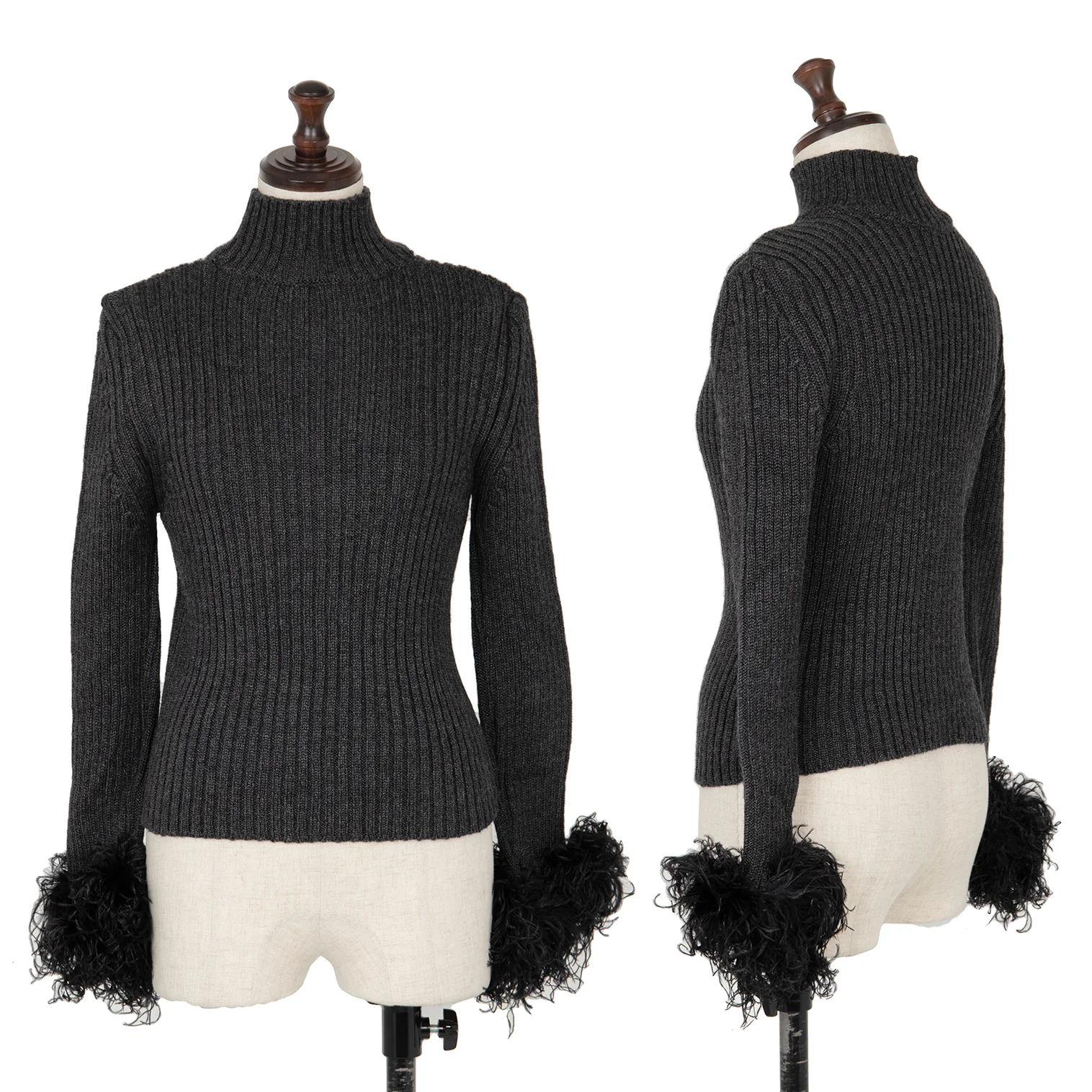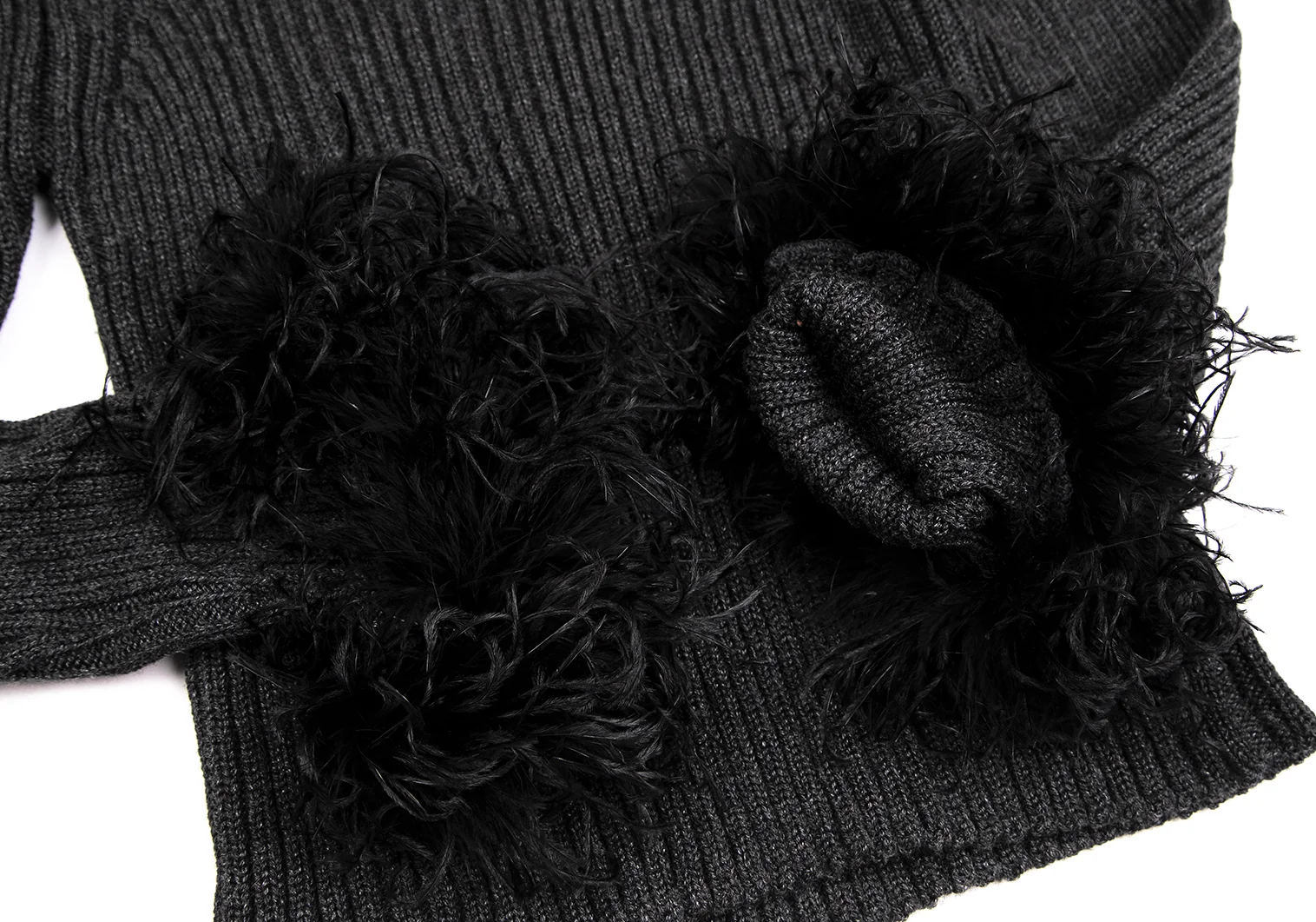 ヴァレンティノVALENTINO LES TRICOTS 袖ファー装飾ニットセーター チャコールグレーS位