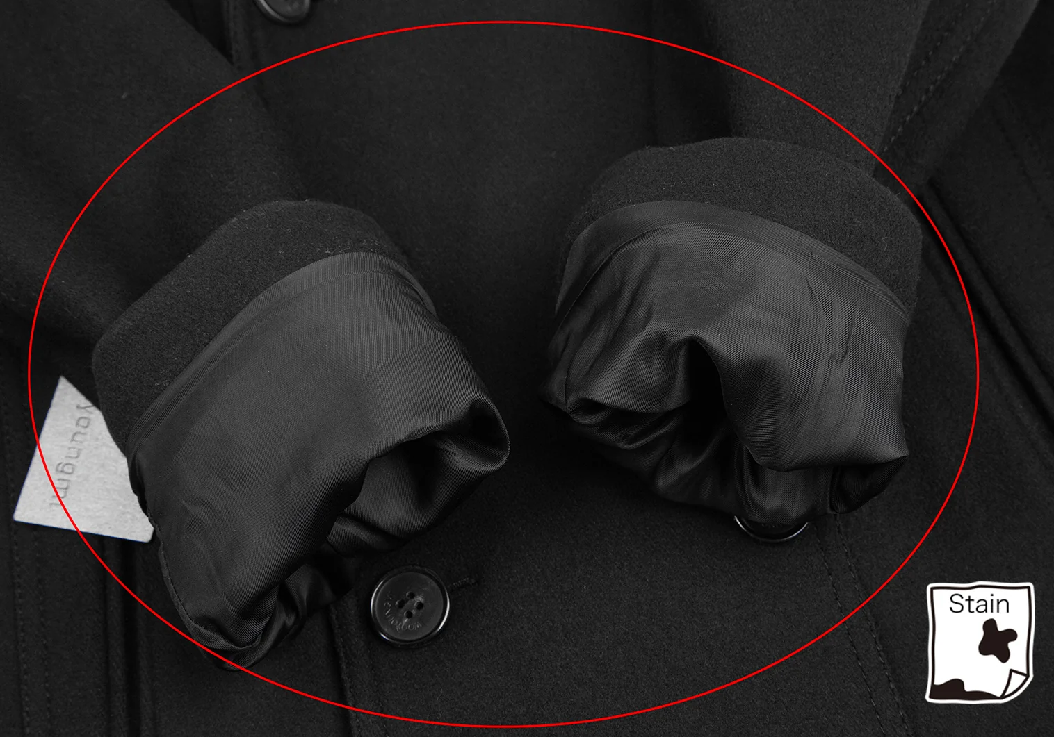 袖口に毛抜け、袖裏地に薄汚れ、裏地にシミ、脇裏にダメージがあります(写真参照)その他目立ったほつれ等なくいい状態です。クリーニング済み