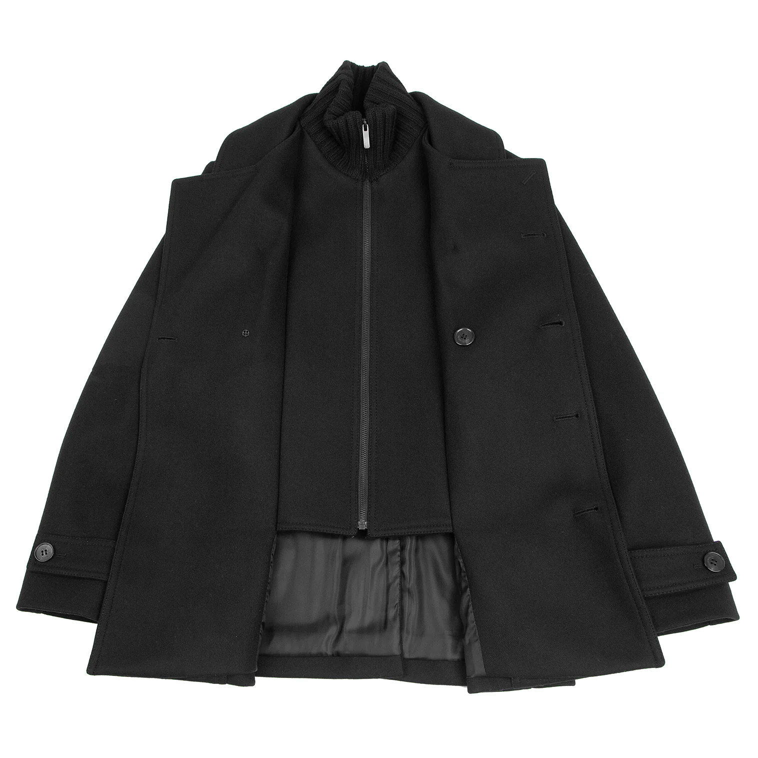 ウーヨンミWOOYOUNGMI レイヤードメルトンピーコート 黒44