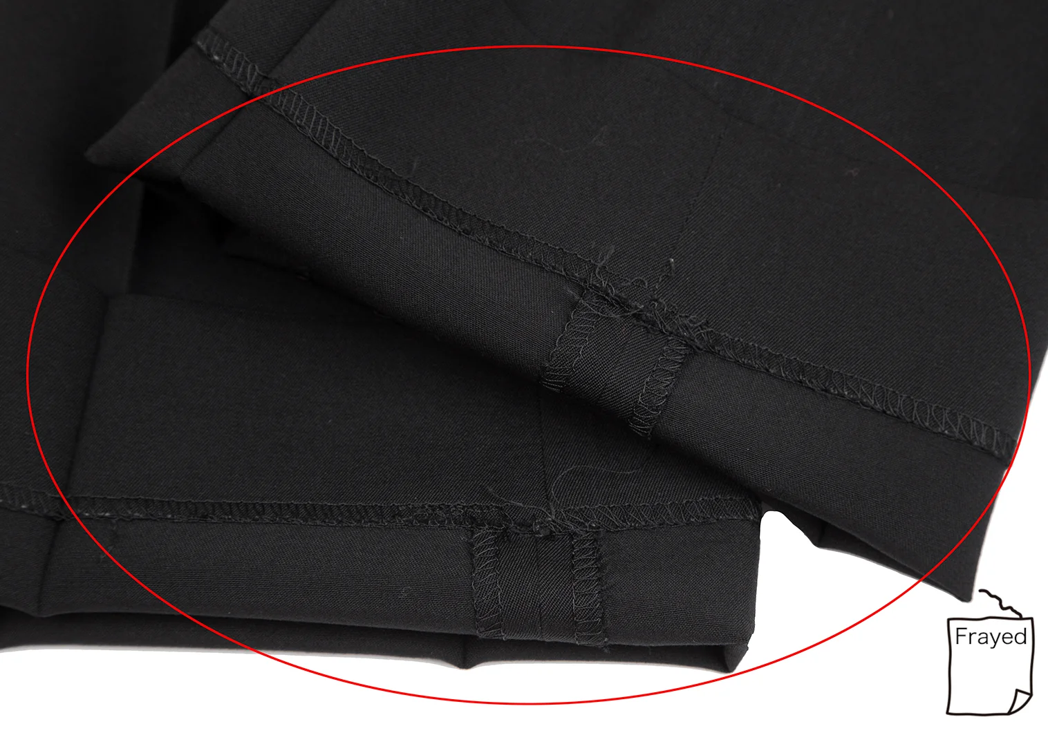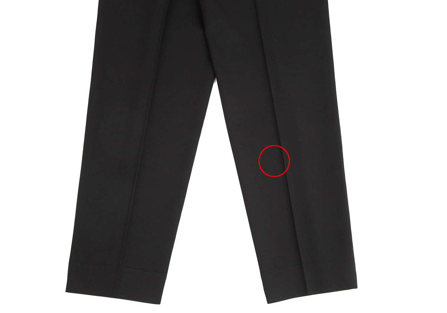 後ろ右足に若干ダメージ、裾裏ロックに解れがあります。(写真参照)その他目立ったシミ、汚れ、ほつれ等なくいい状態です。クリーニング済み