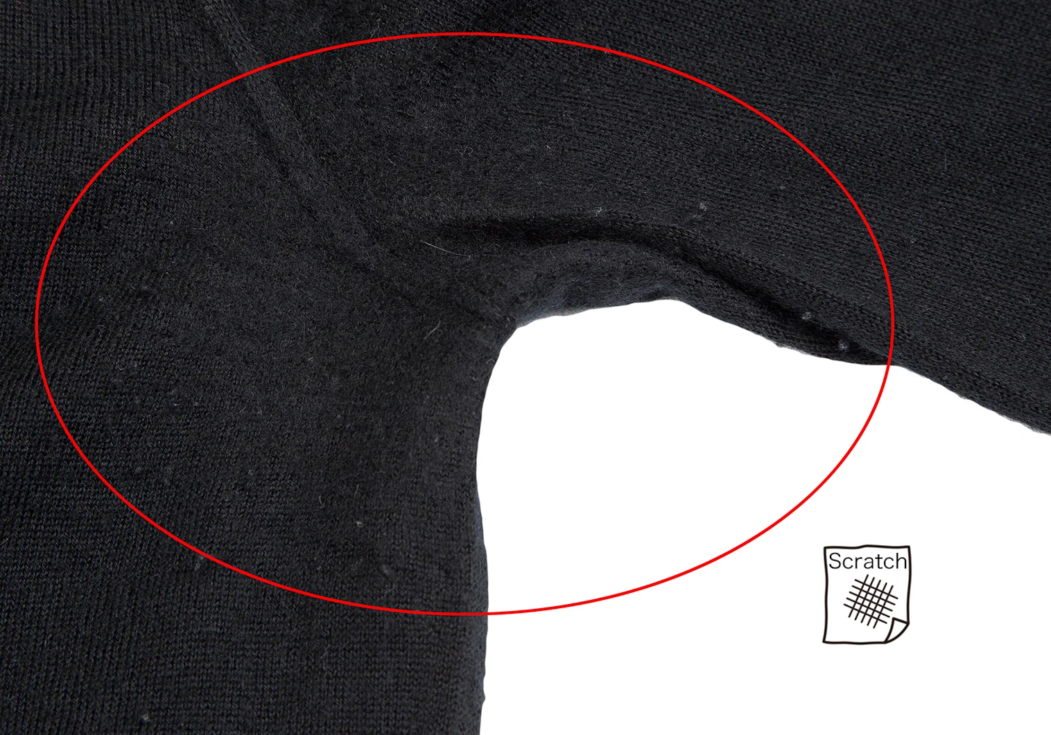 脇スレ、身頃に引っ掛けがあります(写真参照)その他目立ったシミ、汚れ等はありません。クリーニング済み