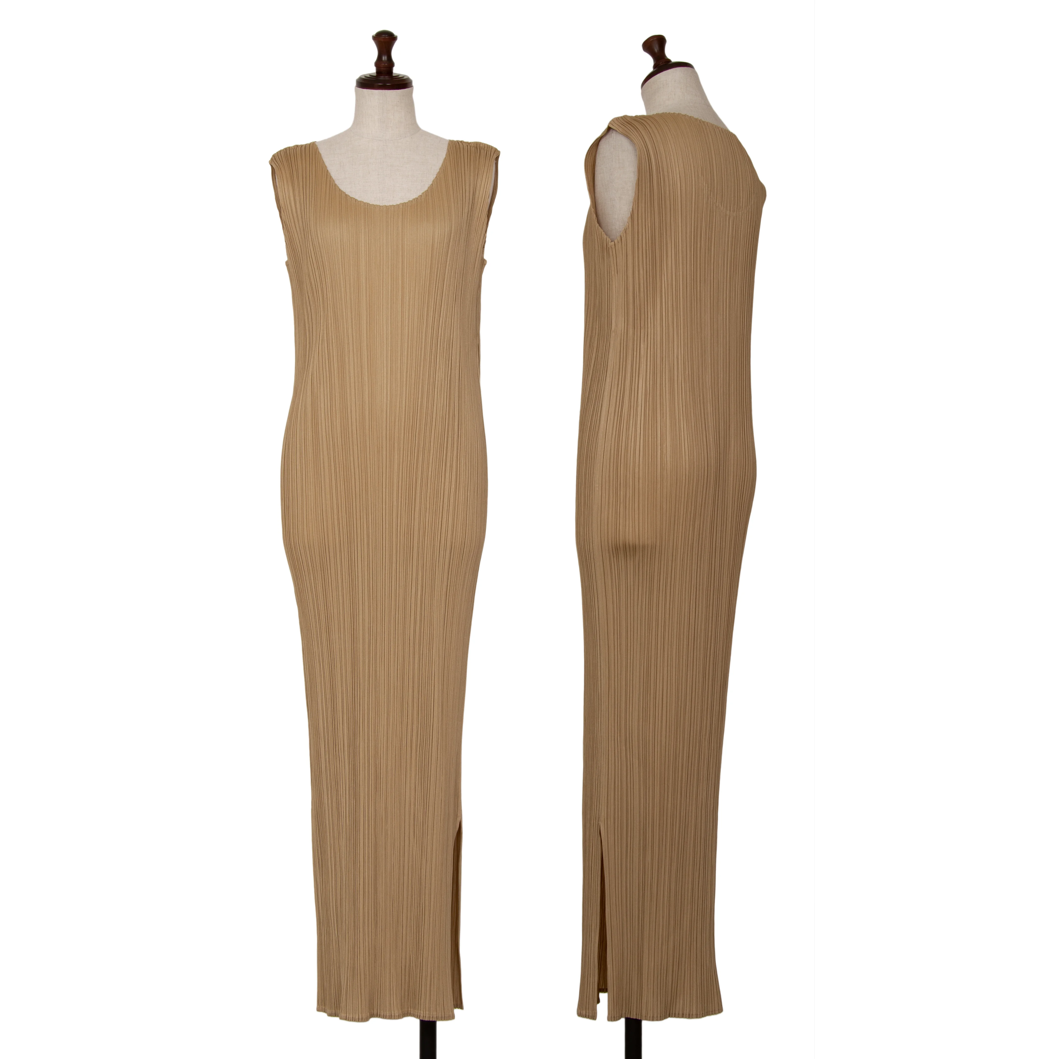 プリーツプリーズPLEATS PLEASE プリーツノースリーブマキシワンピース モカ3