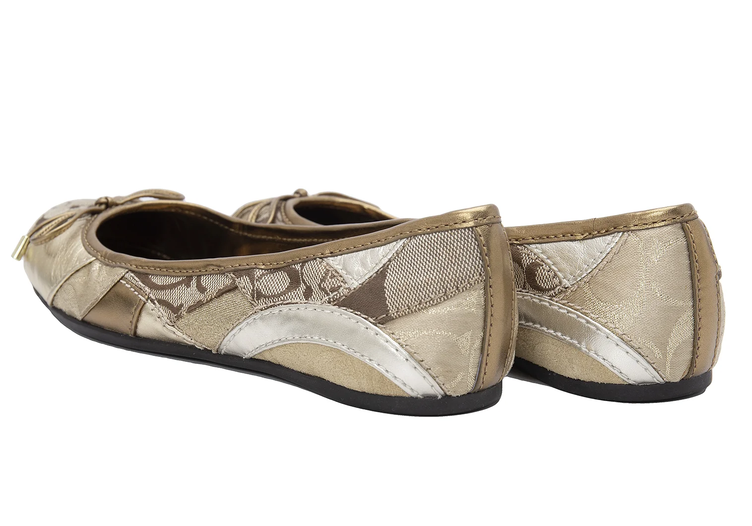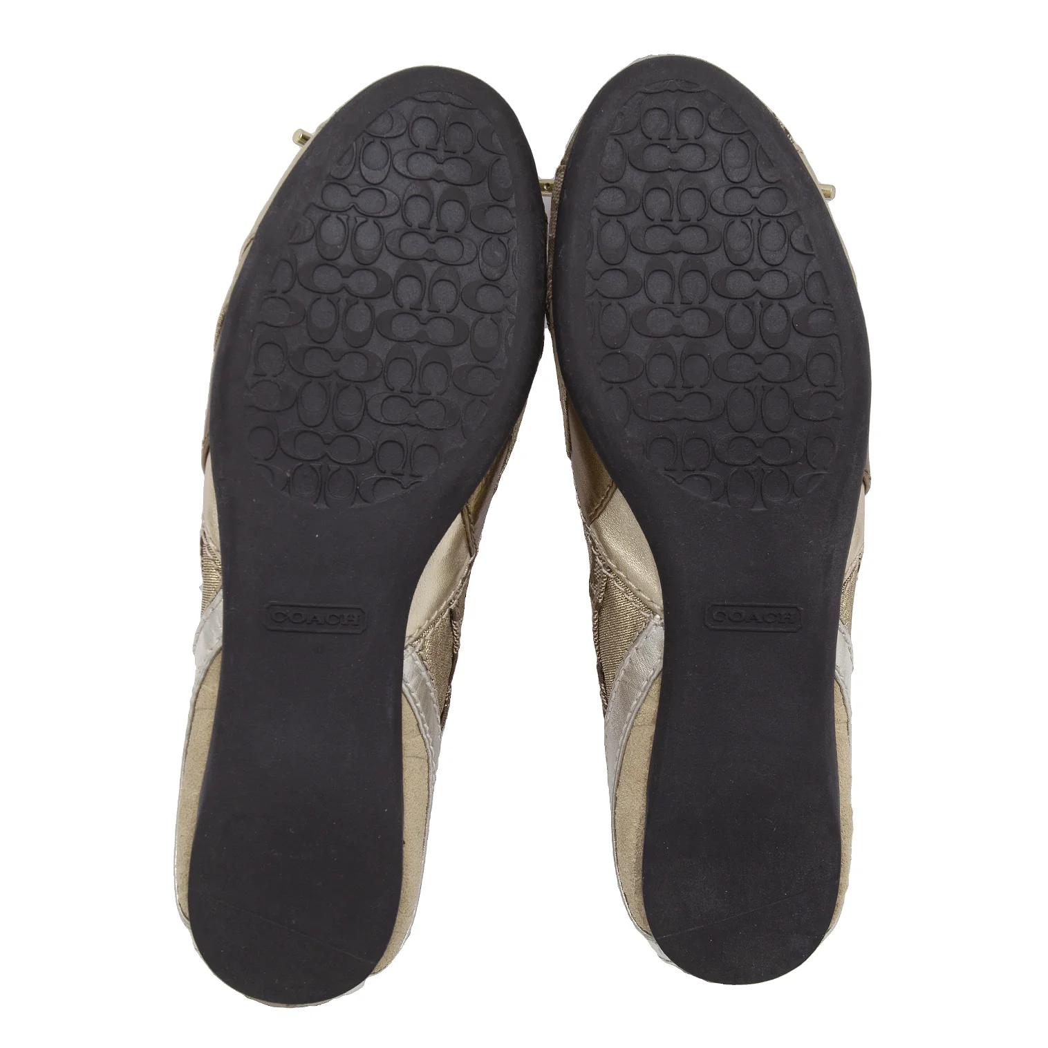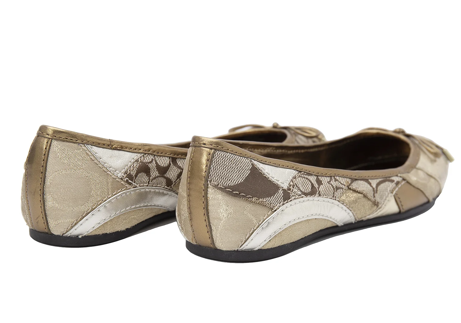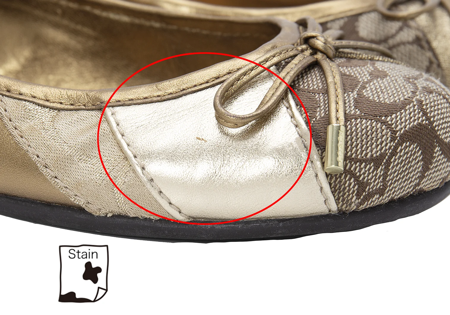 コーチCOACH シグネチャーパターン切り替えバレエシューズ ゴールド23cm位