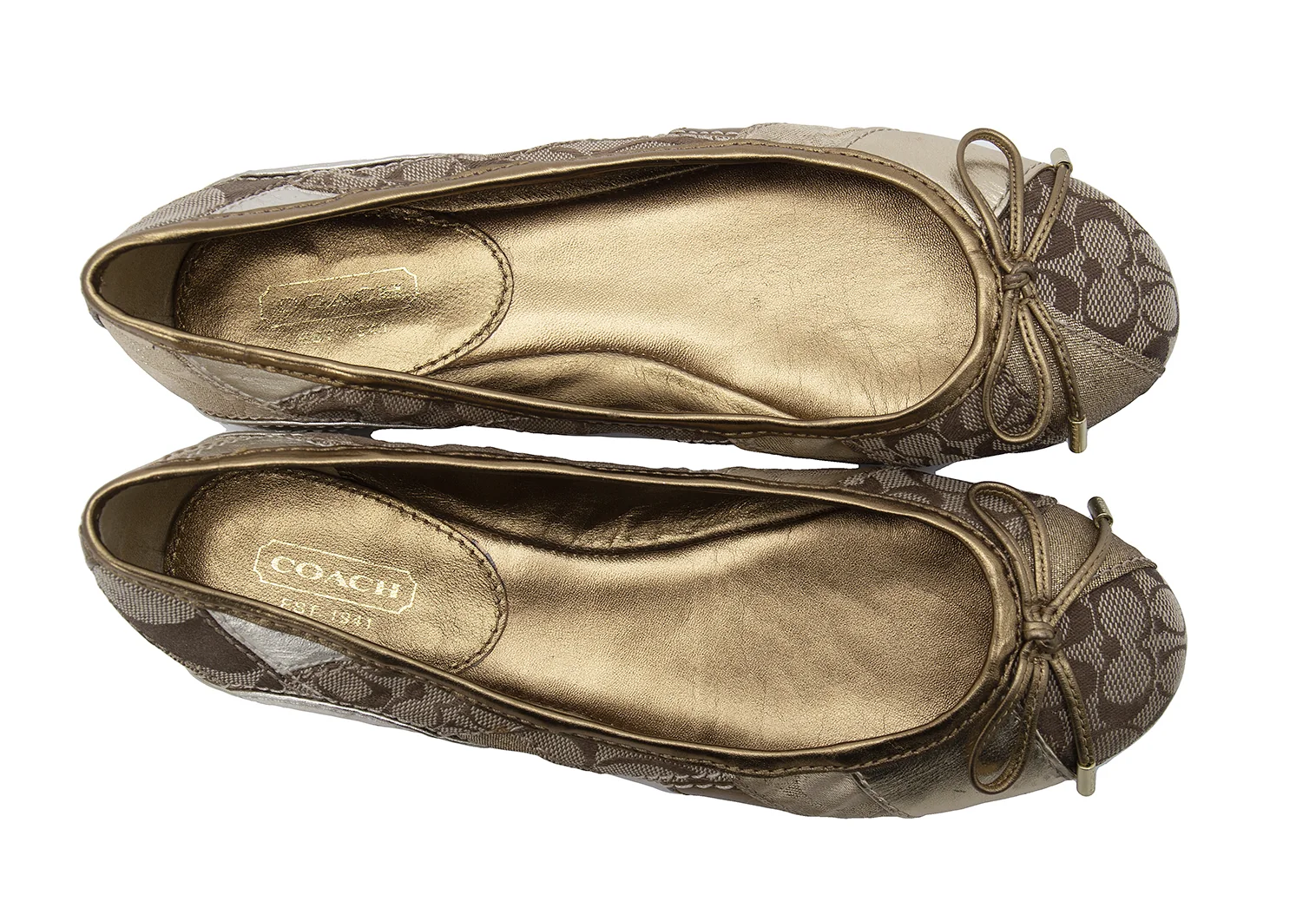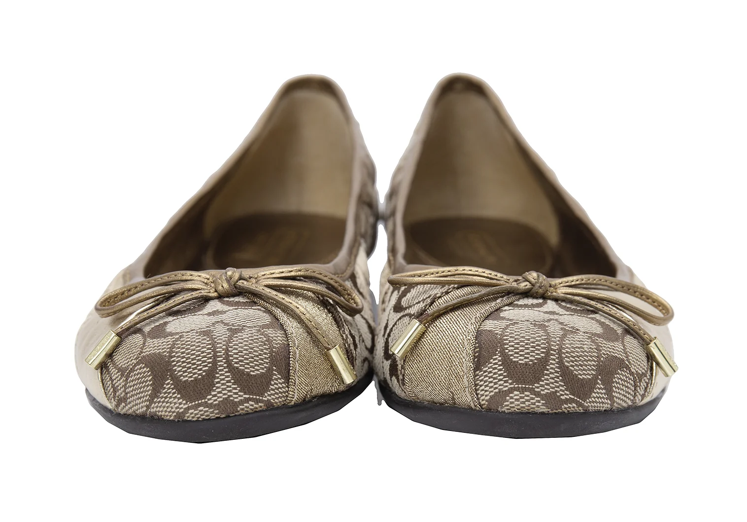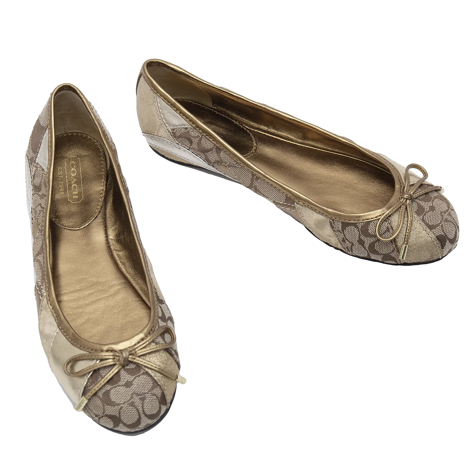 コーチCOACH シグネチャーパターン切り替えバレエシューズ ゴールド23cm位