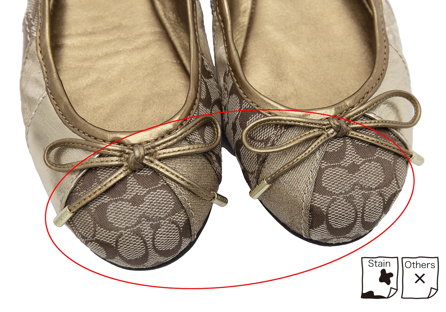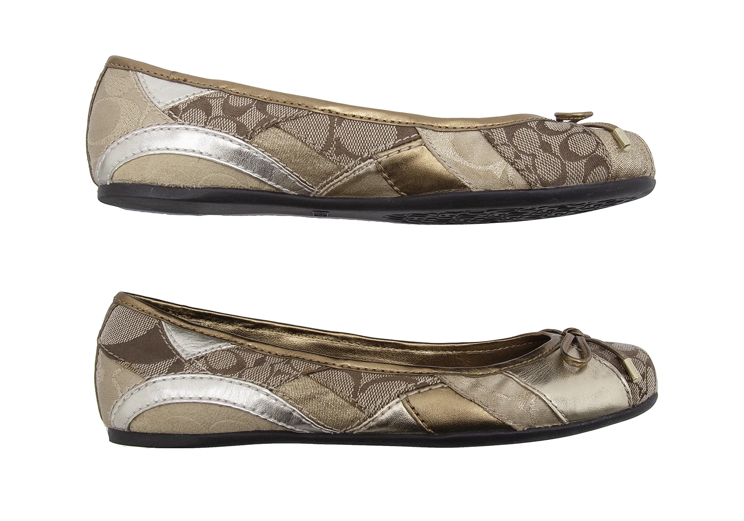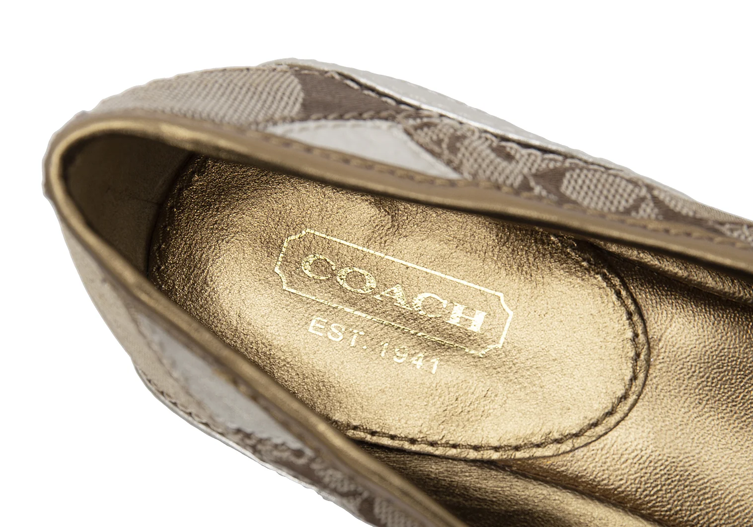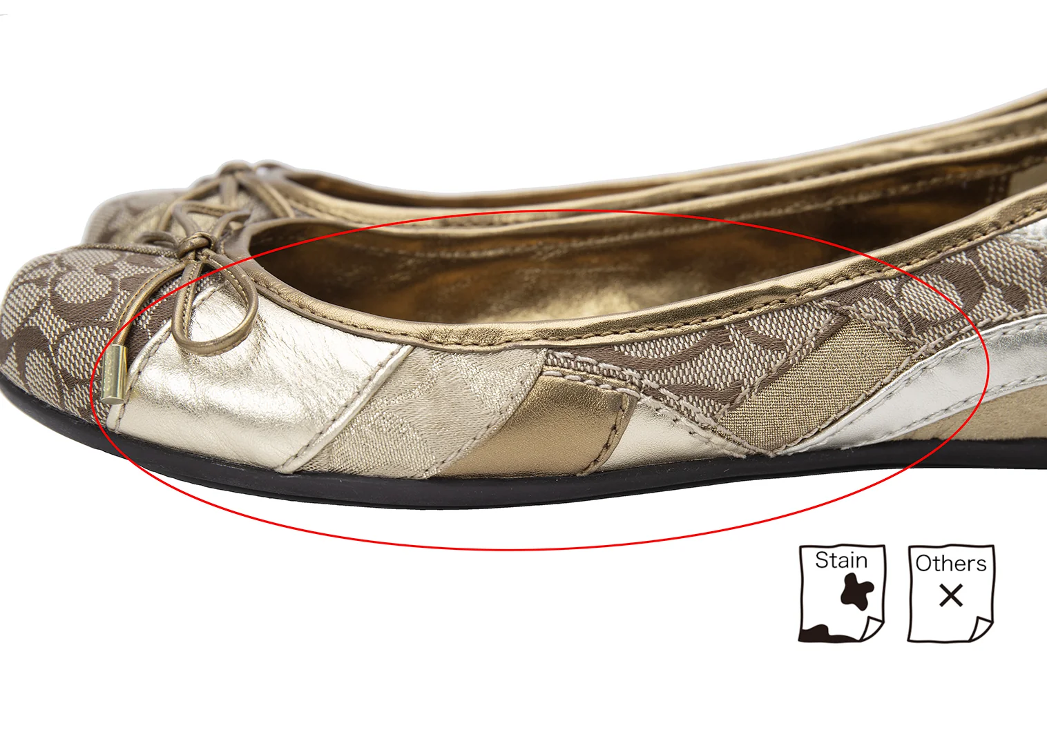 コーチCOACH シグネチャーパターン切り替えバレエシューズ ゴールド23cm位