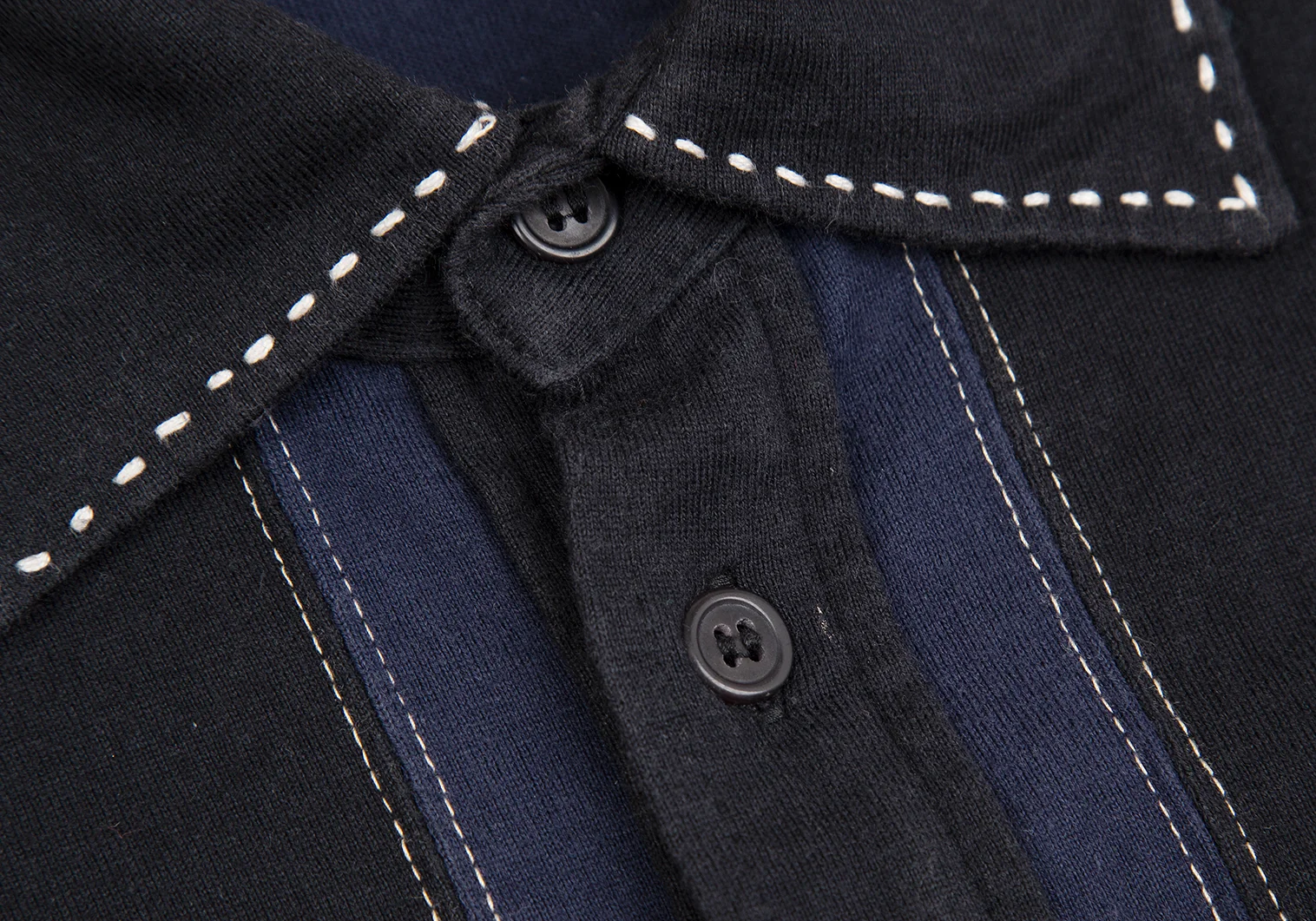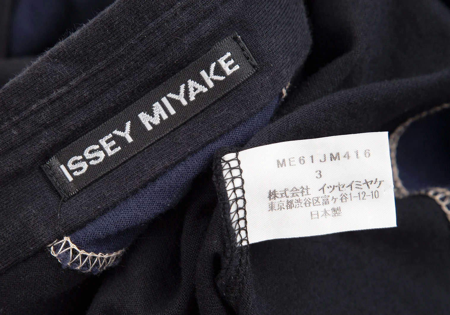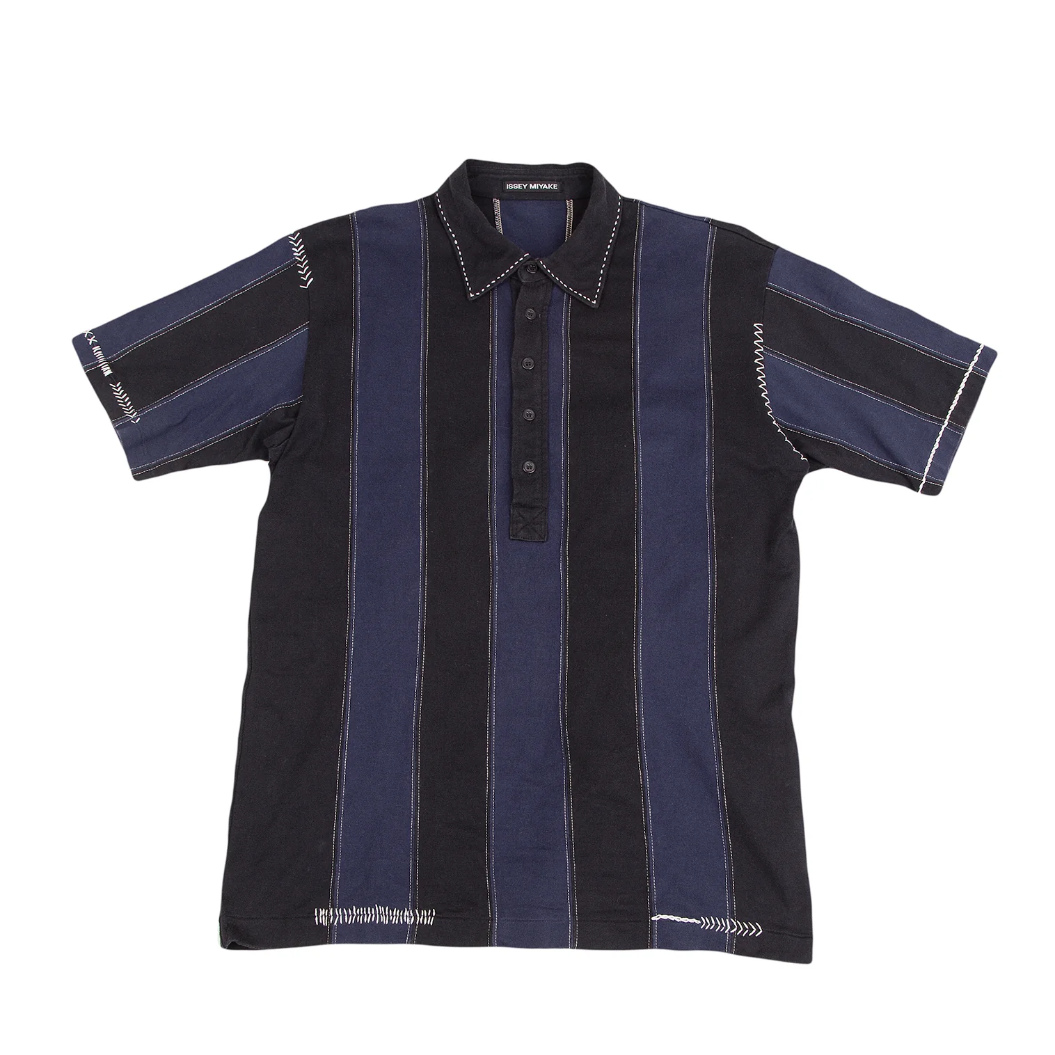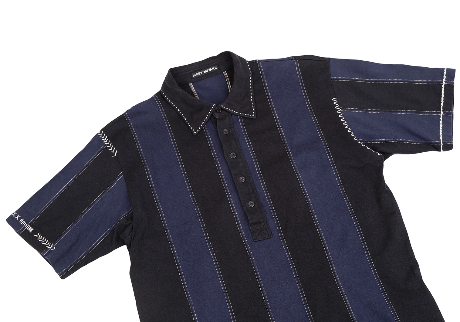 イッセイミヤケ メンISSEY MIYAKE MEN ストライプ切替ステッチデザインポロシャツ 紺黒3