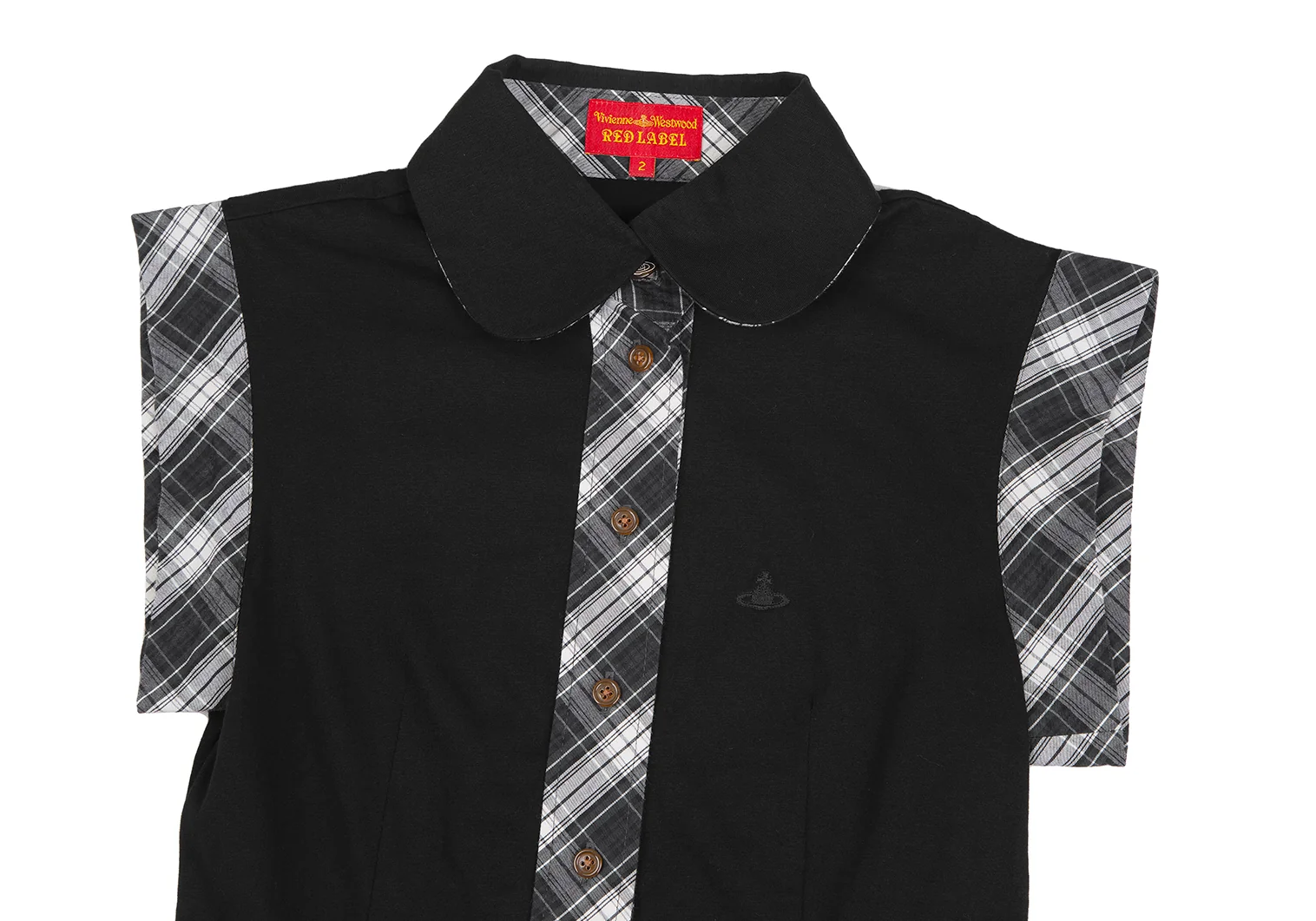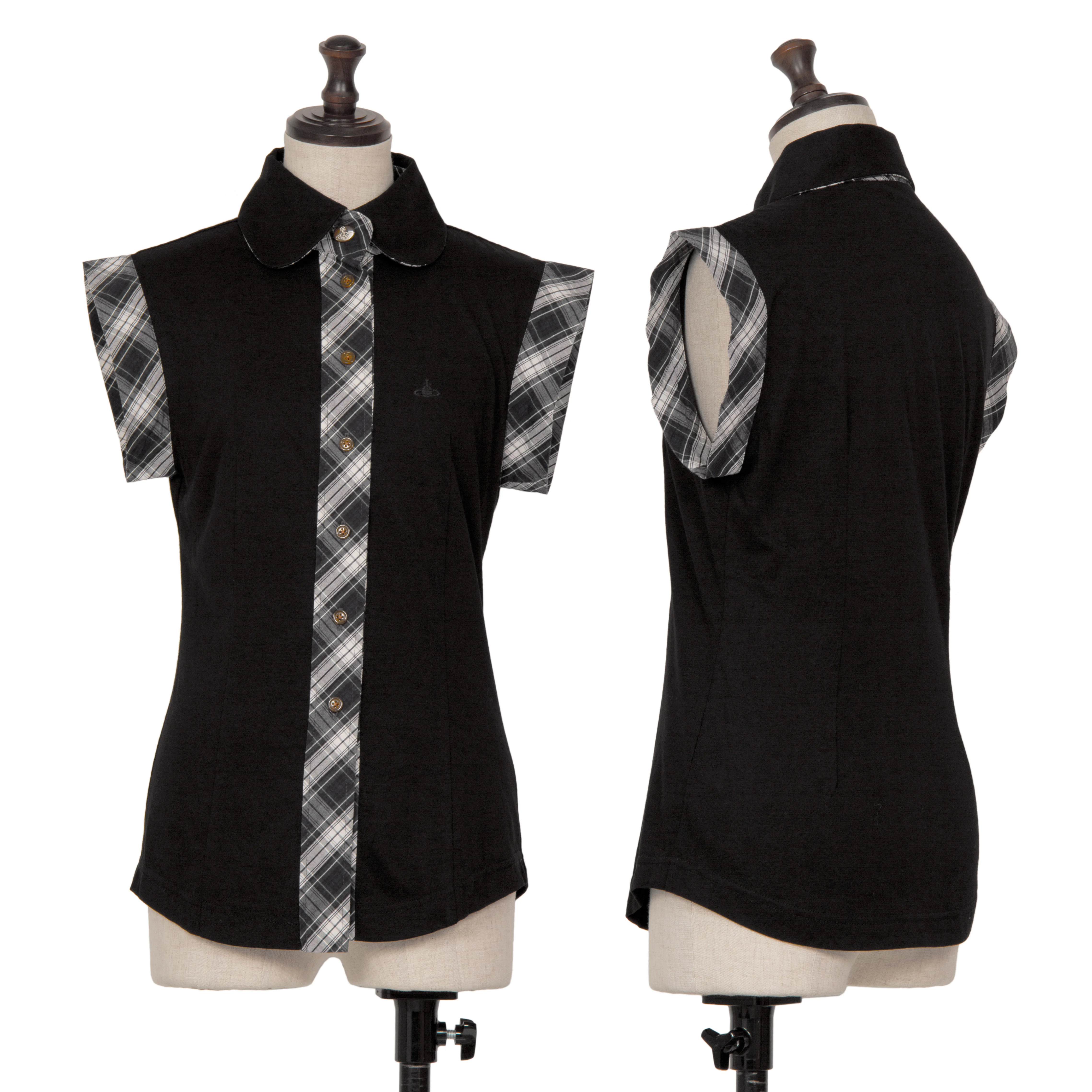 ヴィヴィアンウエストウッド レッドレーベルVivienne Westwood Red Label ラウンドカラーチェック切替ノースリーブシャツ 黒他2