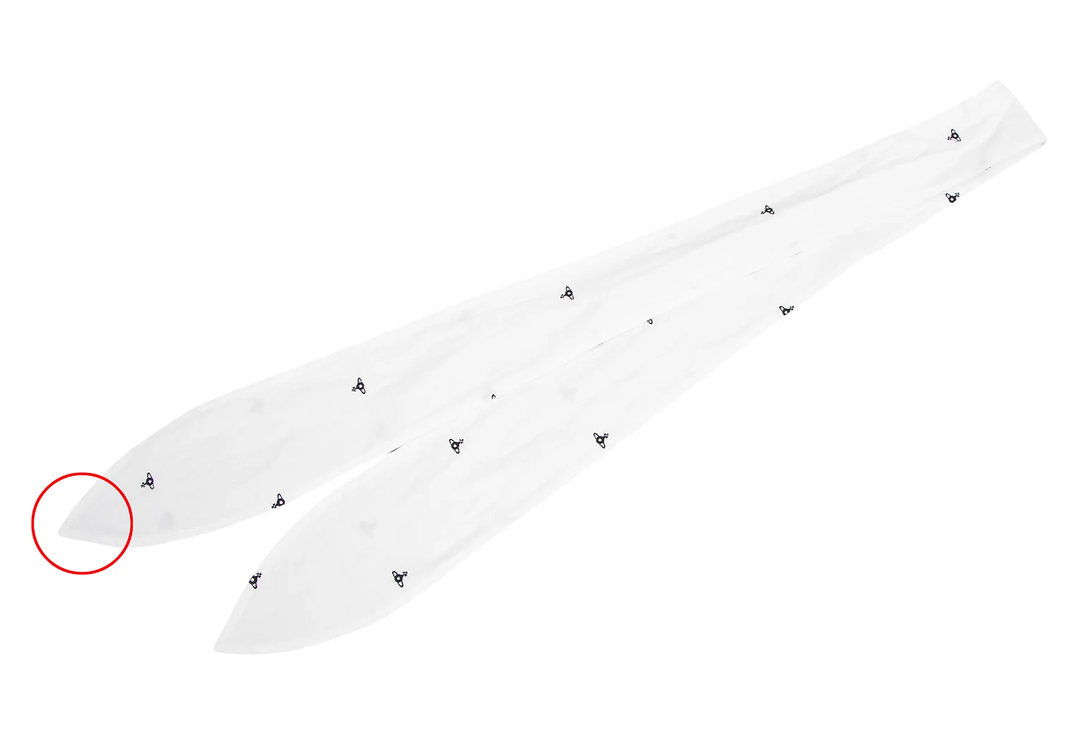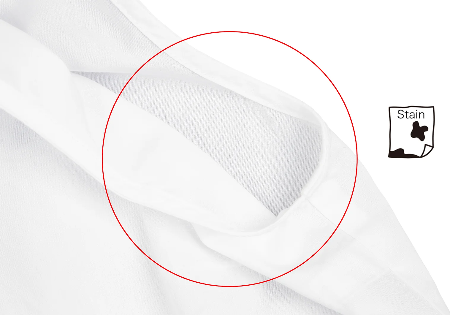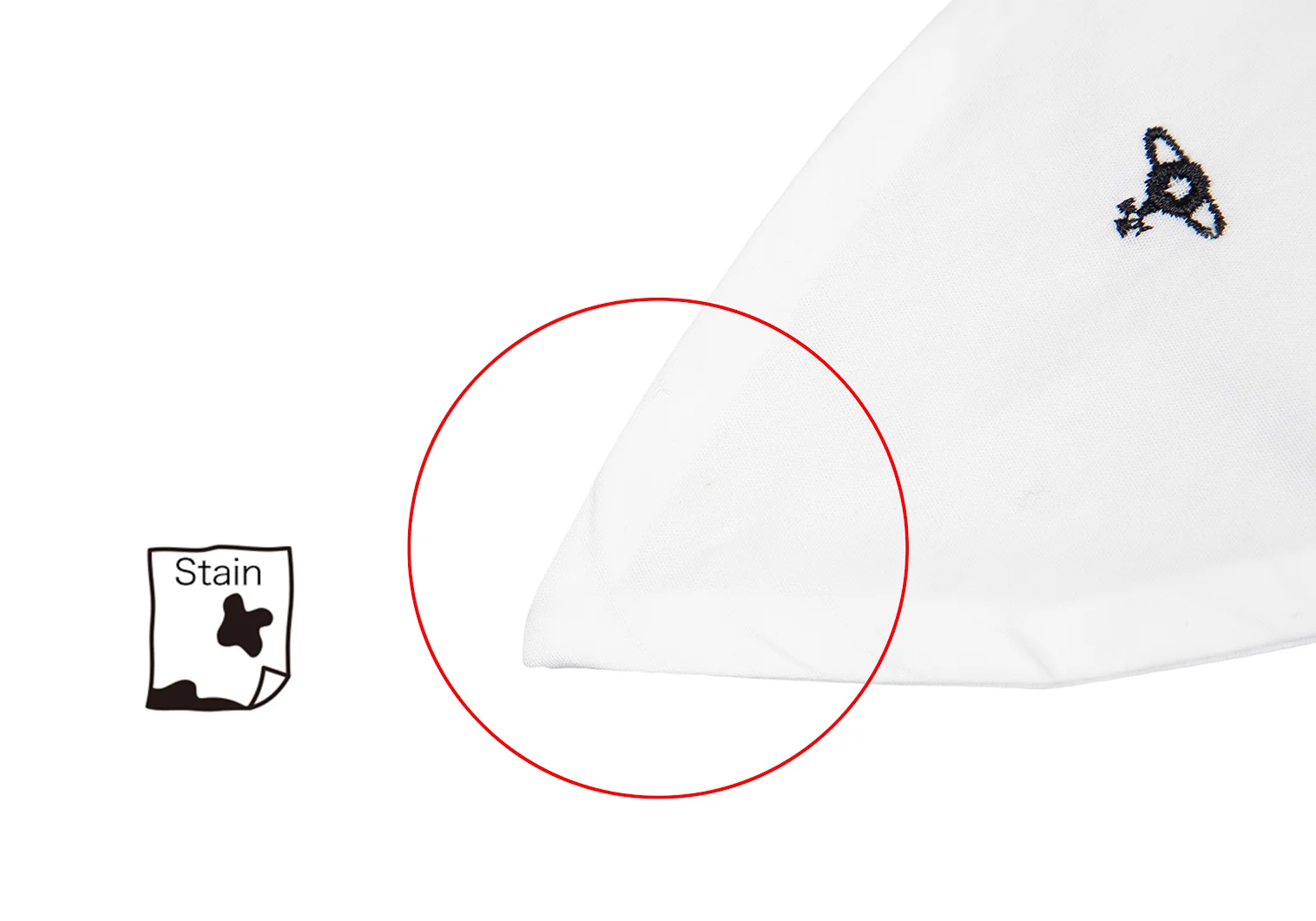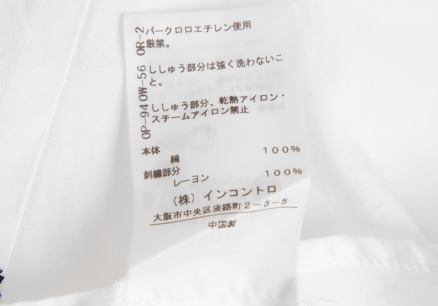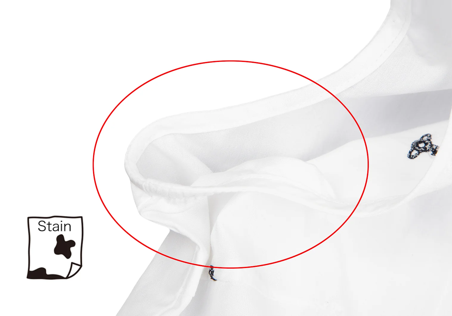 ブランドタグがありません。透け感があります。襟・襟裏・脇・ネクタイに薄シミがあります。(写真参照)その他目立ったシミ、汚れ、ほつれ等ない状態です。クリーニング済み