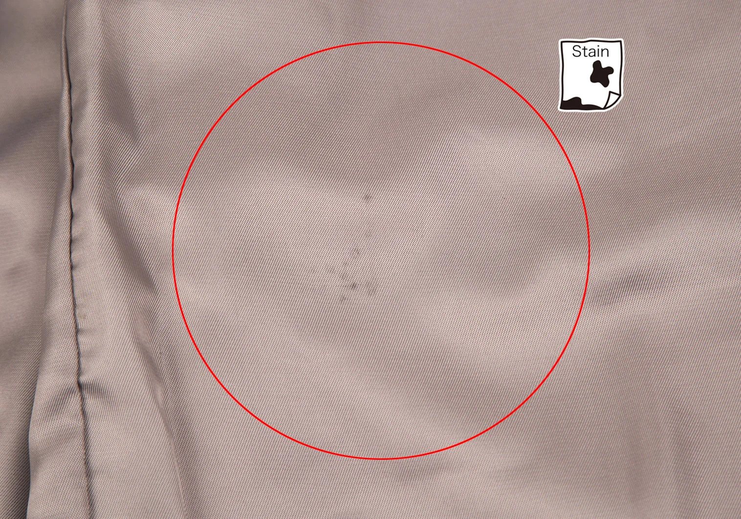 裏地にシミがあります(写真参照)。その他目立ったシミ、汚れ、ほつれ等なくいい状態です。クリーニング済み