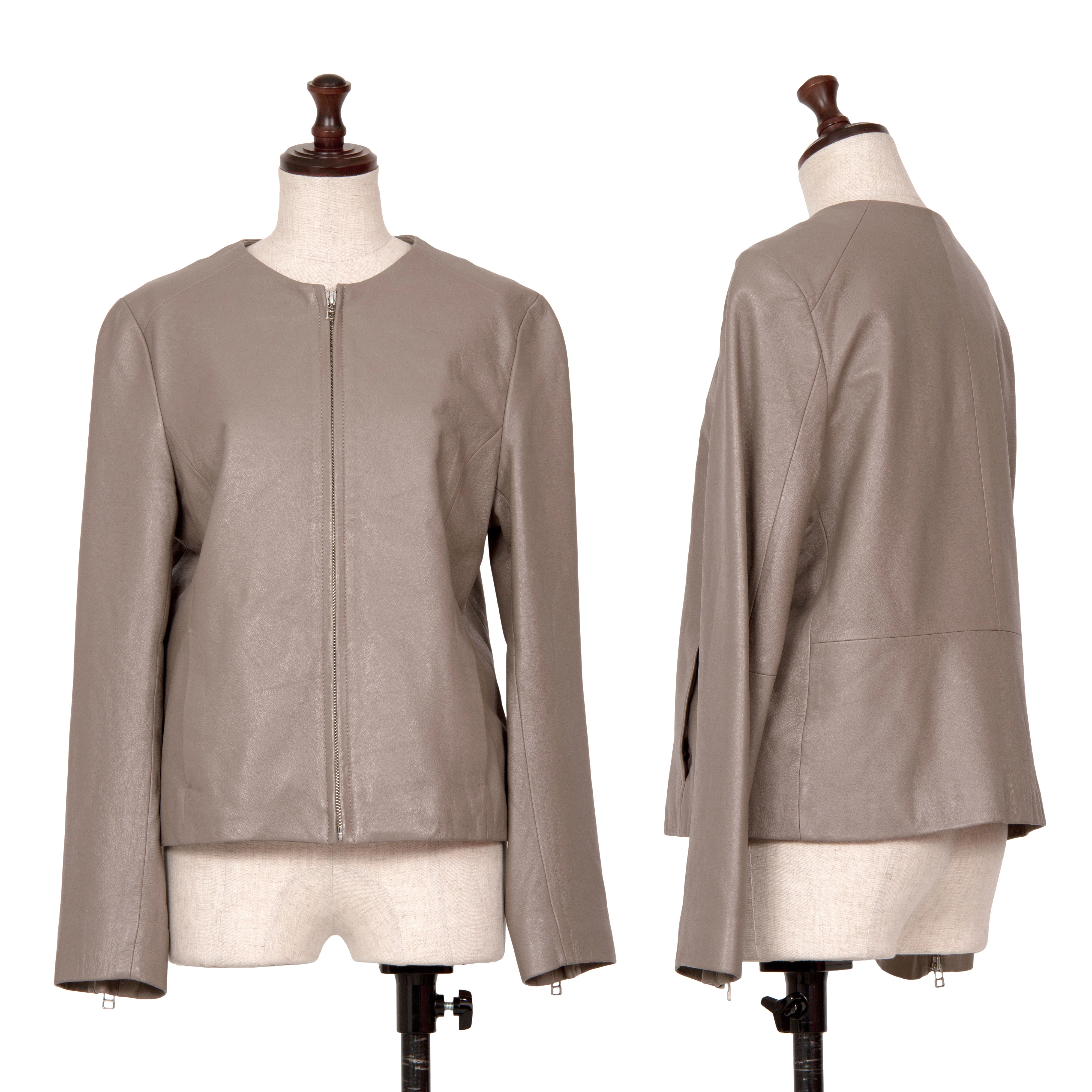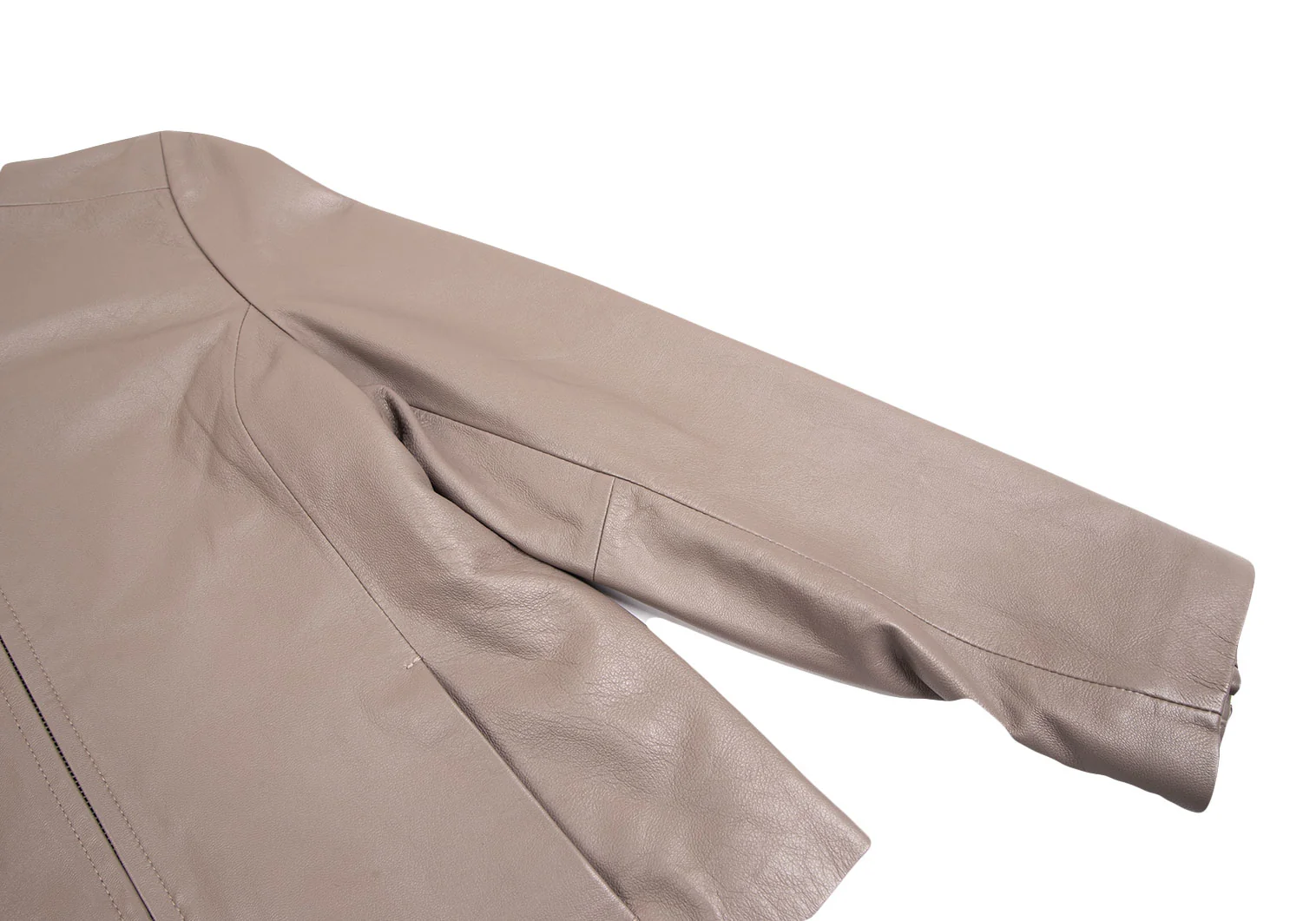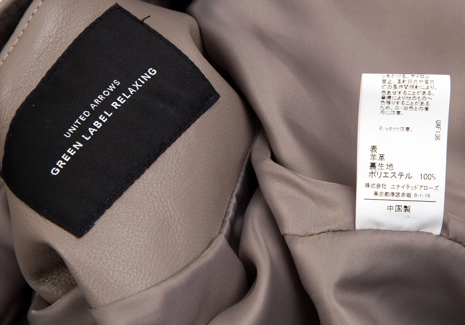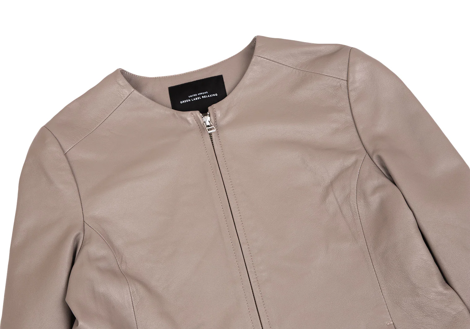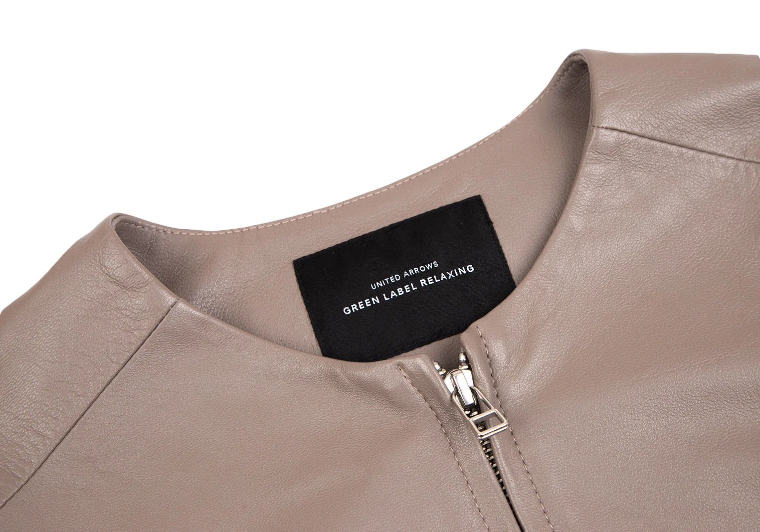 ユナイテッドアローズ グリーンレーベルリラクシングUNITED ARROWS green label relaxing ラムレザーノーカラージップブルゾン ピンクベージュ40