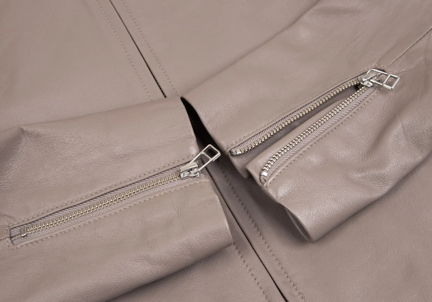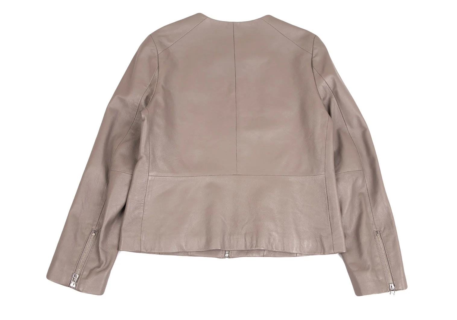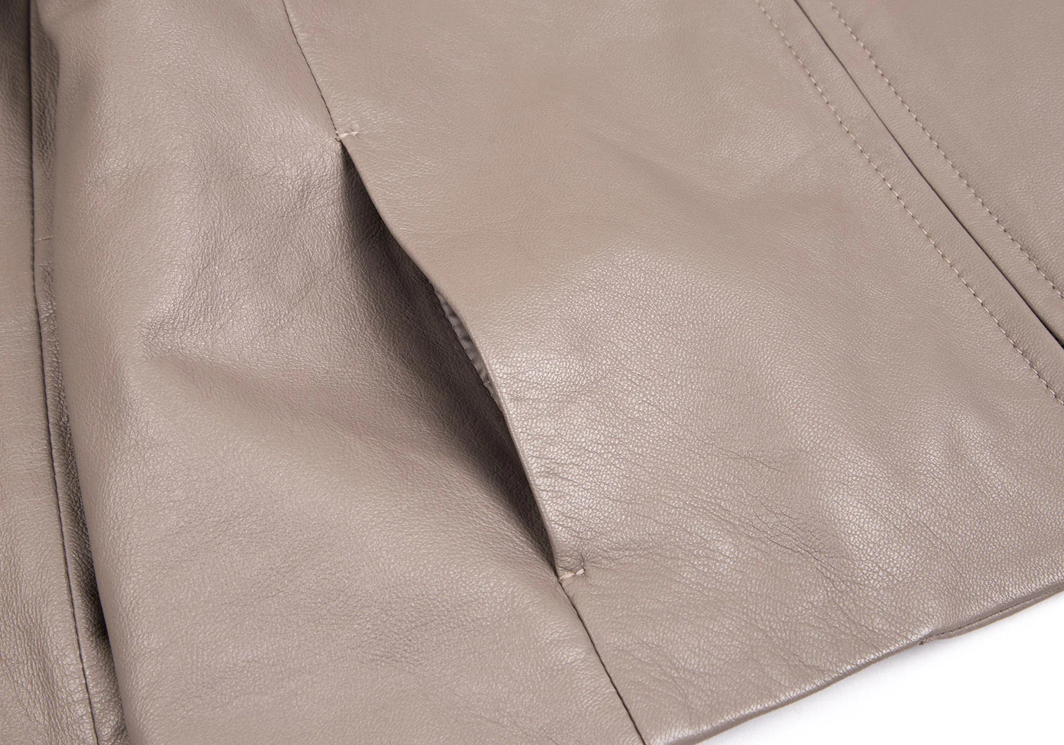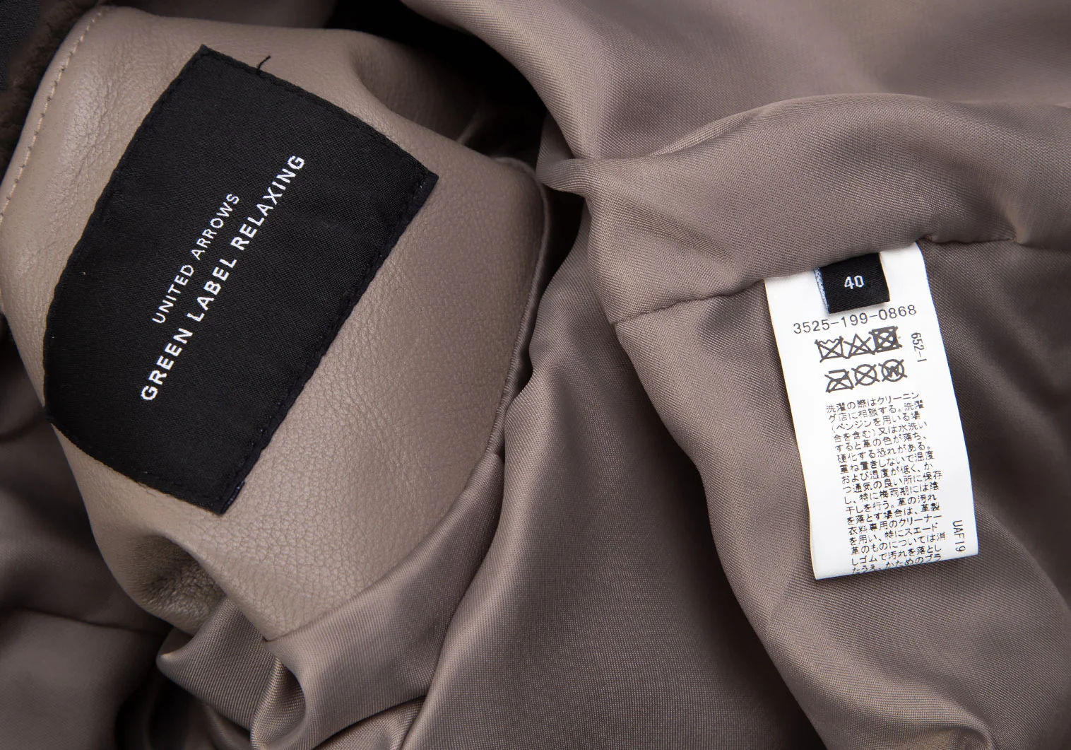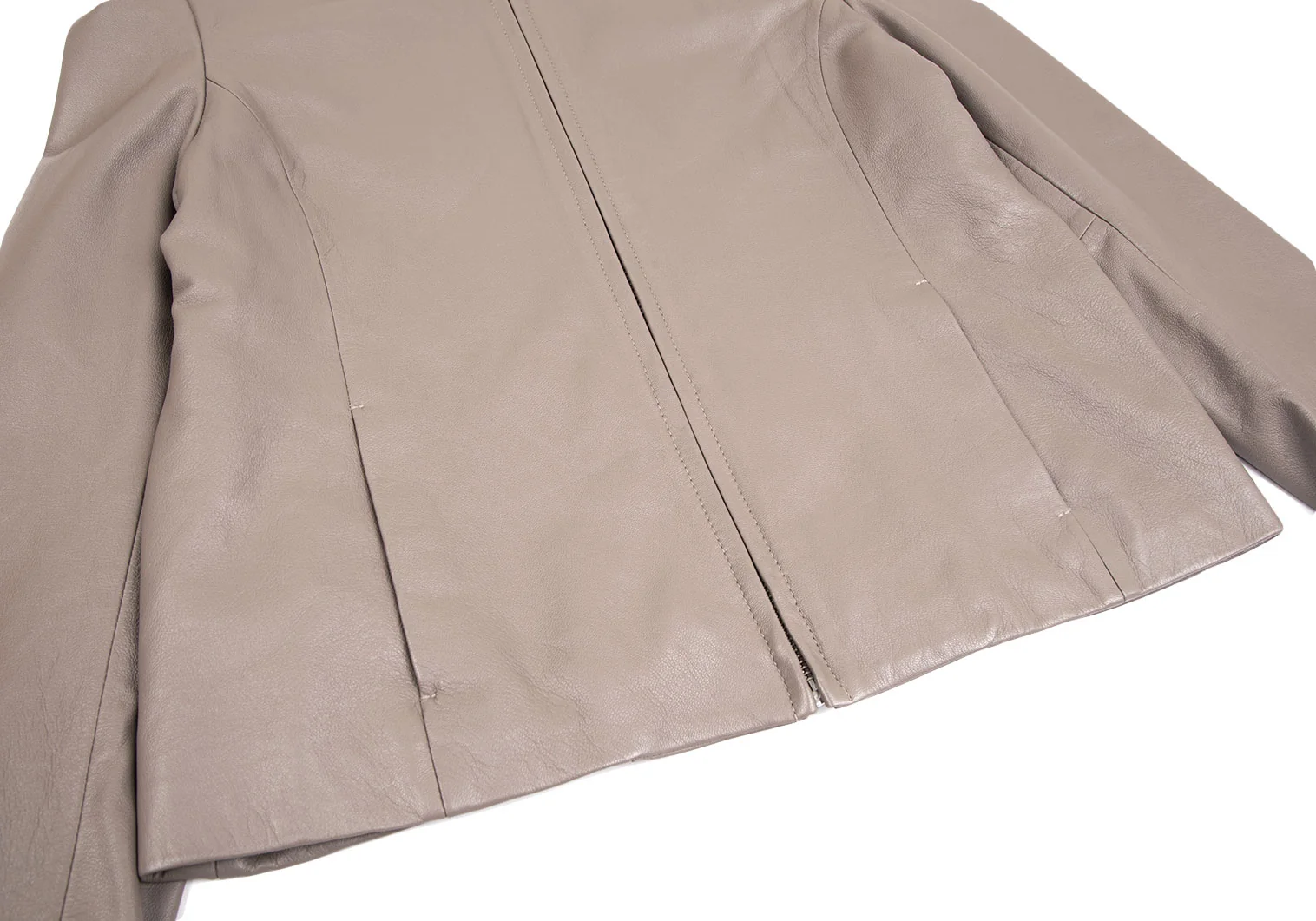 ユナイテッドアローズ グリーンレーベルリラクシングUNITED ARROWS green label relaxing ラムレザーノーカラージップブルゾン ピンクベージュ40
