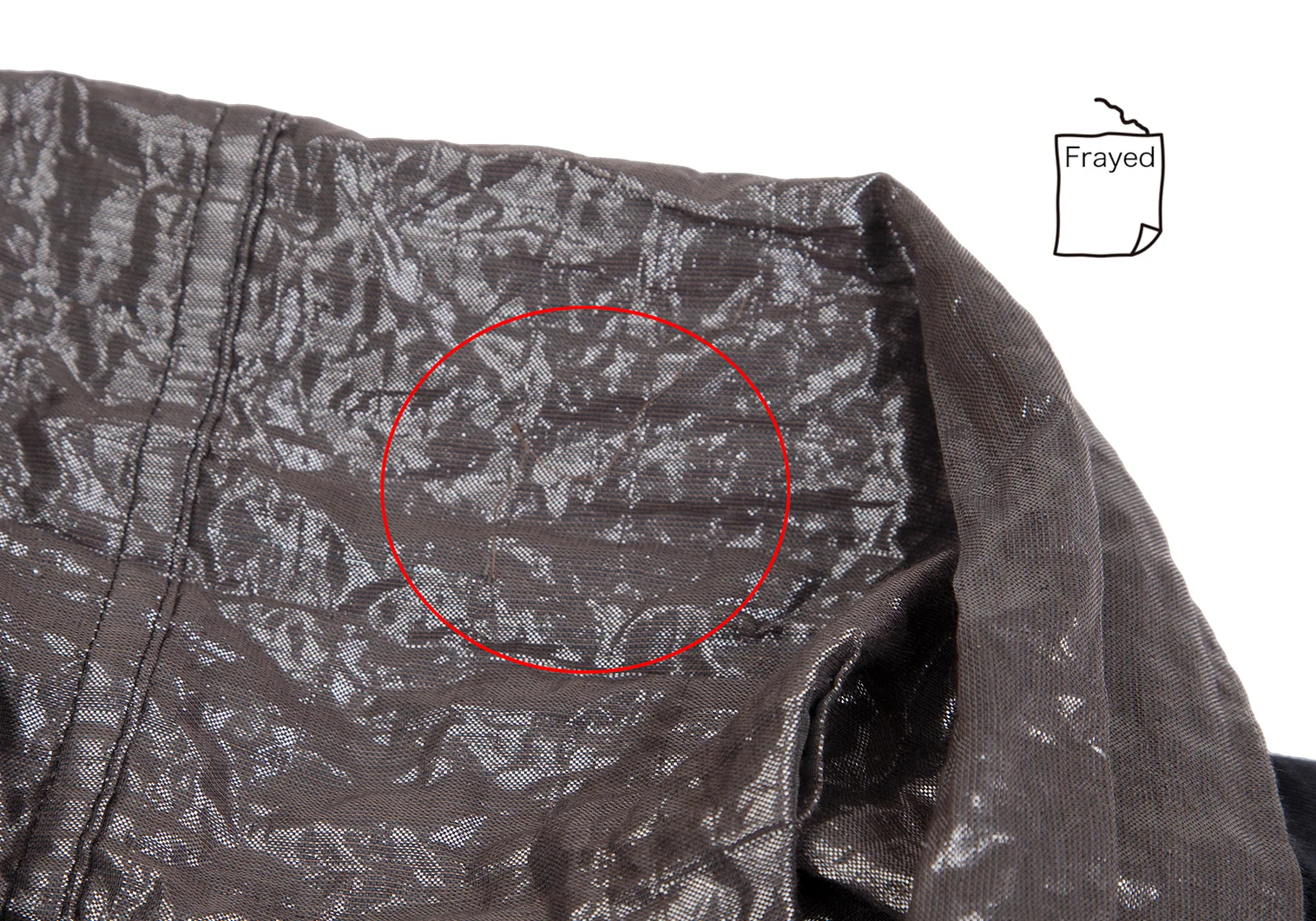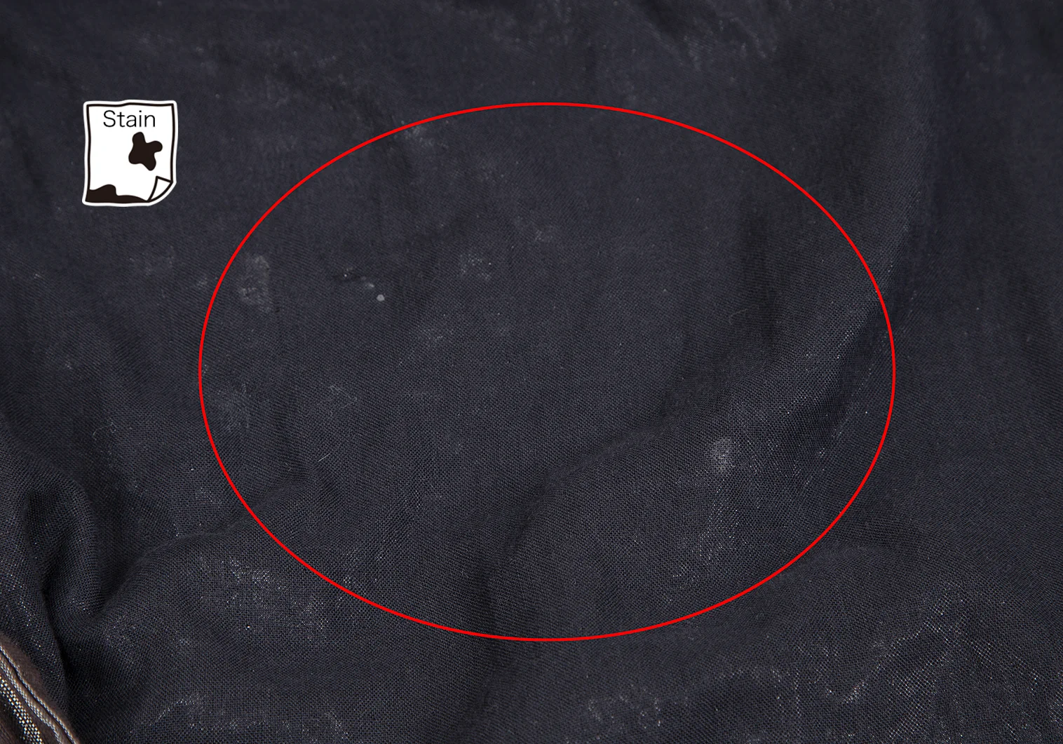 ウエストベルトが欠品しています。透け感があります。襟裏に引っ掛け、前に薄汚れがあります。(写真参照)その他目立ったシミ、汚れ、ほつれ等なくいい状態です。クリーニング済み