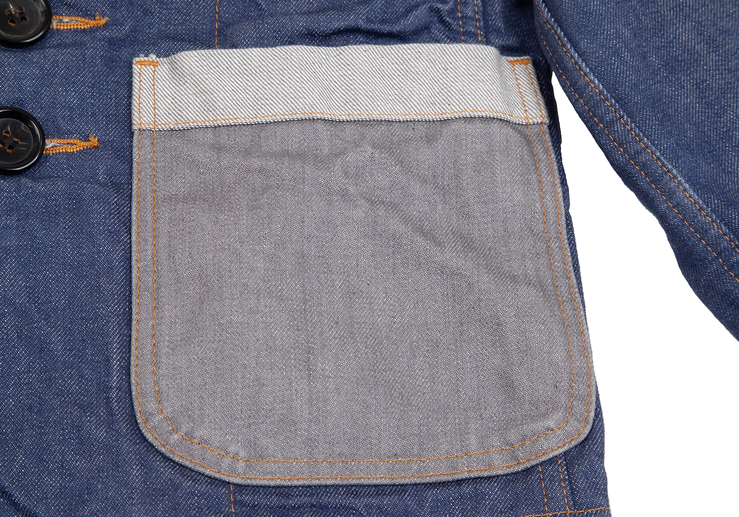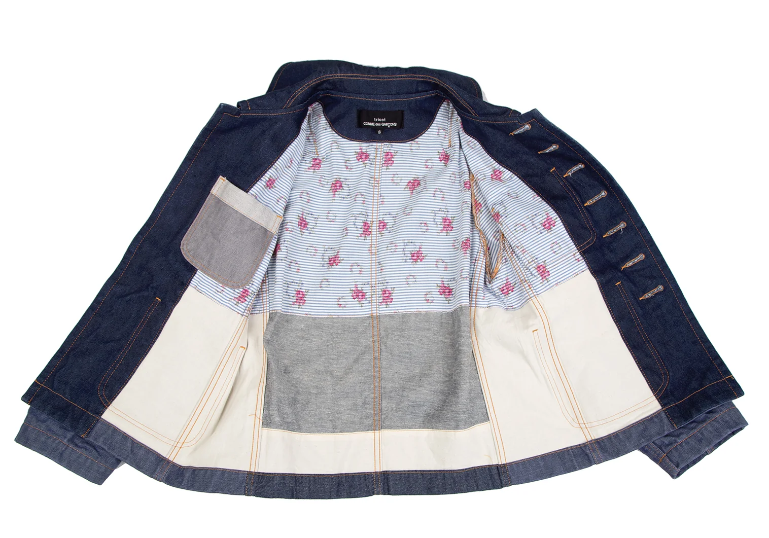 トリココムデギャルソンtricot COMME des GARCONS デニム切替メニーボタンラウンドカラージャケット インディゴS