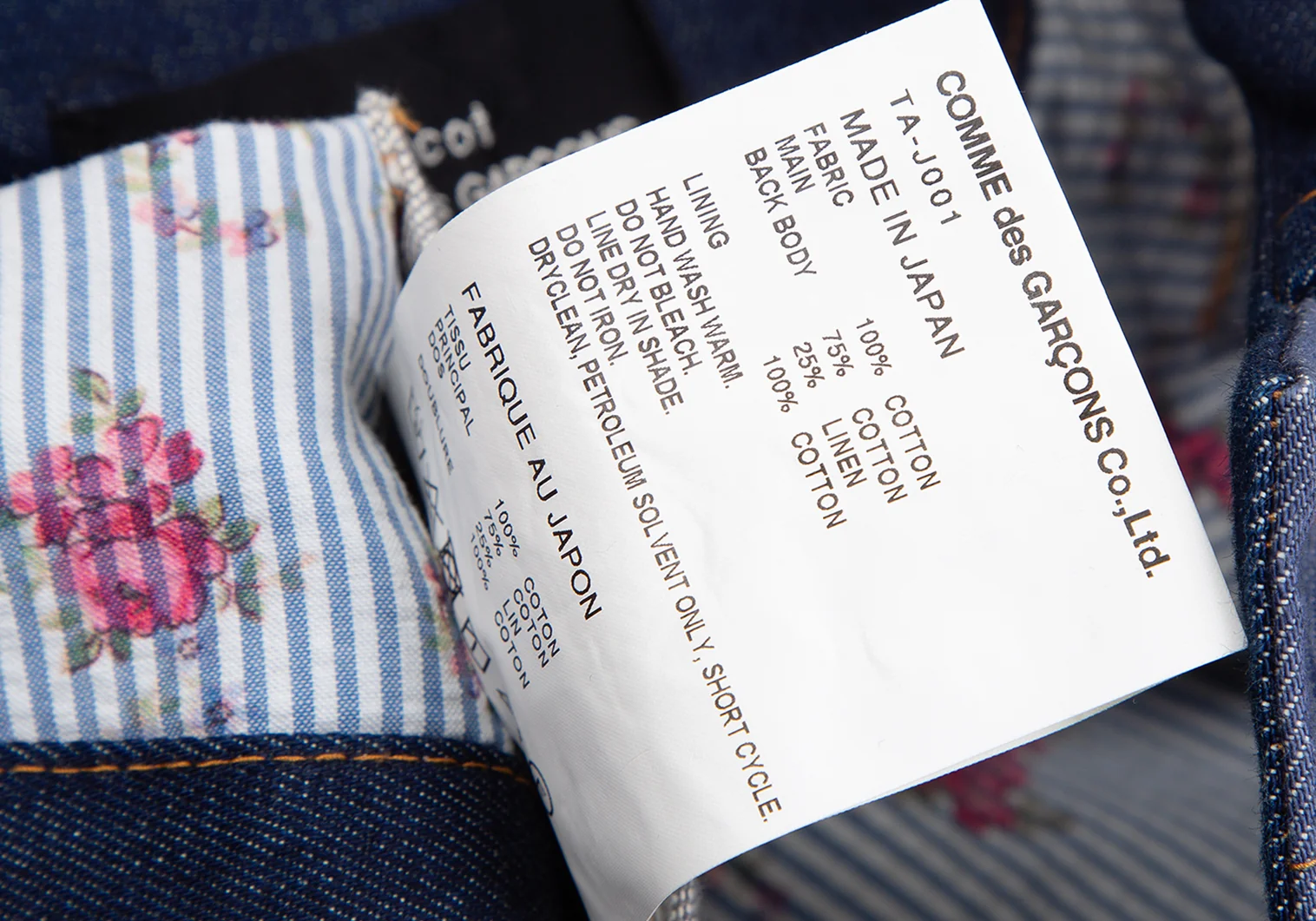 綿100% 後身頃 綿75% 麻25% 裏地 綿100%