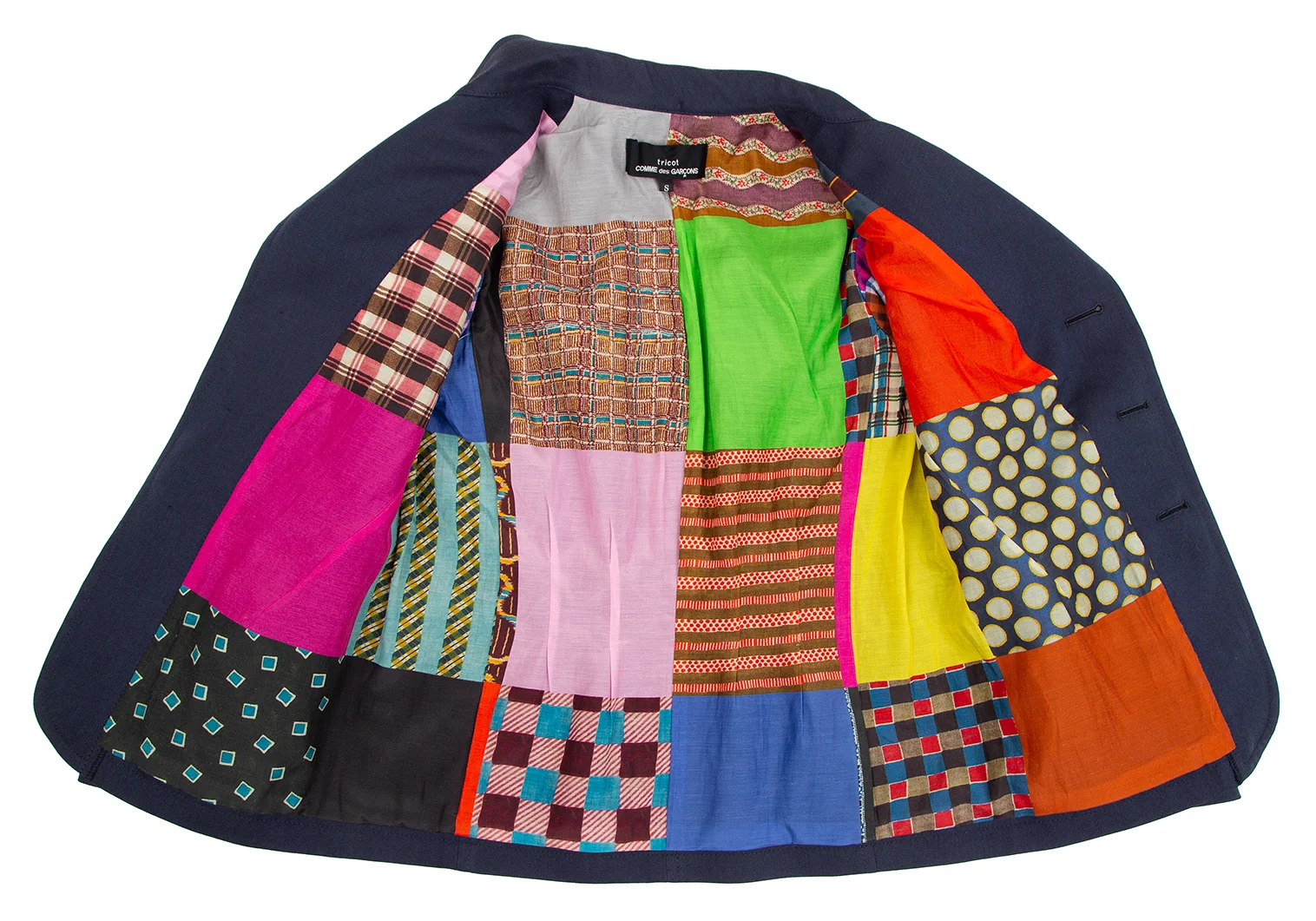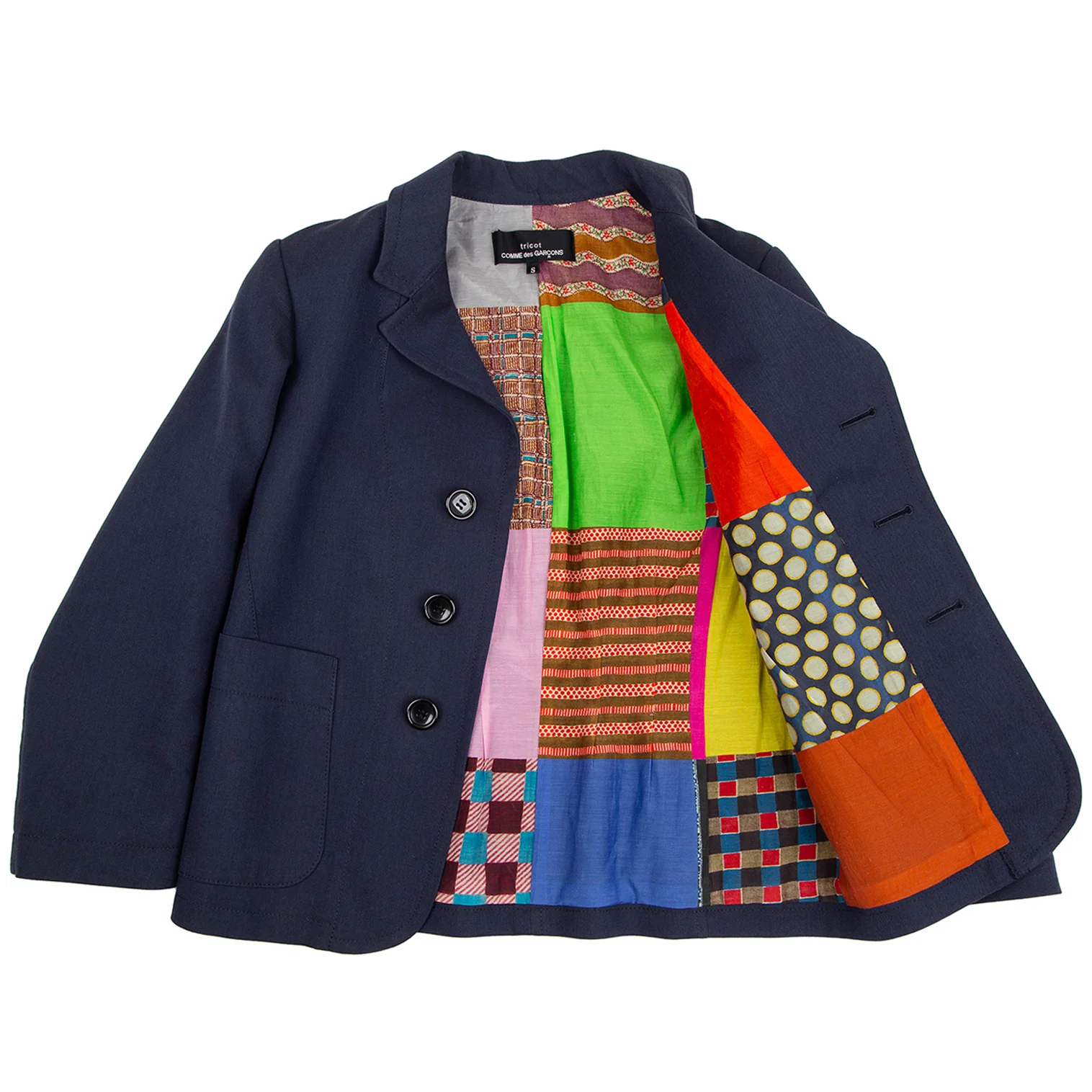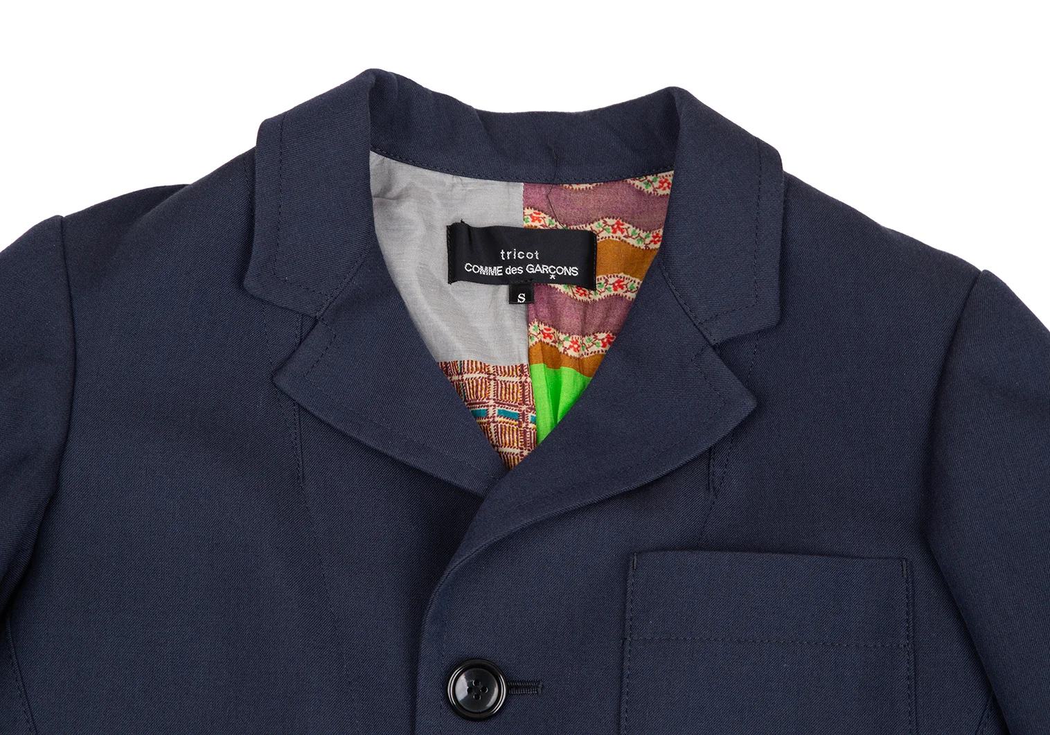 トリココムデギャルソンtricot COMME des GARCONS パッチワークプリントライニング3Bジャケット 紺S